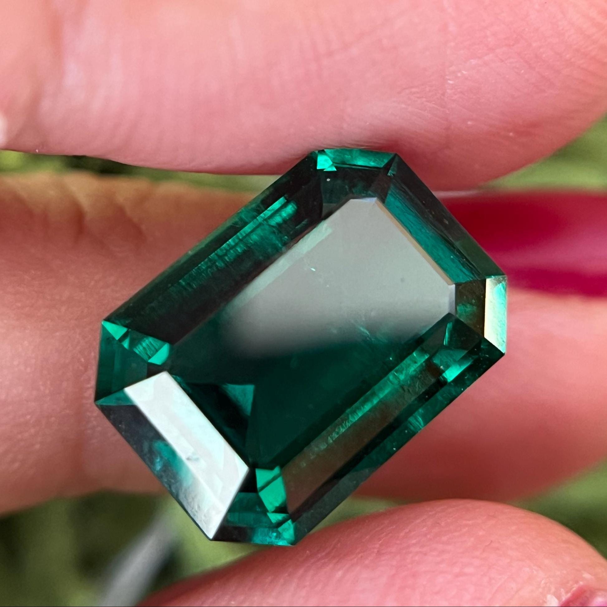 This is premium quality lab grown hydrothermal emerald gemstone in its classic dark green (Zambian) color.