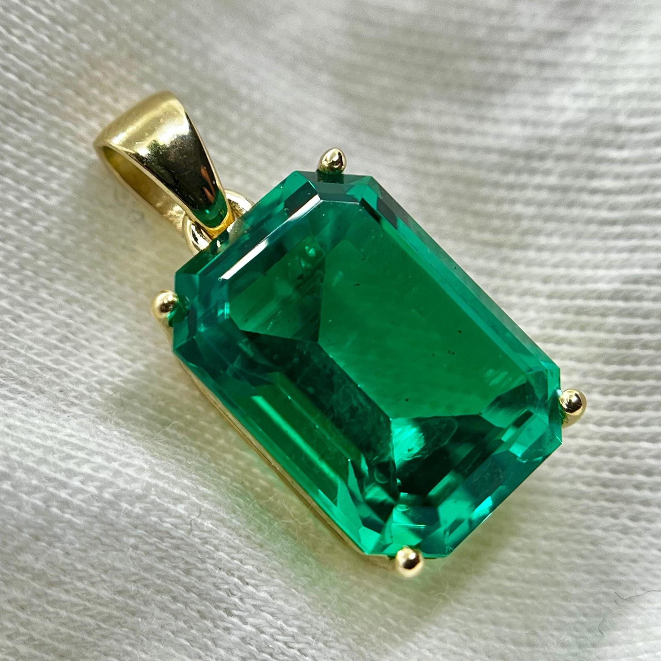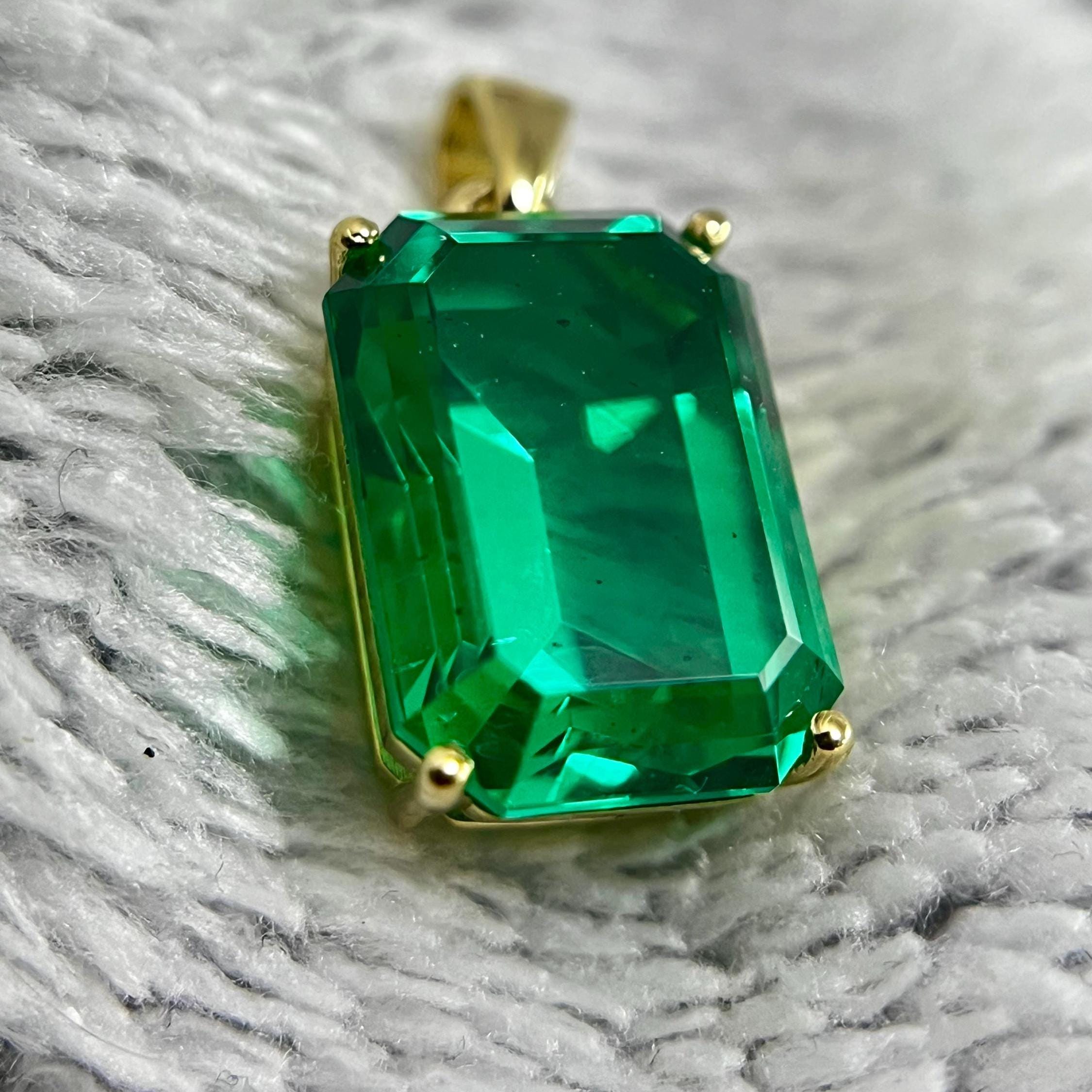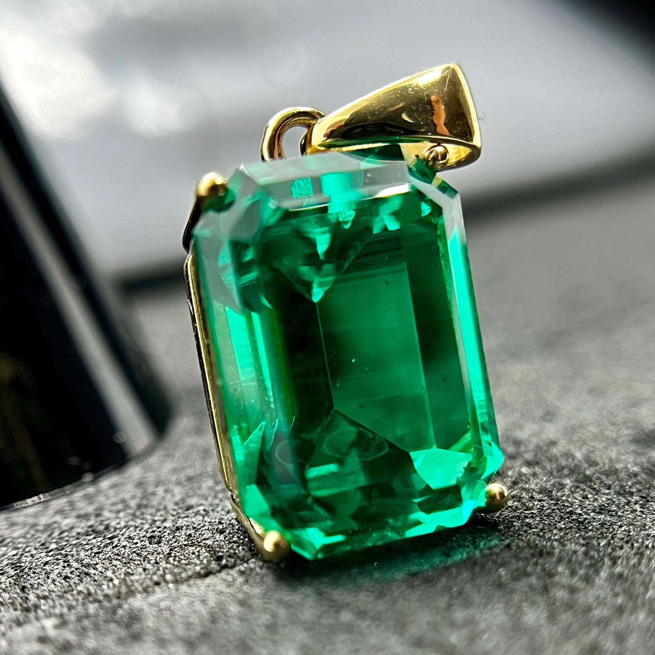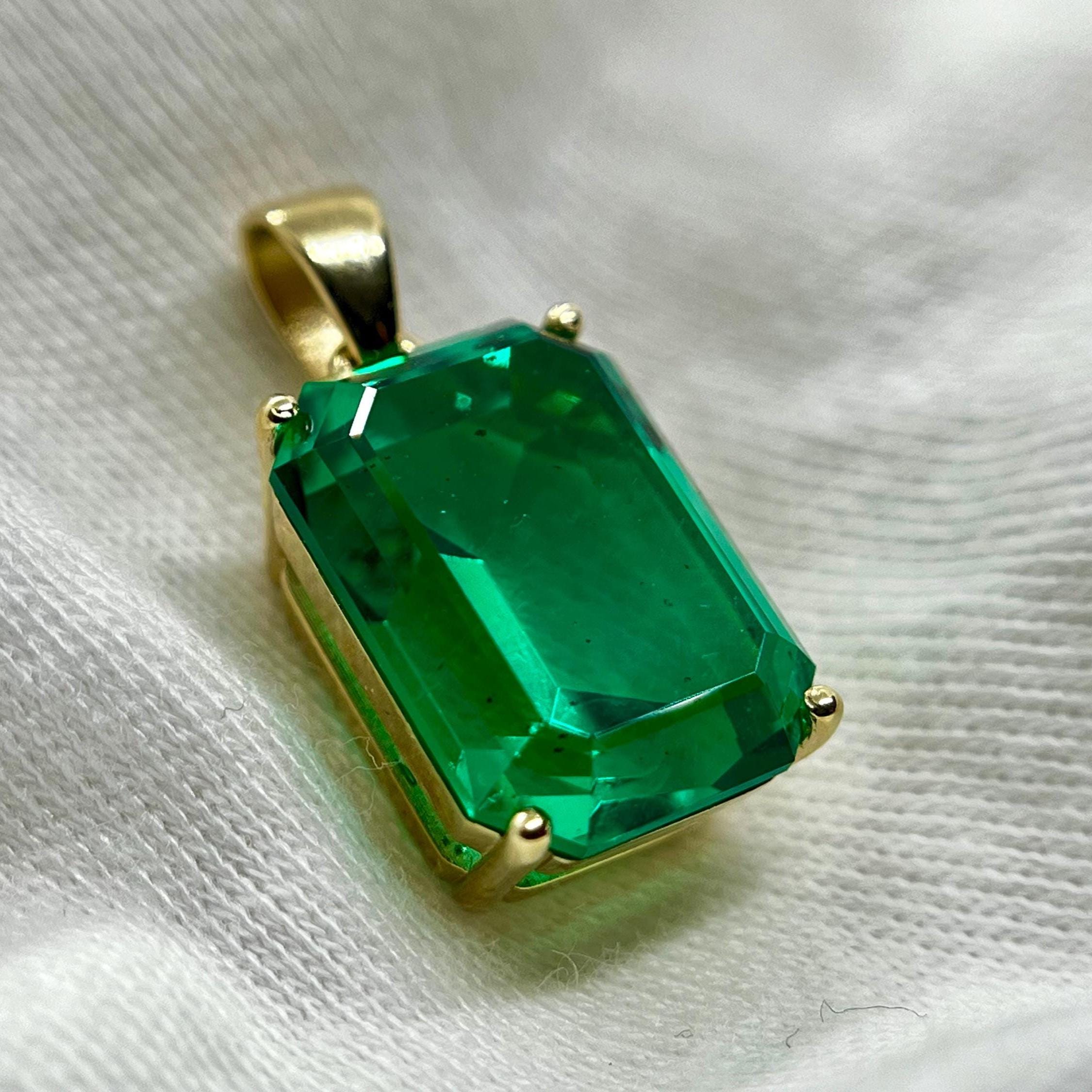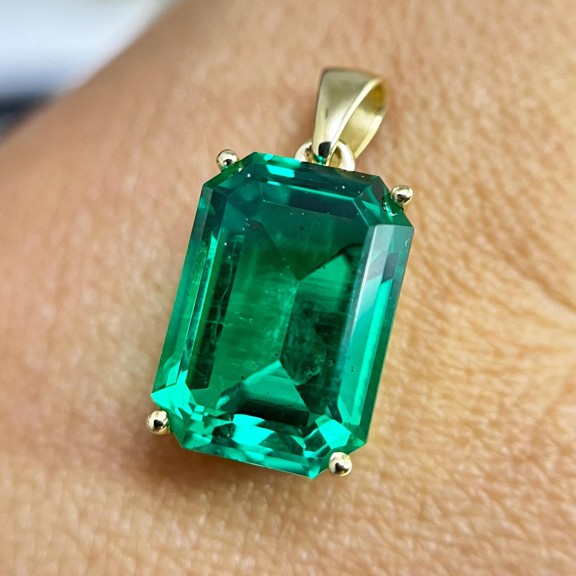 Fantastic quality minimalist pendant with lab grown hydrothermal colombian emerald gemstone. By your choice made of solid 14K yellow gold or sterling silver - It doesn’t matter whether you buy this pendant for yourself or for a gift, you will be proud of it every time you see it on a loved one or reflected in the mirror.