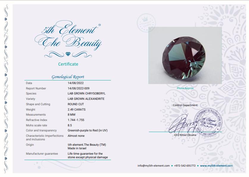 • Gemstone: Lab-Created Alexandrite (variety of Chrysoberyl )