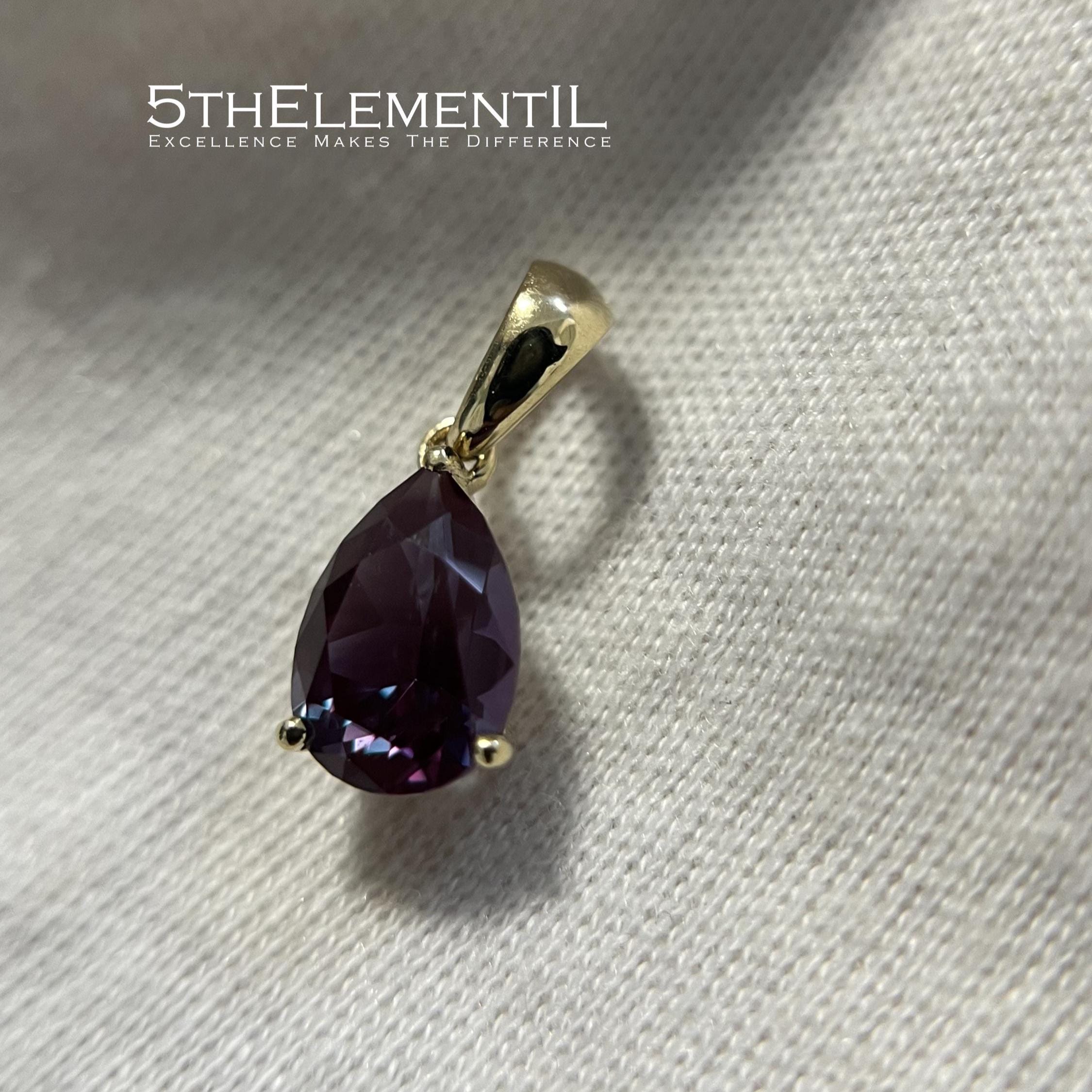 Discover the magic of real hydrothermal lab grown Alexandrite—a rare, color-changing gemstone that shifts from vibrant teal-green in daylight to deep purple-red under warm light. This elegant teardrop-shaped pendant is crafted in solid 14K gold and makes a stunning, meaningful gift for a loved one—or yourself.