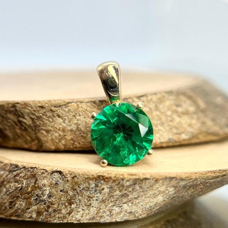 14k Gold Emerald Minimalist Pendant For Necklace. Lab Grown Gemstone With Certificate.