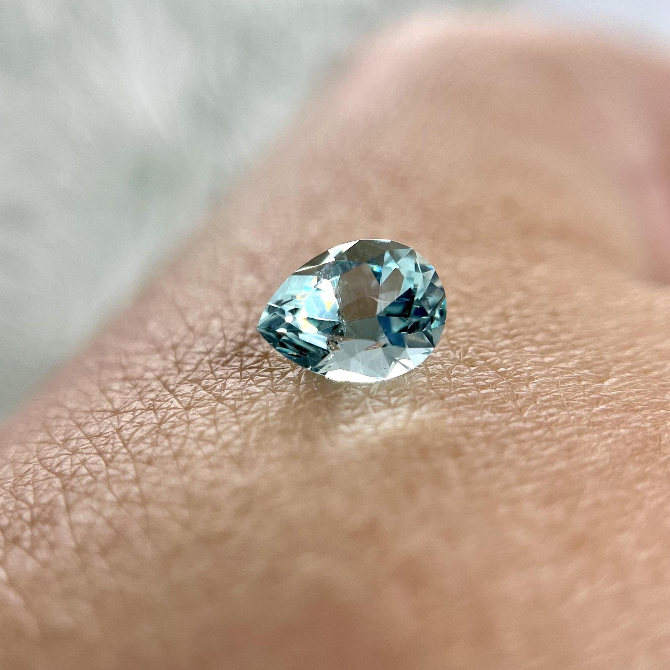 Lab Grown Aquamarine Gemstone: 9x6mm Pear Cut, Hydrothermal March Birthstone