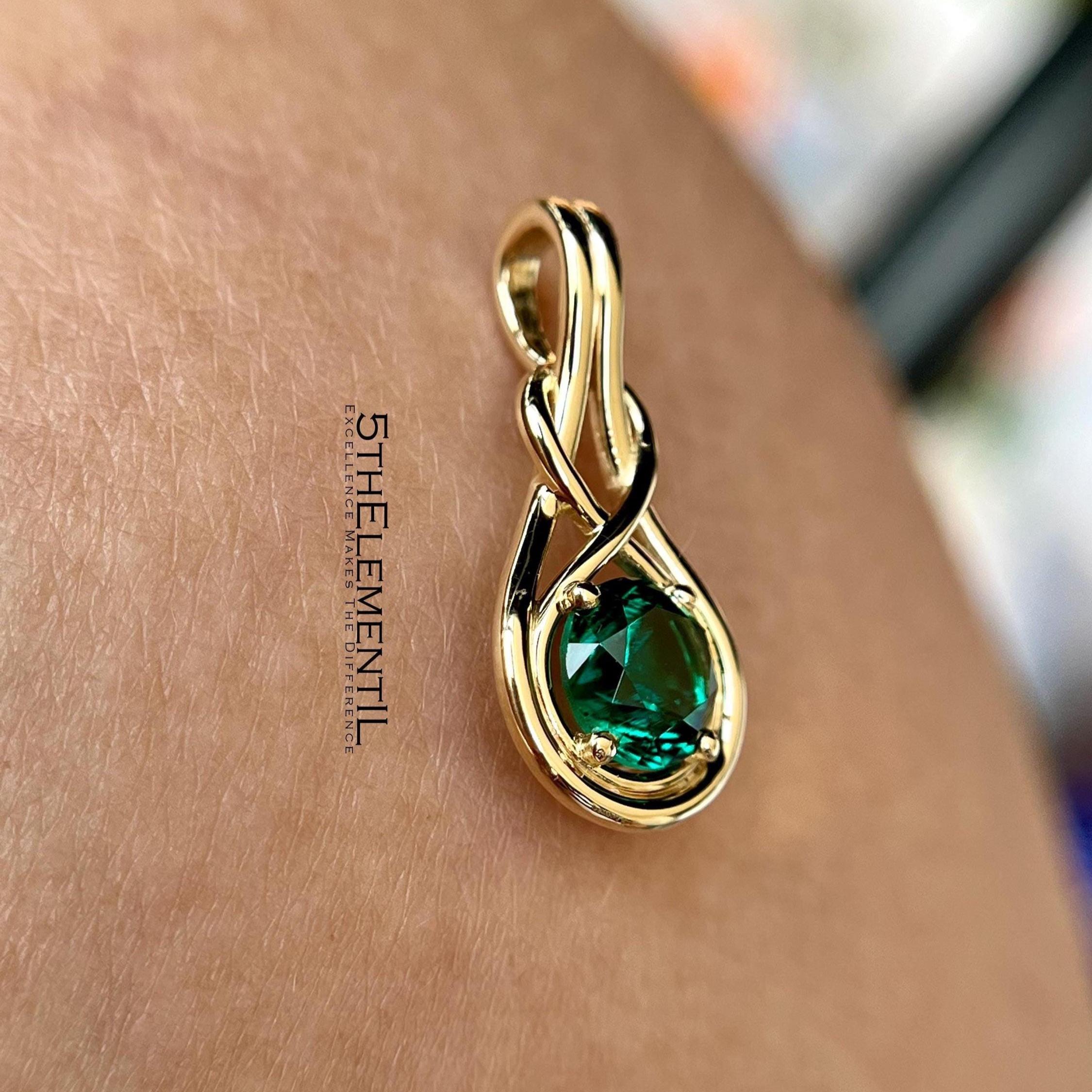 Unique jewelry pendant of weaving design with professionally faceted lab grown emerald gemstone. By your request can be done of sterling silvder or solid gold. Kind of jewelry items to be proud of either if you wear or presenting it to loved ones. Ideal gift for those who love emeralds or has a birthday in May, since emerald is counted as May Birthstone.