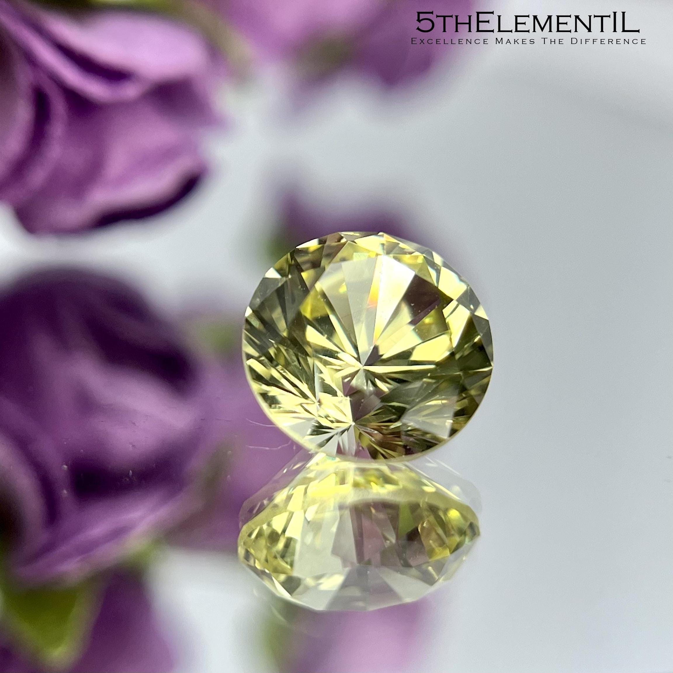 Yellow Sapphire Round Brilliant Cut. Lab Grown Hydrothermal Gemstone With Certificate!