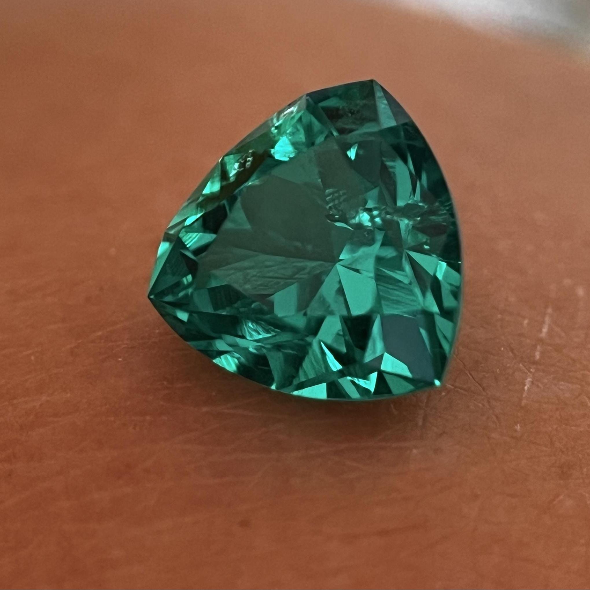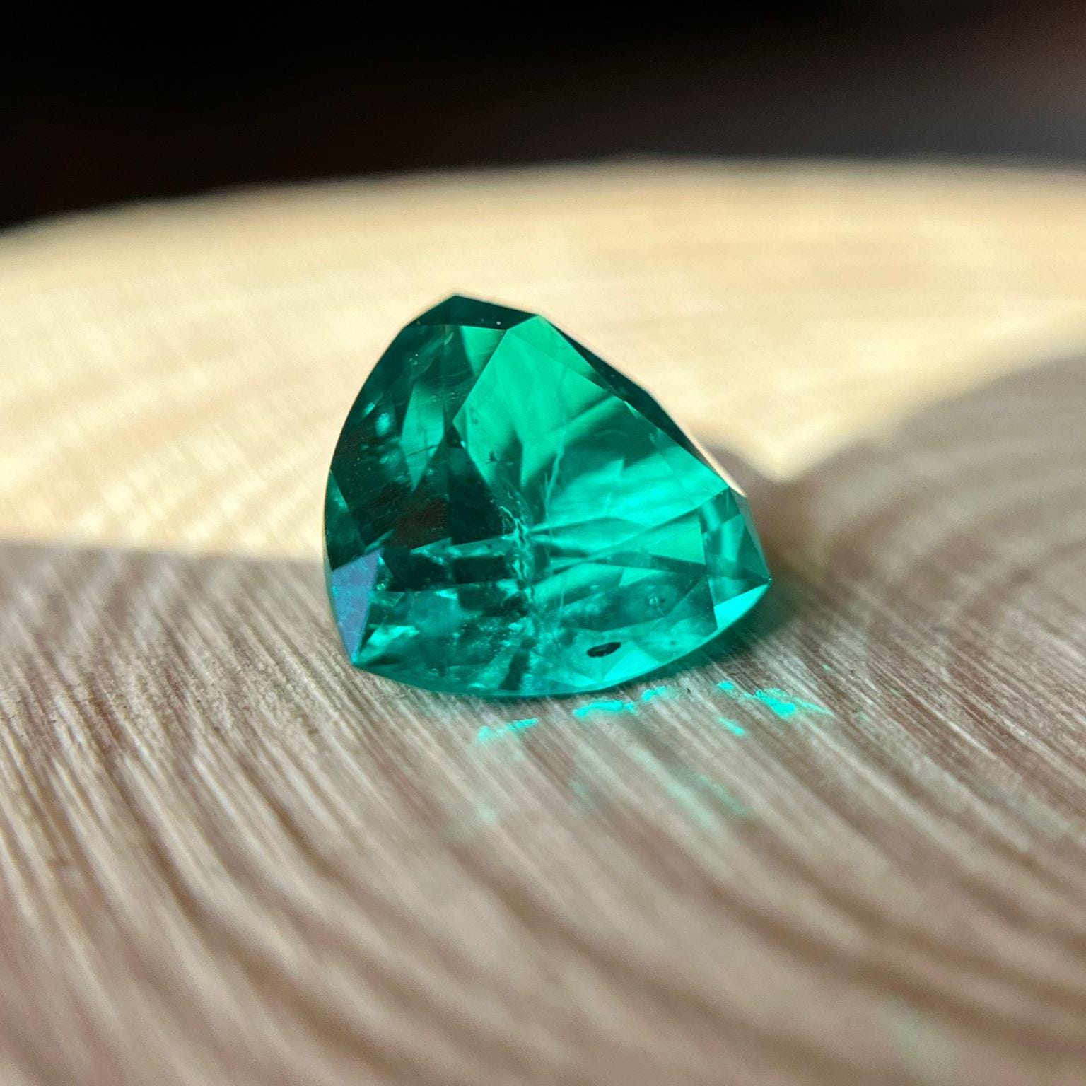 Colombian Emerald Trillion Cut. Hydrothermal Lab Grown Gemstone.