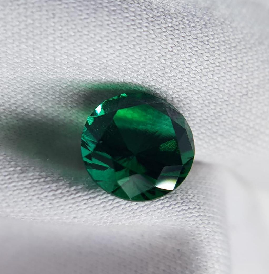 Best quality lab grown hydrothermal emeralds. Round professional cut.