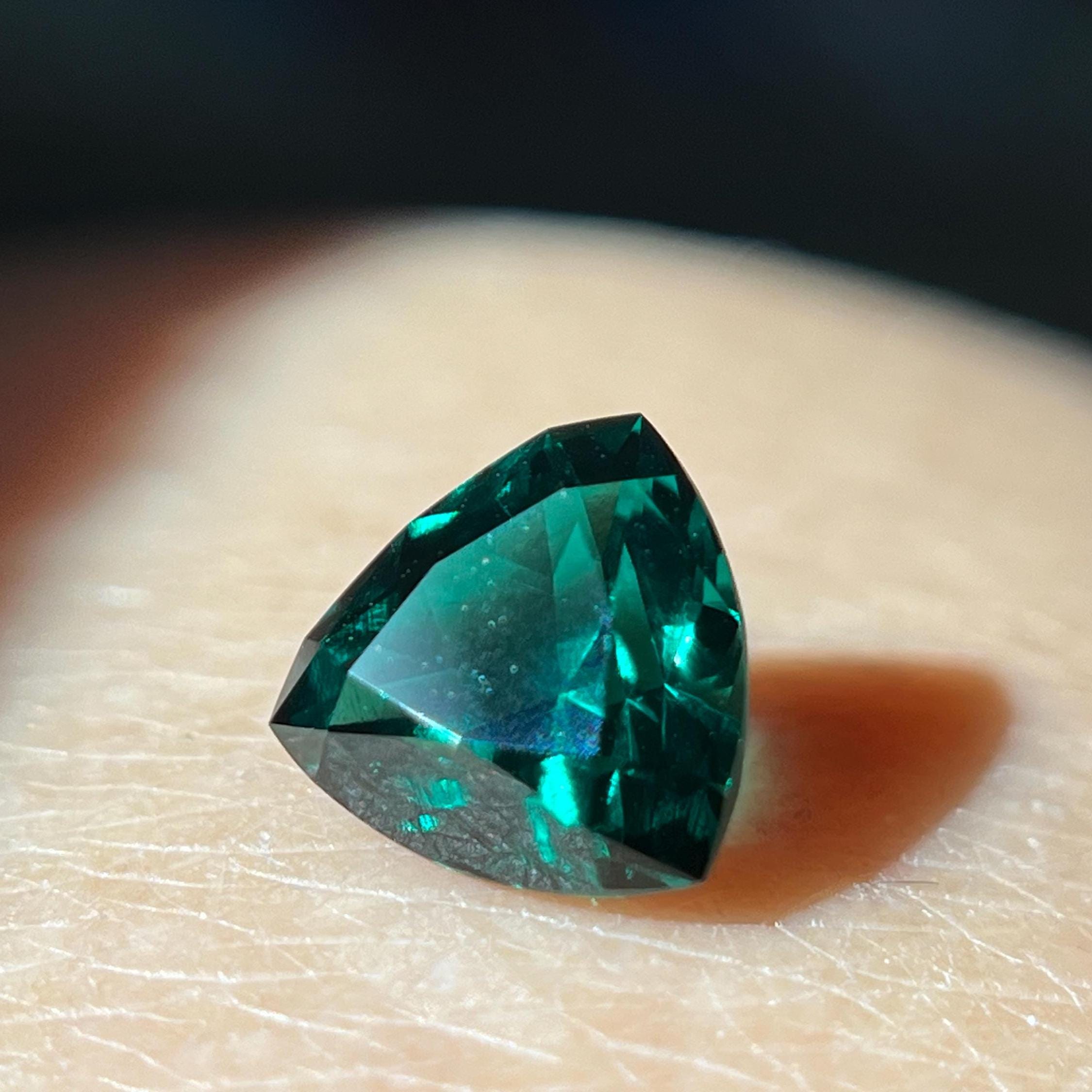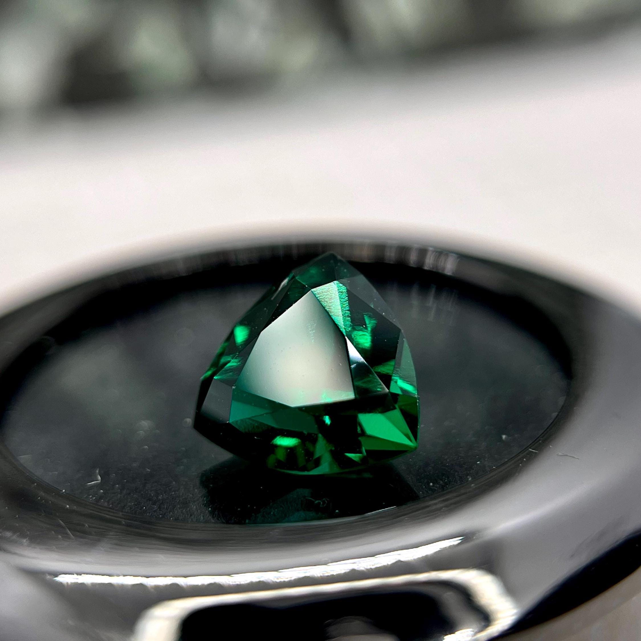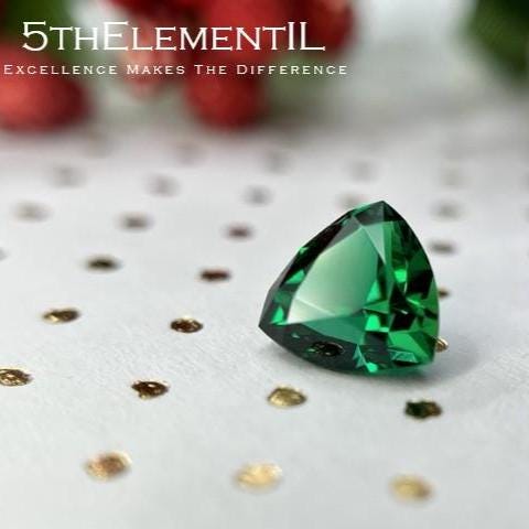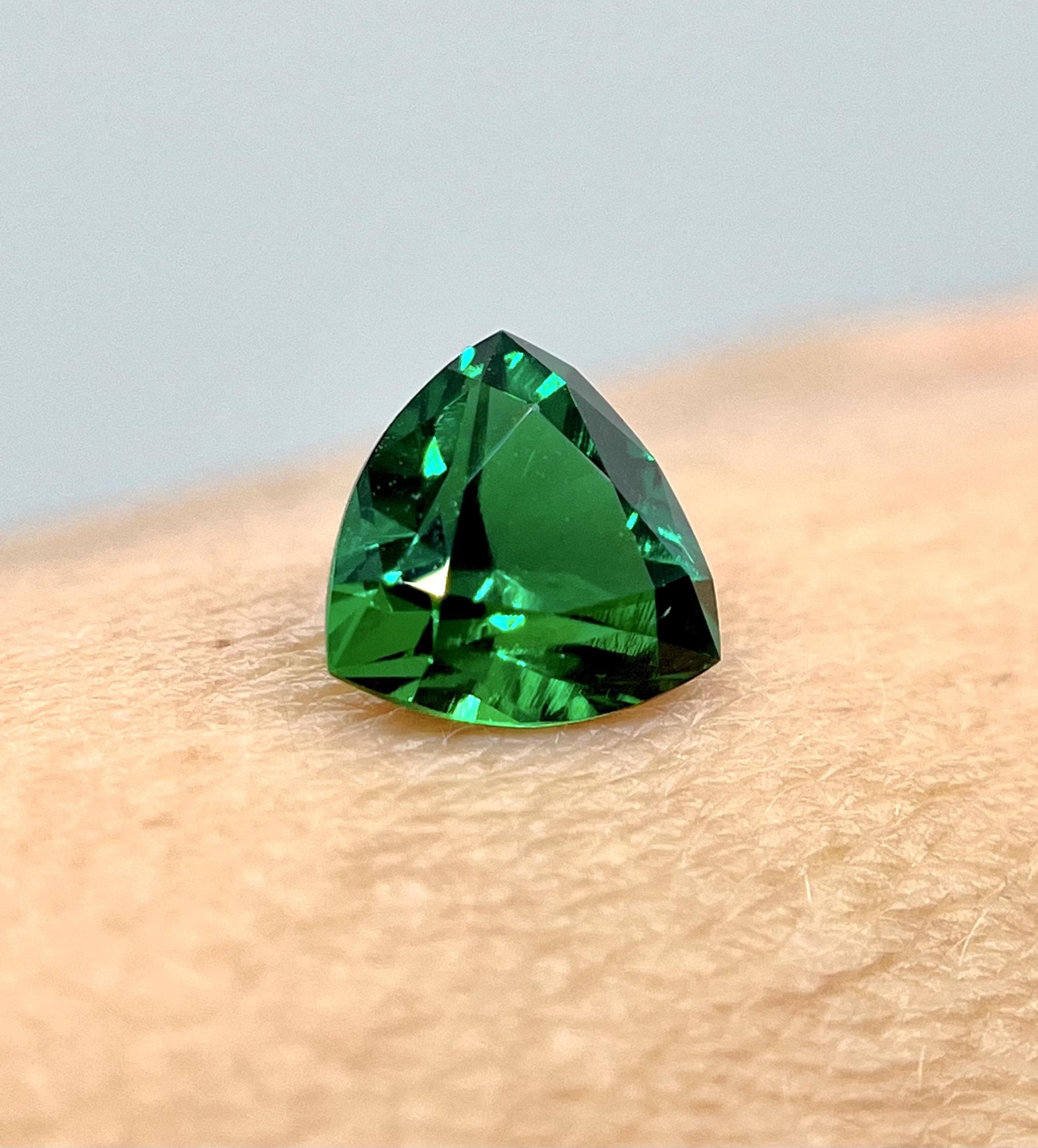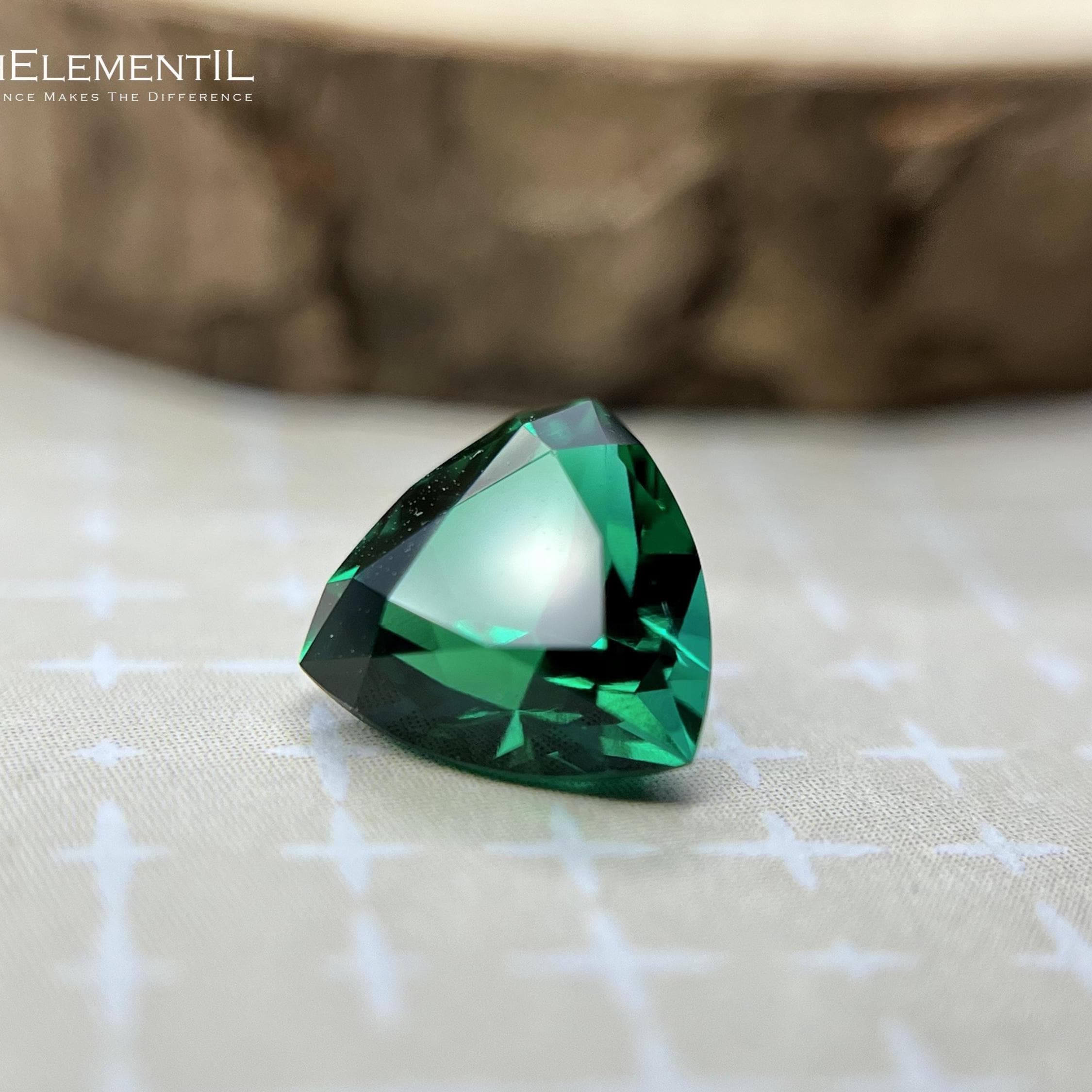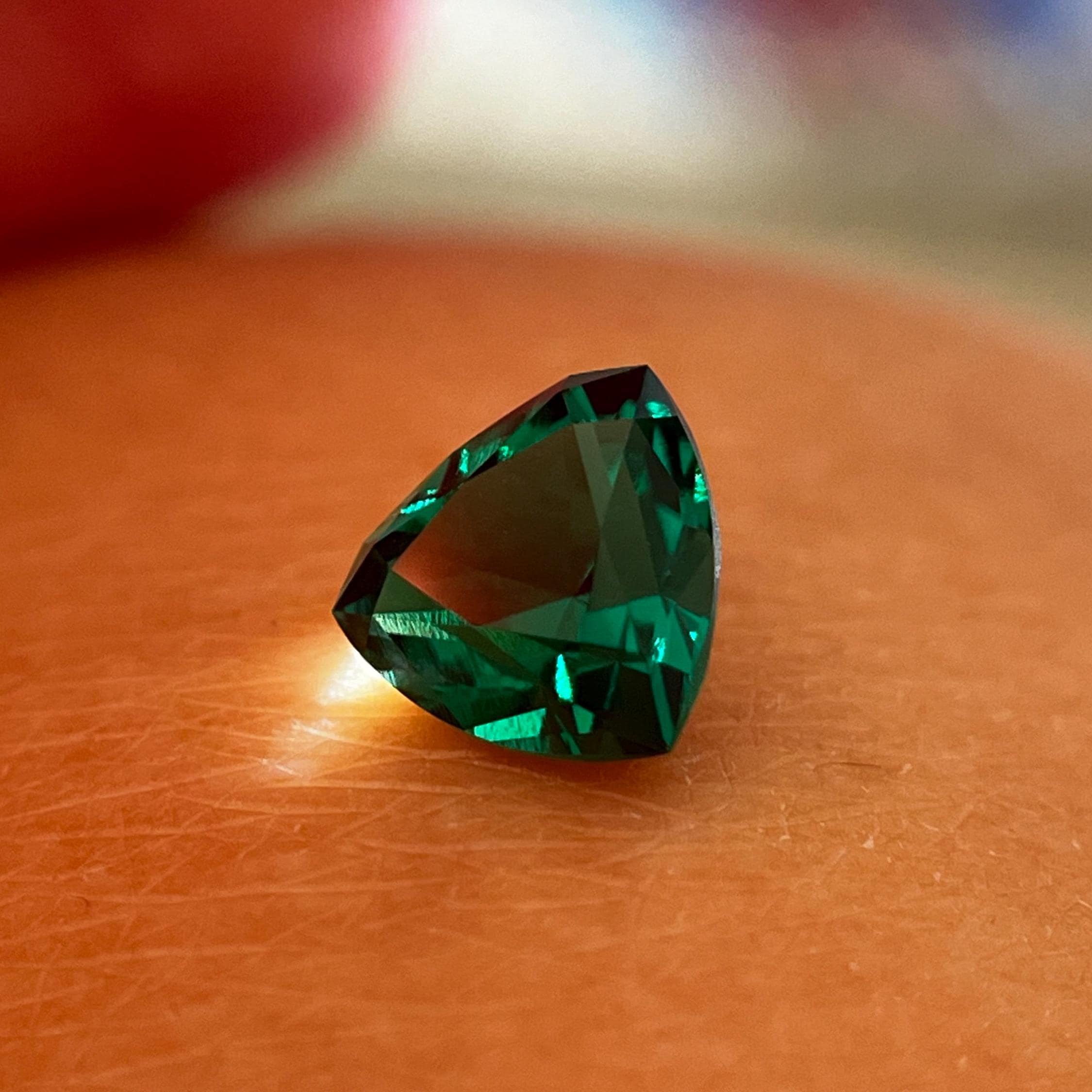 Trillion Cut Lab Grown Emerald Gemstone: Zambian Green Jewelry