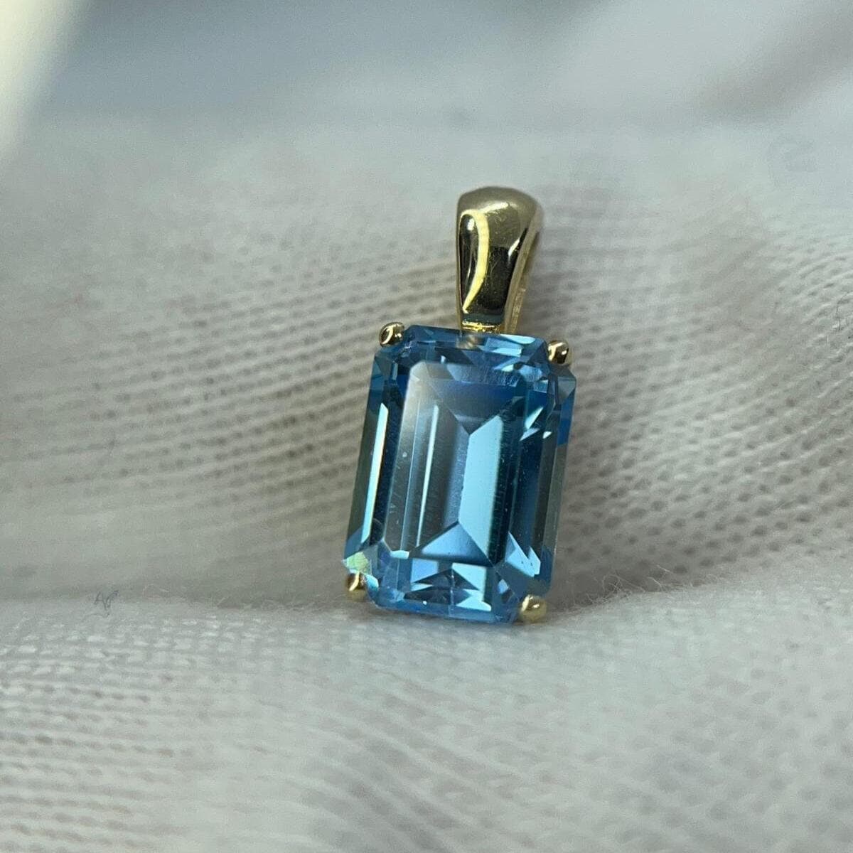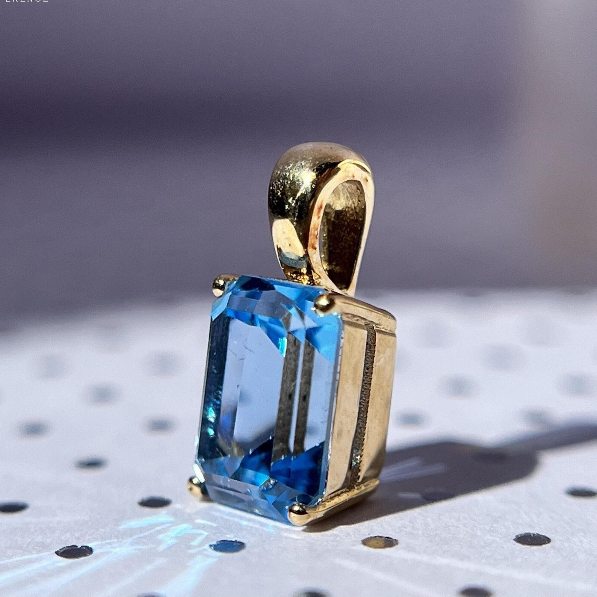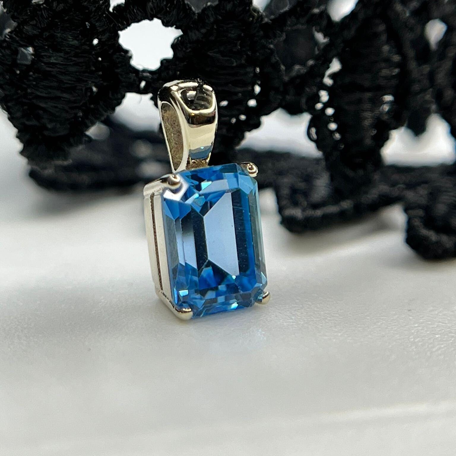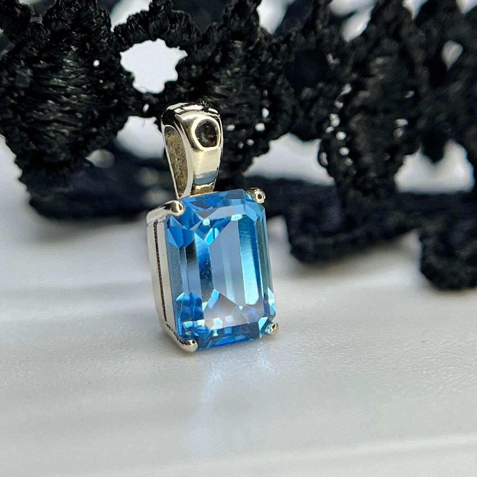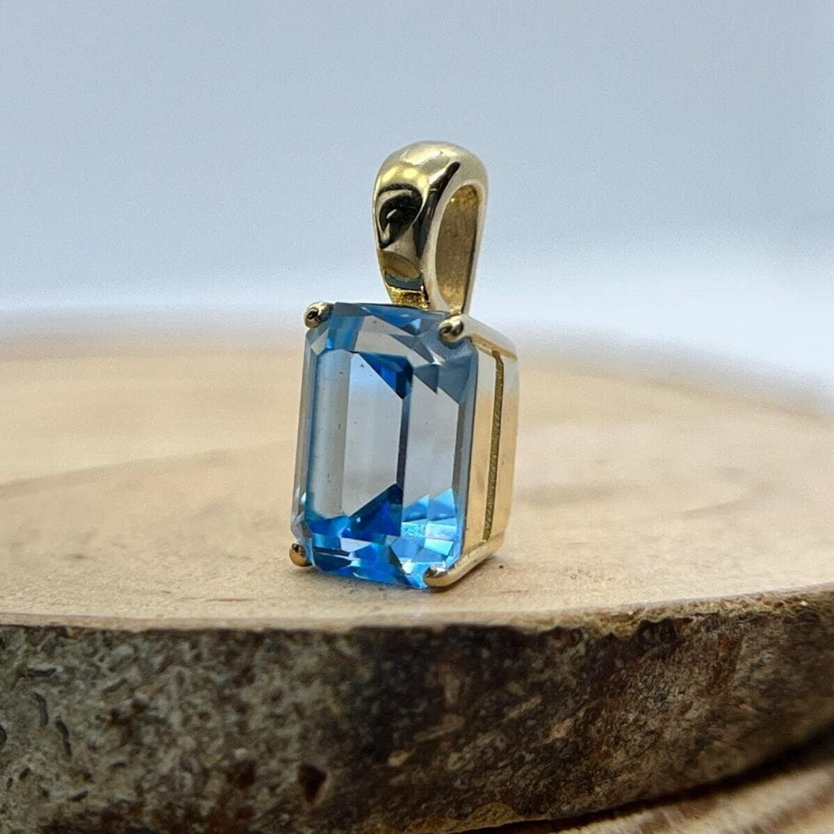 Light Blue Sapphire Pendant For Necklace. Solid Gold Minimalist Jewelry.