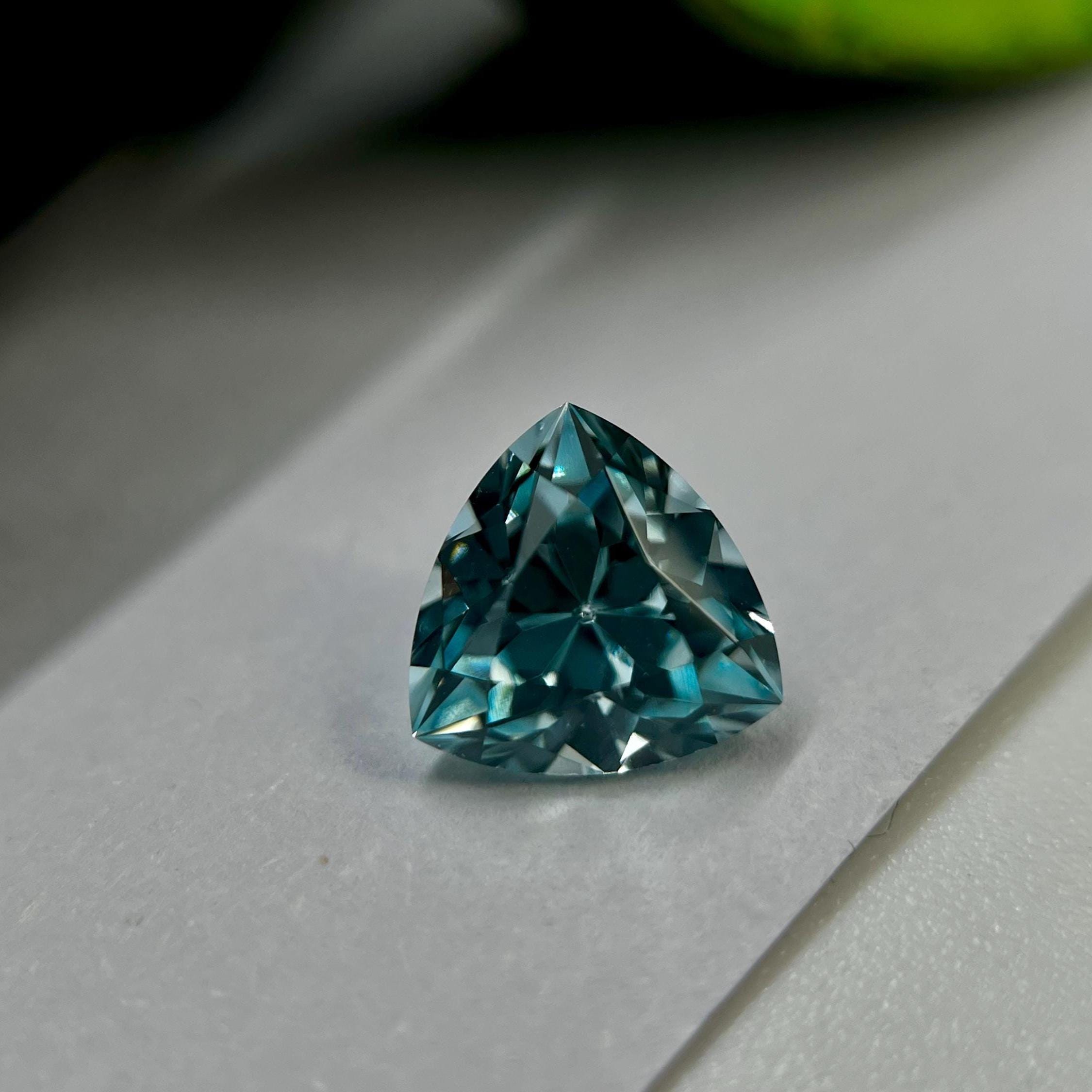 Aristocratic and breathtaking light blue lab created sapphire ( also known as London Blue Sapphire color ) cut and faceted in form of trillion - ideal pick to fulfill a unique jewelry dream either it would be a ring, pendant necklace or the earrings. In the nature such a color sapphires mostly found in Montana mountains and this particular color of corundum sapphires has an alternative name - Montana Blue or Montana Sapphire.