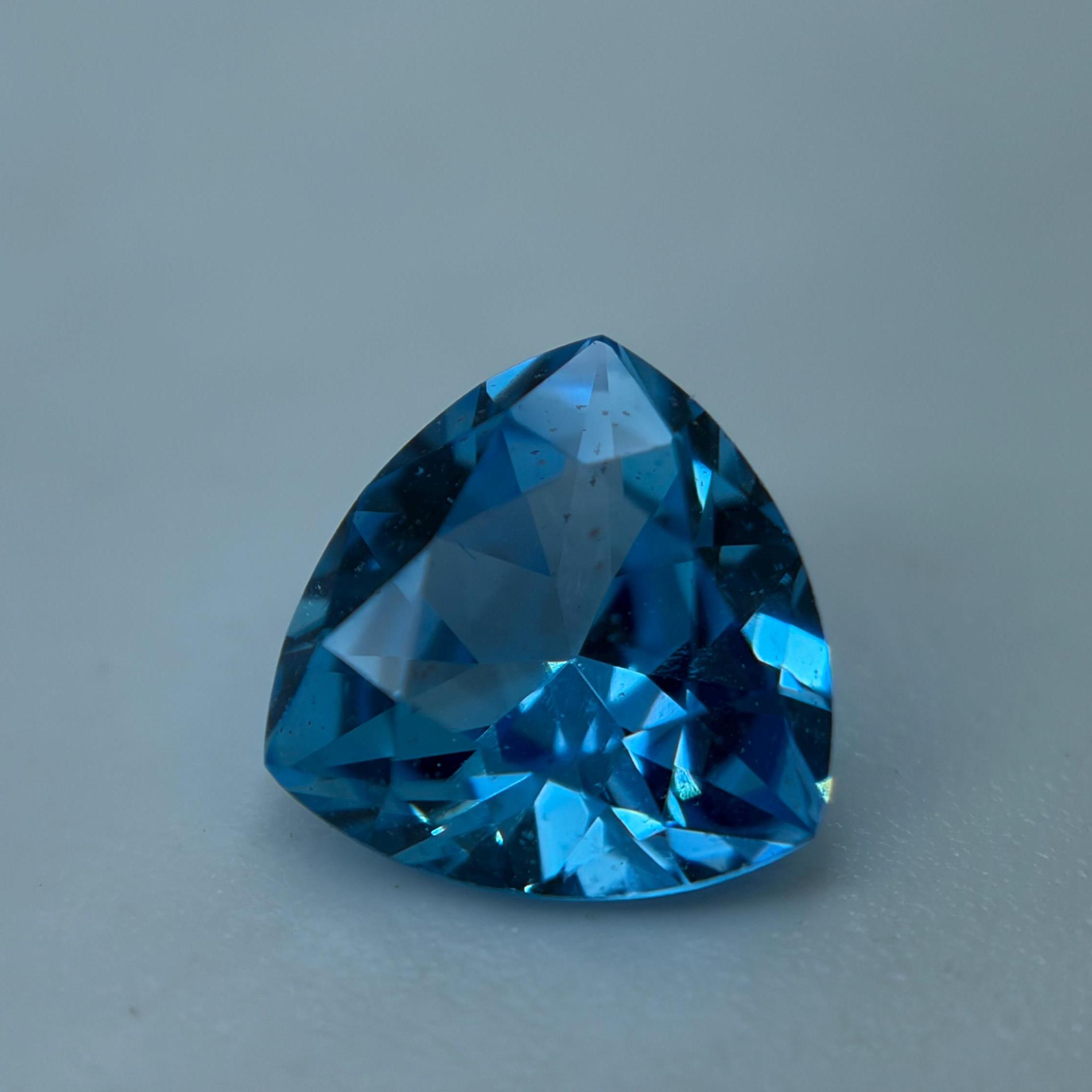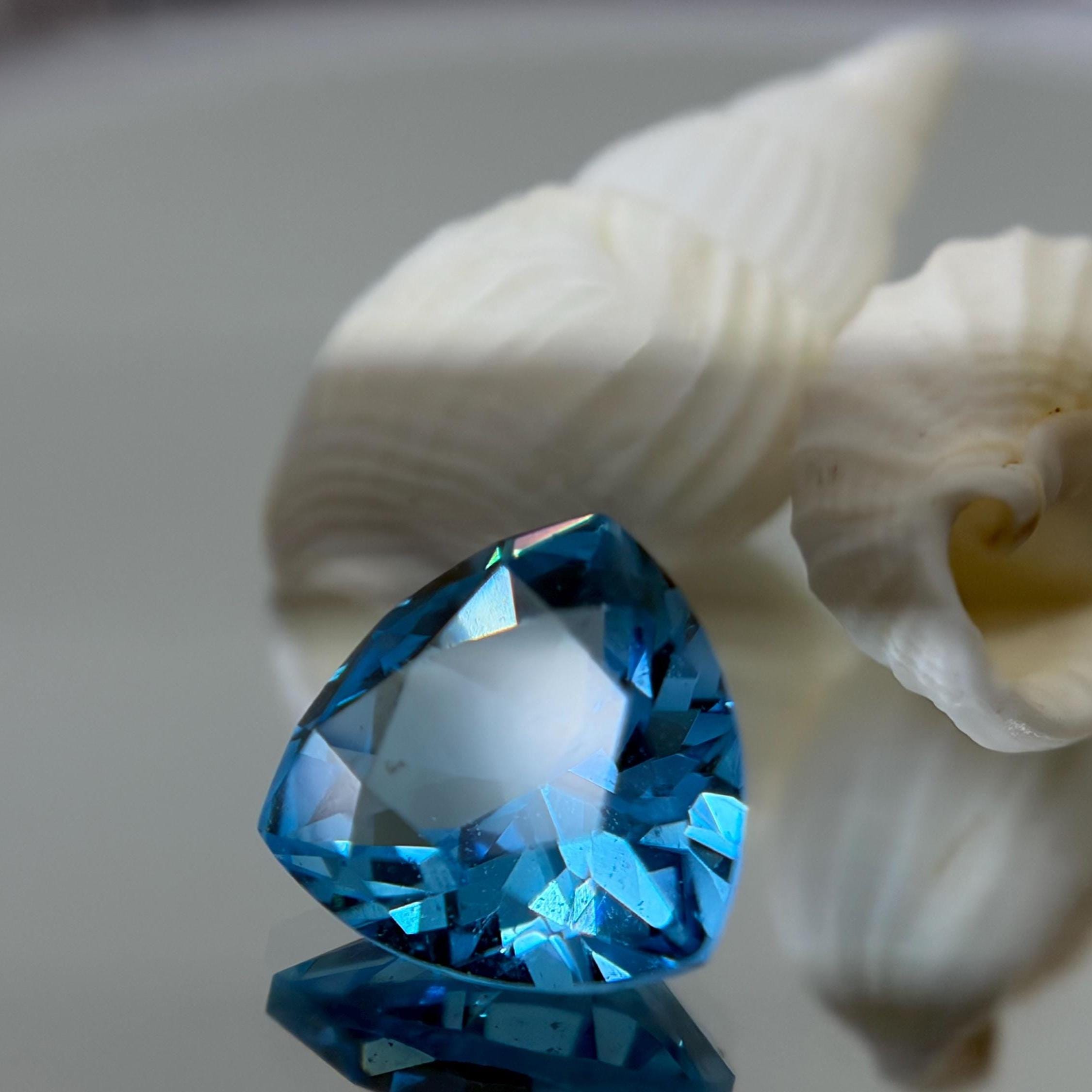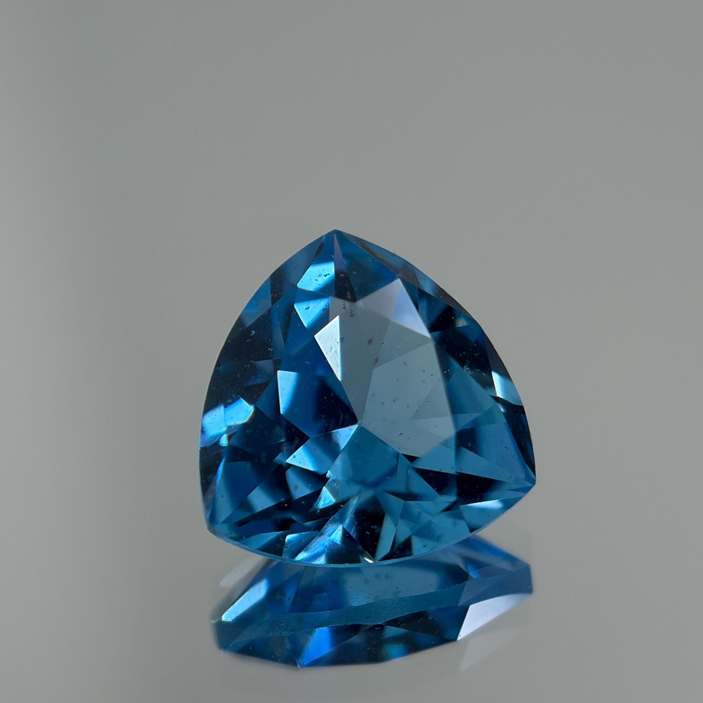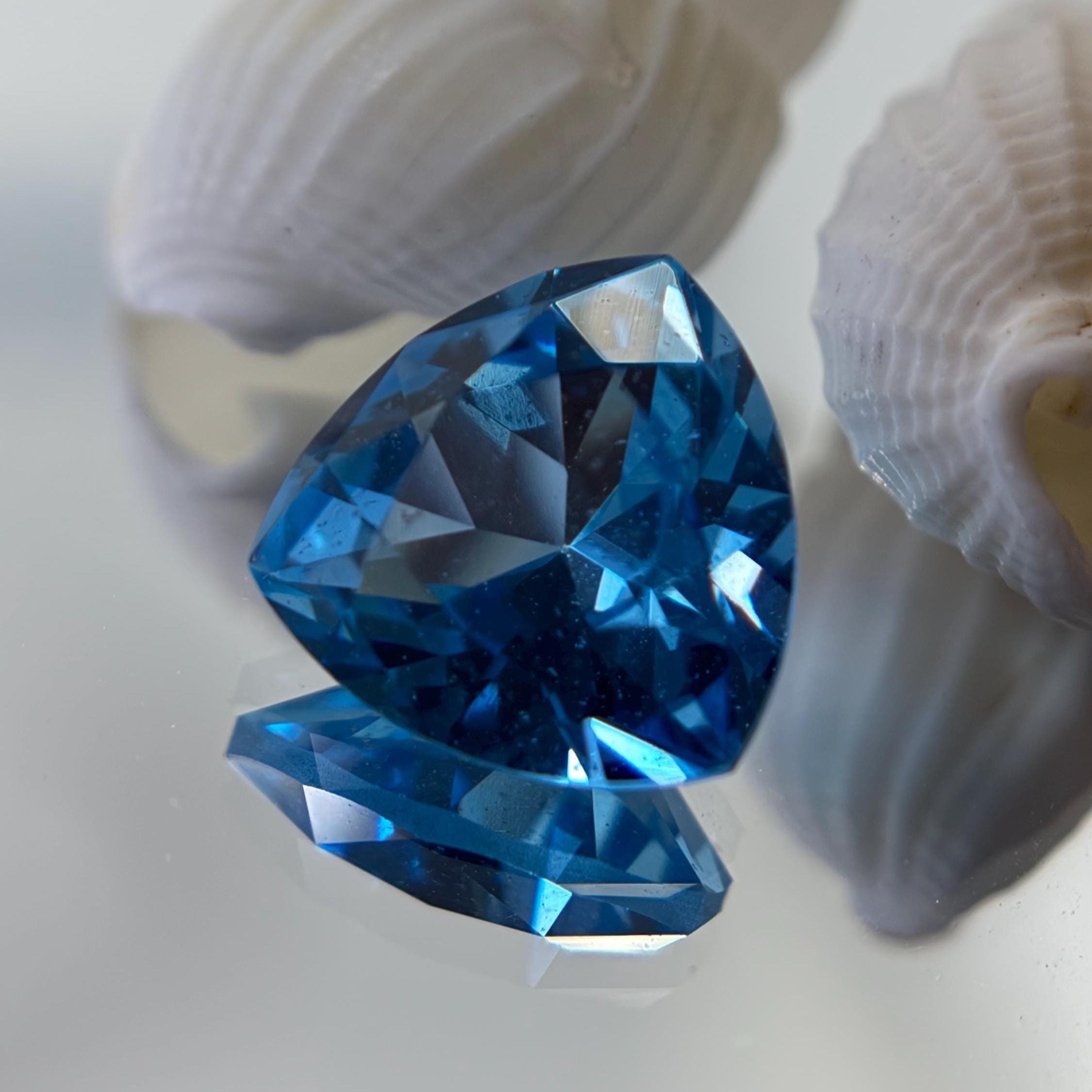 Aristocratic and breathtaking light blue lab created sapphire ( also known as London Blue Sapphire color ) cut and faceted in form of trillion - ideal pick to fulfill a unique jewelry dream either it would be a ring, pendant necklace or the earrings. In the nature such a color sapphires mostly found in Montana mountains and this particular color of corundum sapphires has an alternative name - Montana Blue or Montana Sapphire.