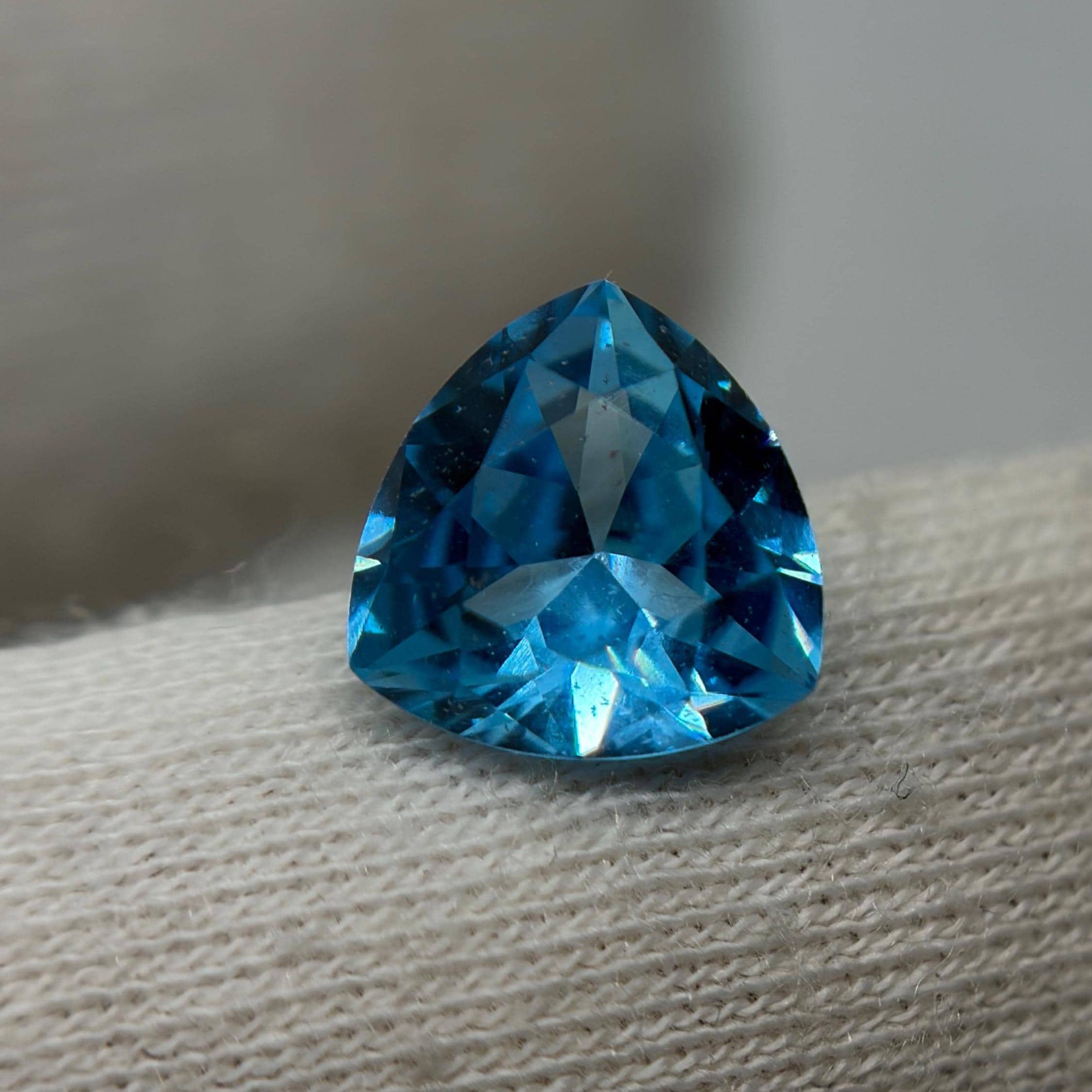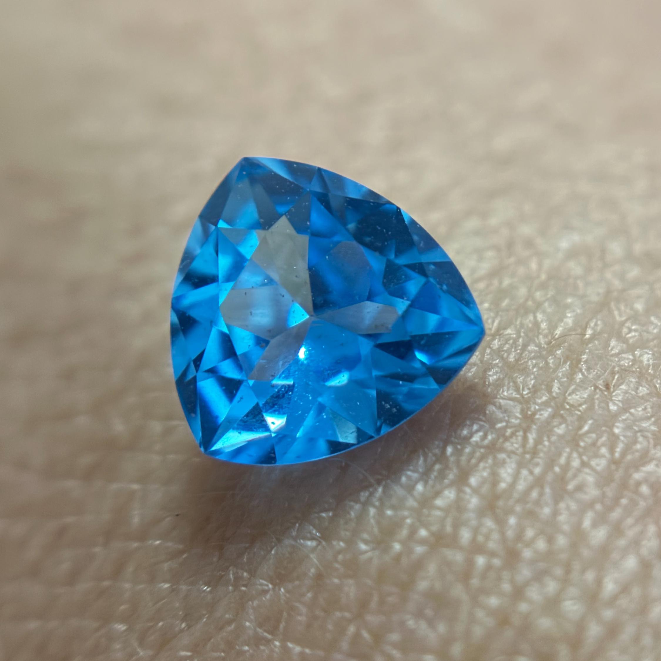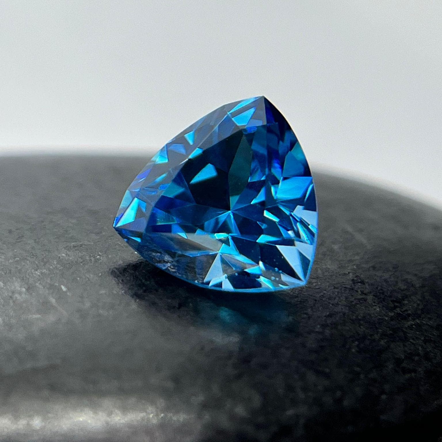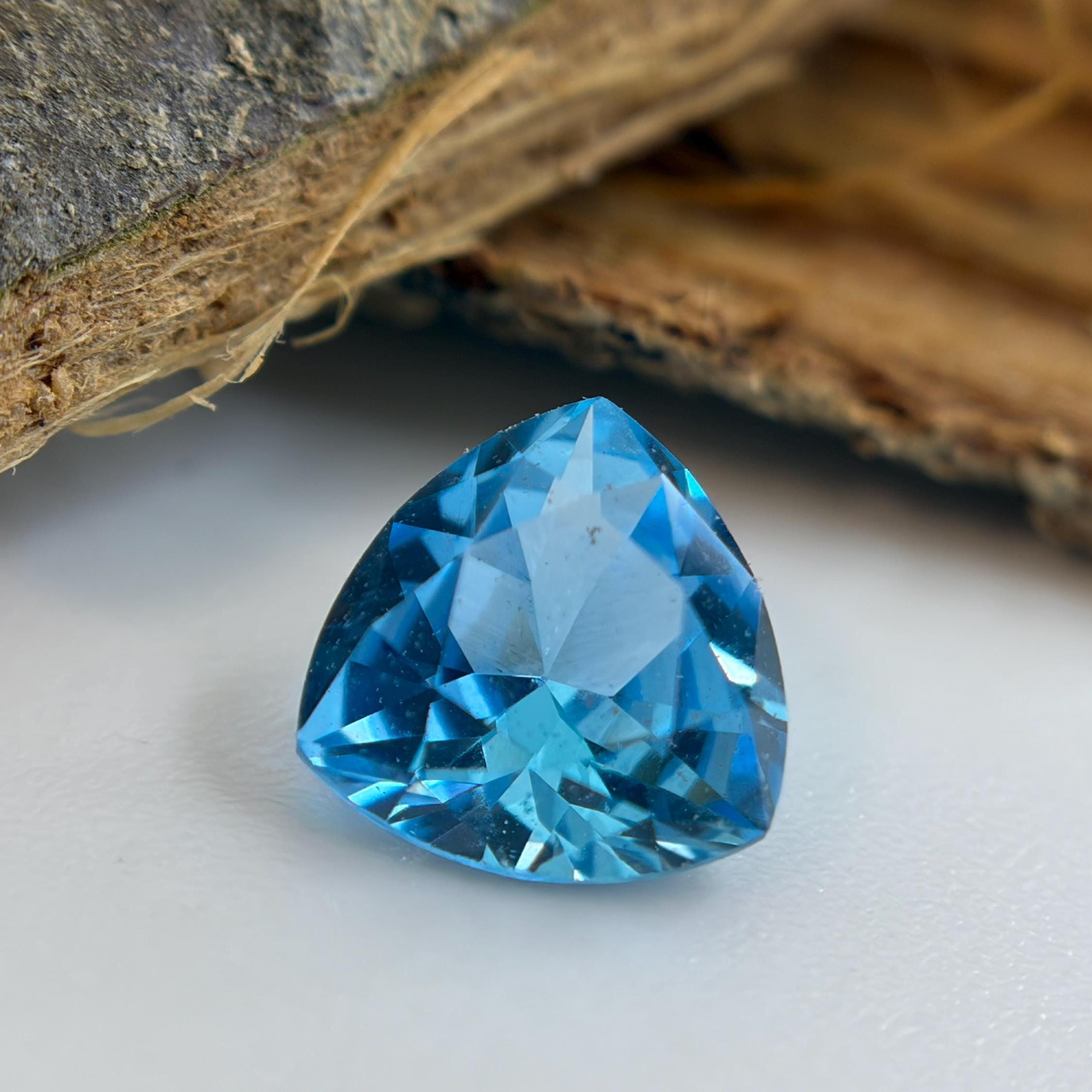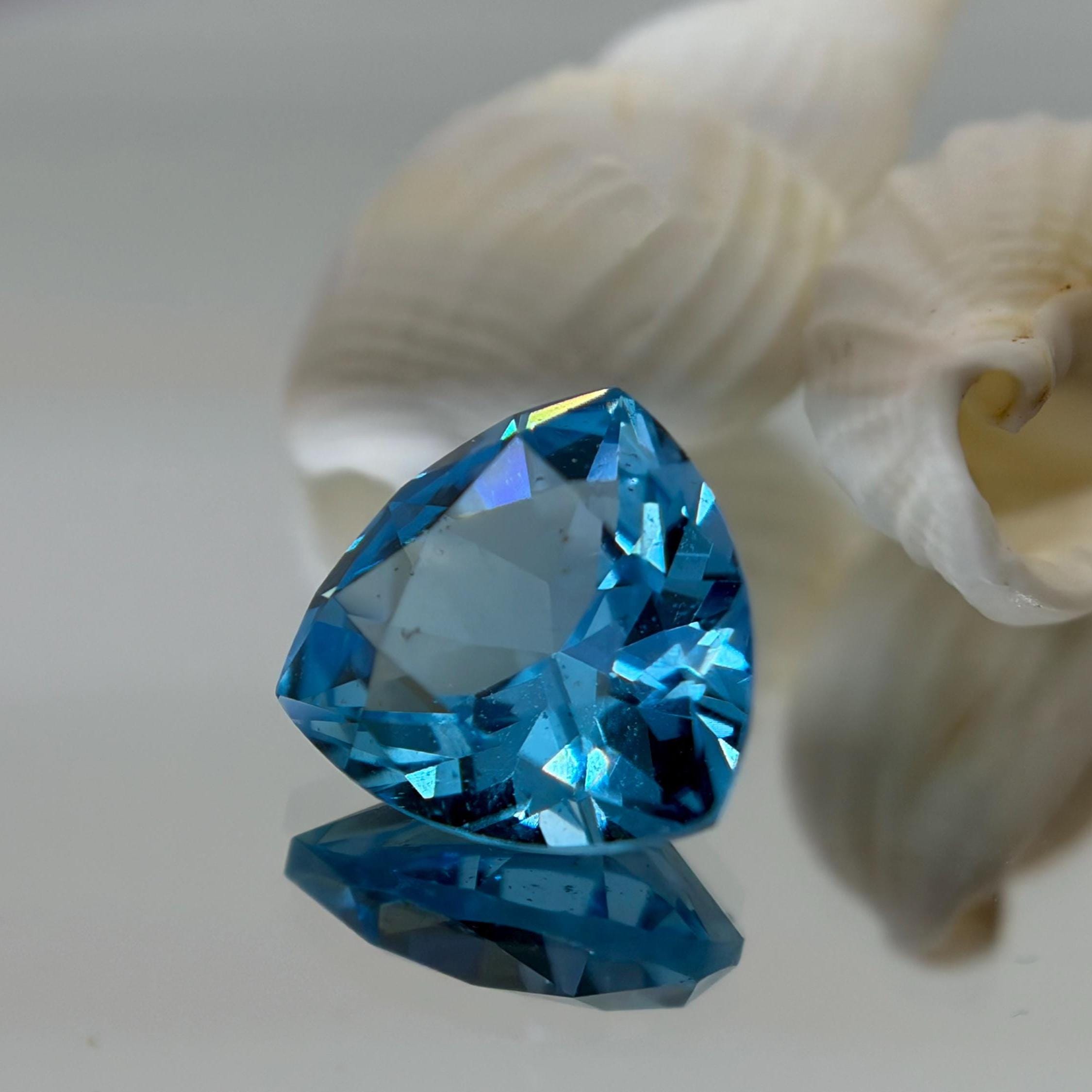 Aristocratic and breathtaking light blue lab created sapphire ( also known as London Blue Sapphire color ) cut and faceted in form of trillion - ideal pick to fulfill a unique jewelry dream either it would be a ring, pendant necklace or the earrings. In the nature such a color sapphires mostly found in Montana mountains and this particular color of corundum sapphires has an alternative name - Montana Blue or Montana Sapphire.
