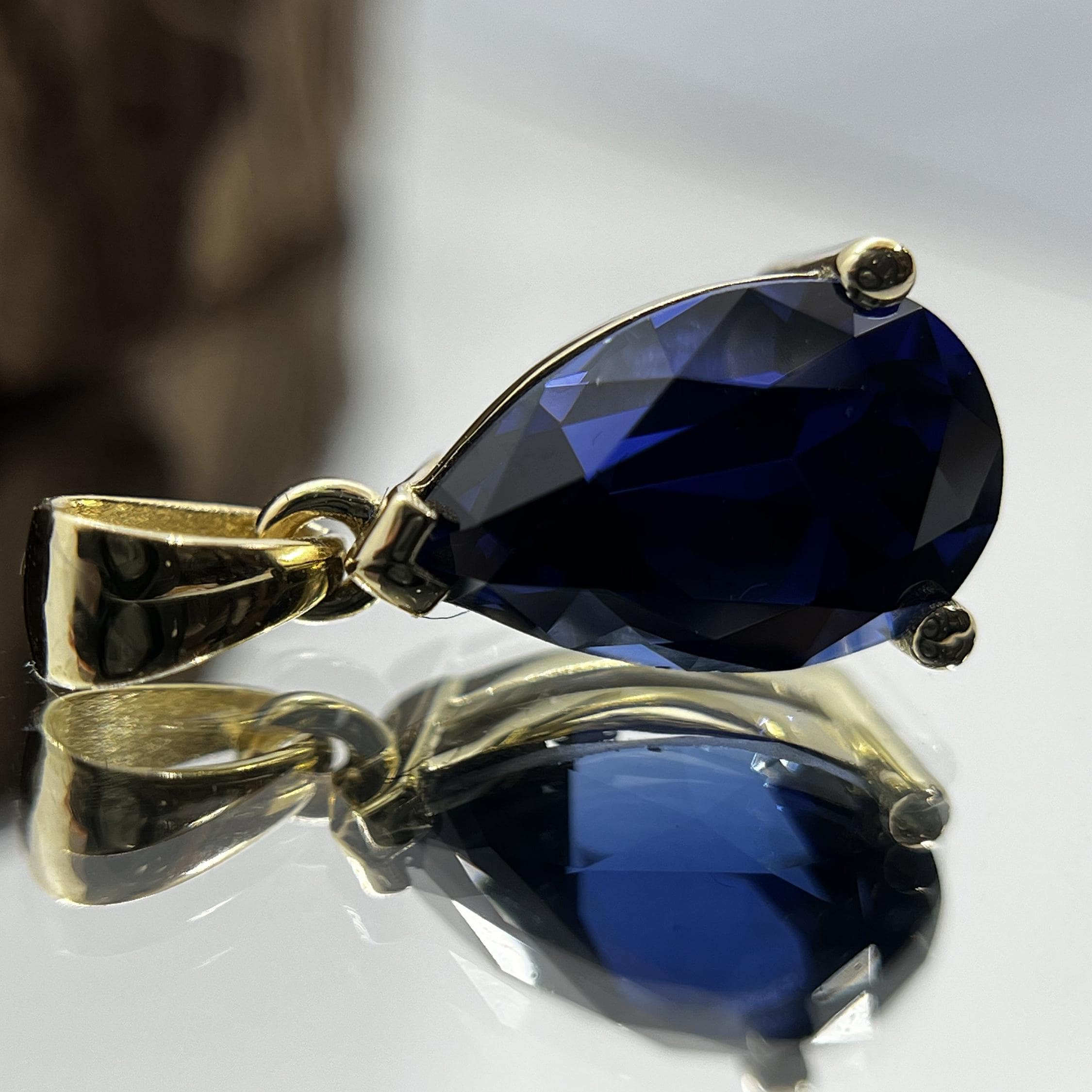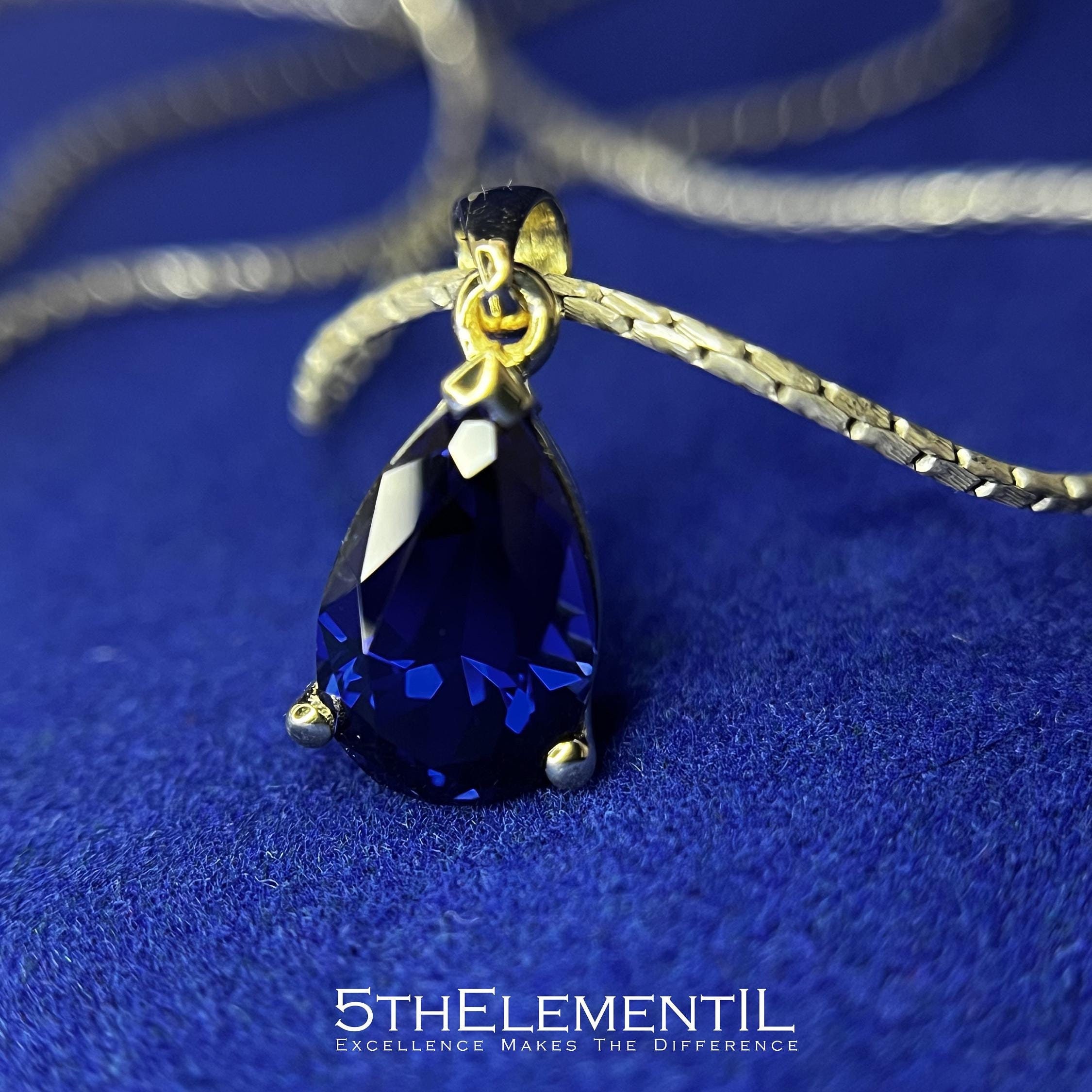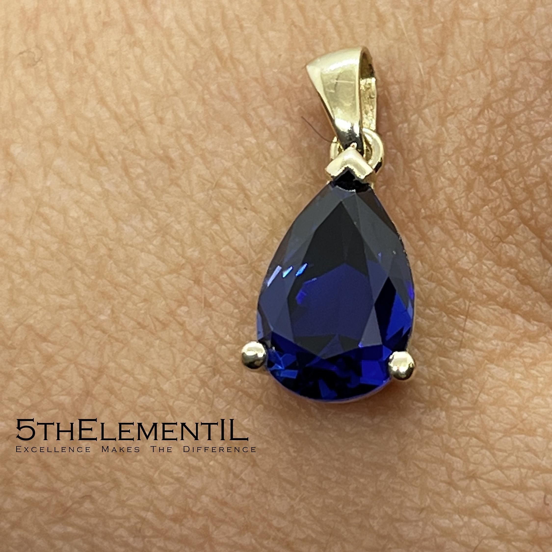 The heilroom quality lab grown sapphire gemstone of royal blue color. Professionally faceted by-the-book into a pear shape it has been installed into minimalist solid gold pendant for necklace. We believe that excellence makes the difference, our gemstones are well recognized as best quality at the current world market. On top of the highest sapphire quality we offer in this listing the professional jewelry work by our world-class craftsmen and also a lot of love, warmth and spirit of the Old City of Jerusalem as an additional value.