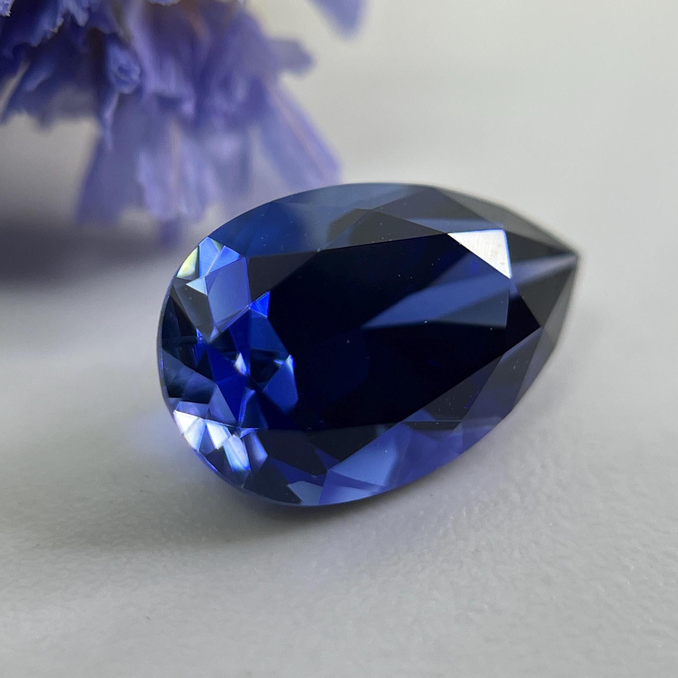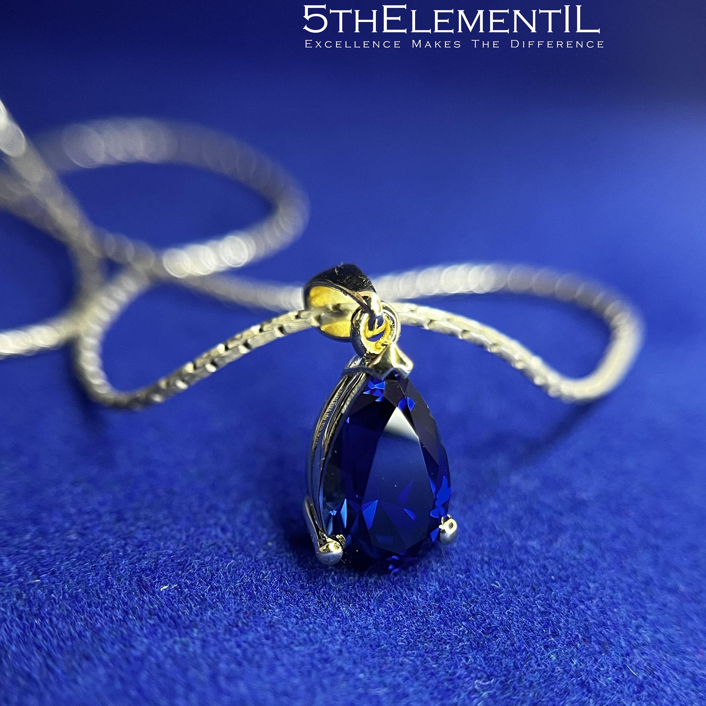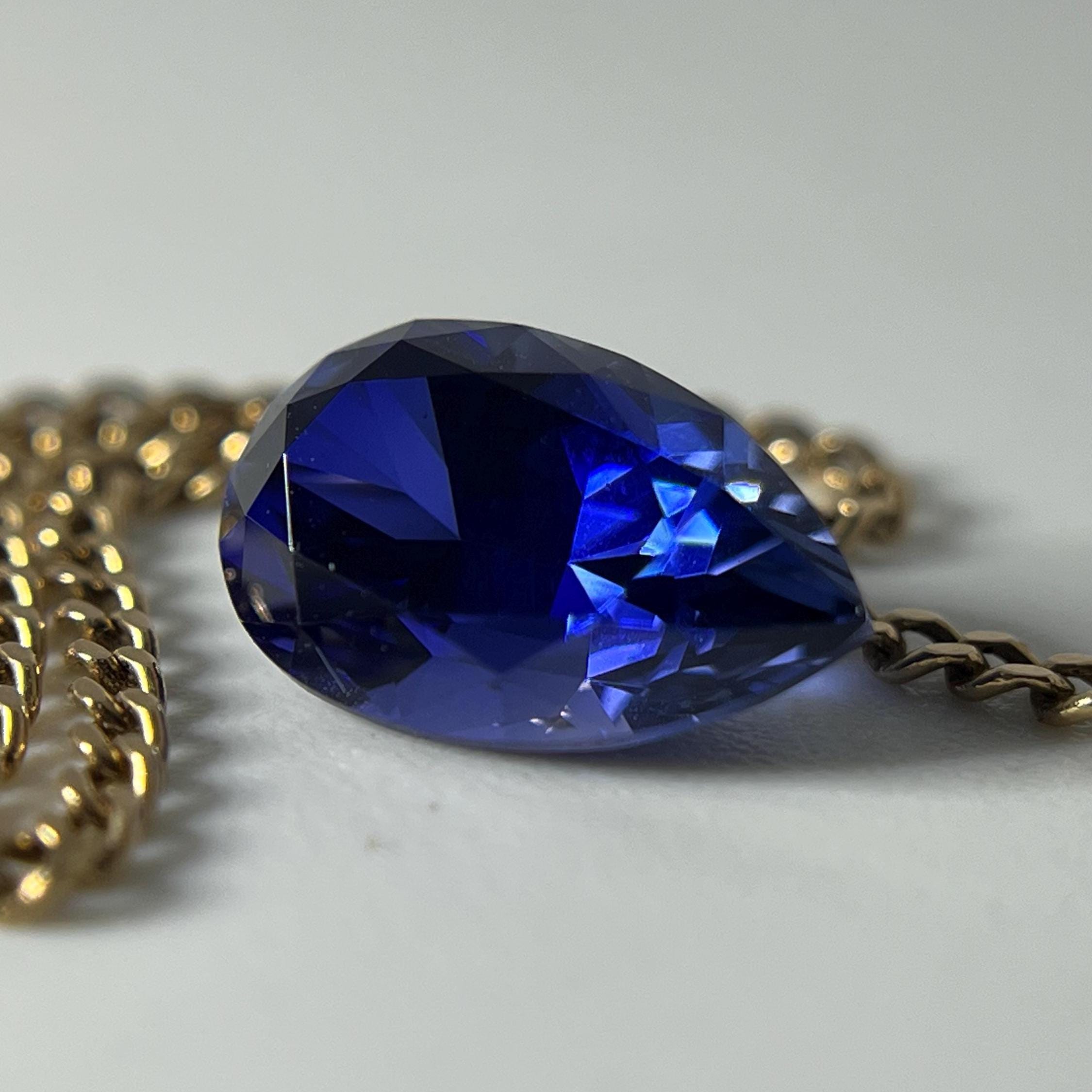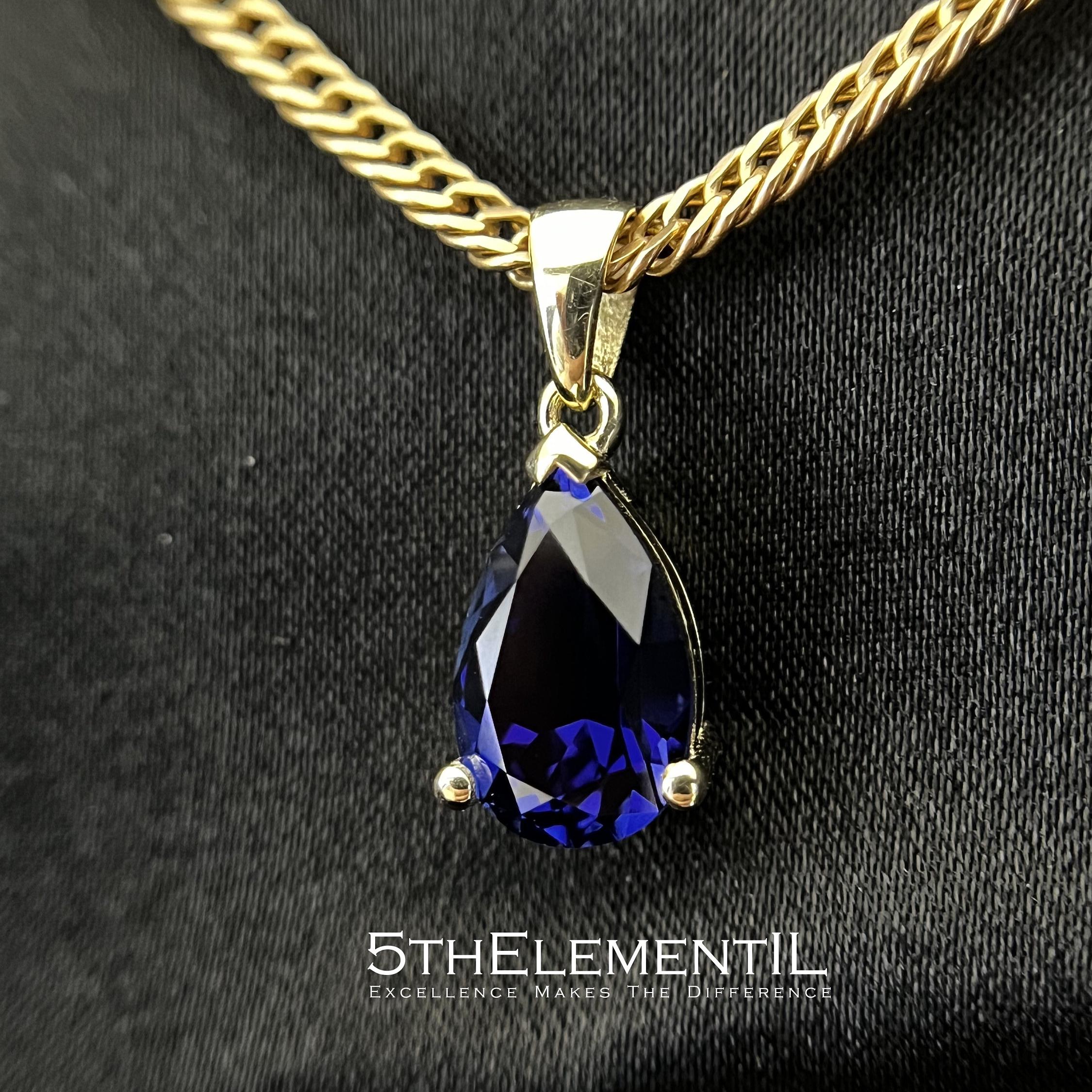 The heilroom quality lab grown sapphire gemstone of royal blue color. Professionally faceted by-the-book into a pear shape it has been installed into minimalist solid gold pendant for necklace. We believe that excellence makes the difference, our gemstones are well recognized as best quality at the current world market. On top of the highest sapphire quality we offer in this listing the professional jewelry work by our world-class craftsmen and also a lot of love, warmth and spirit of the Old City of Jerusalem as an additional value.
