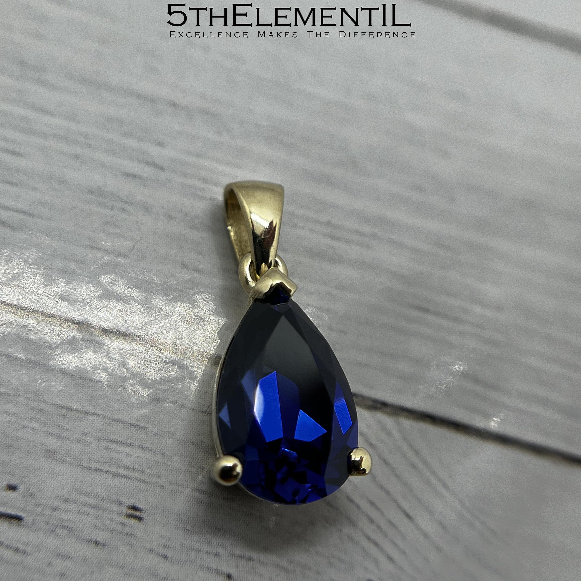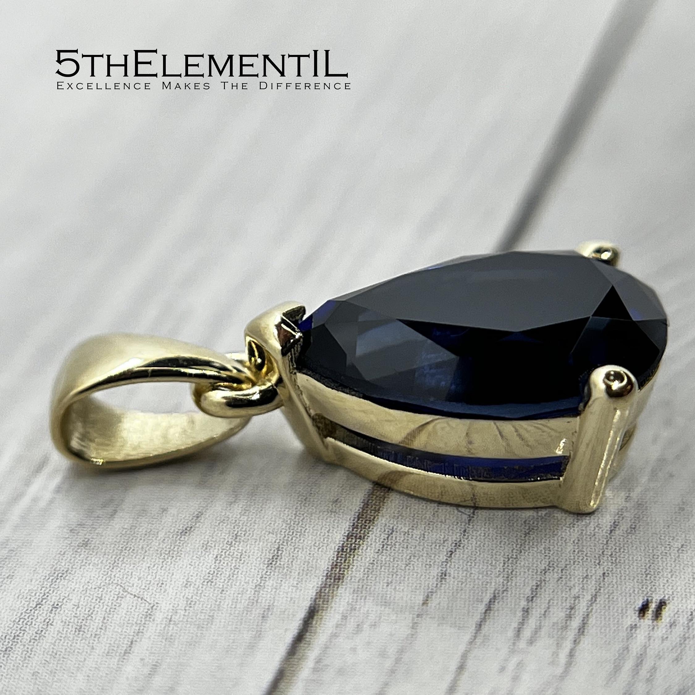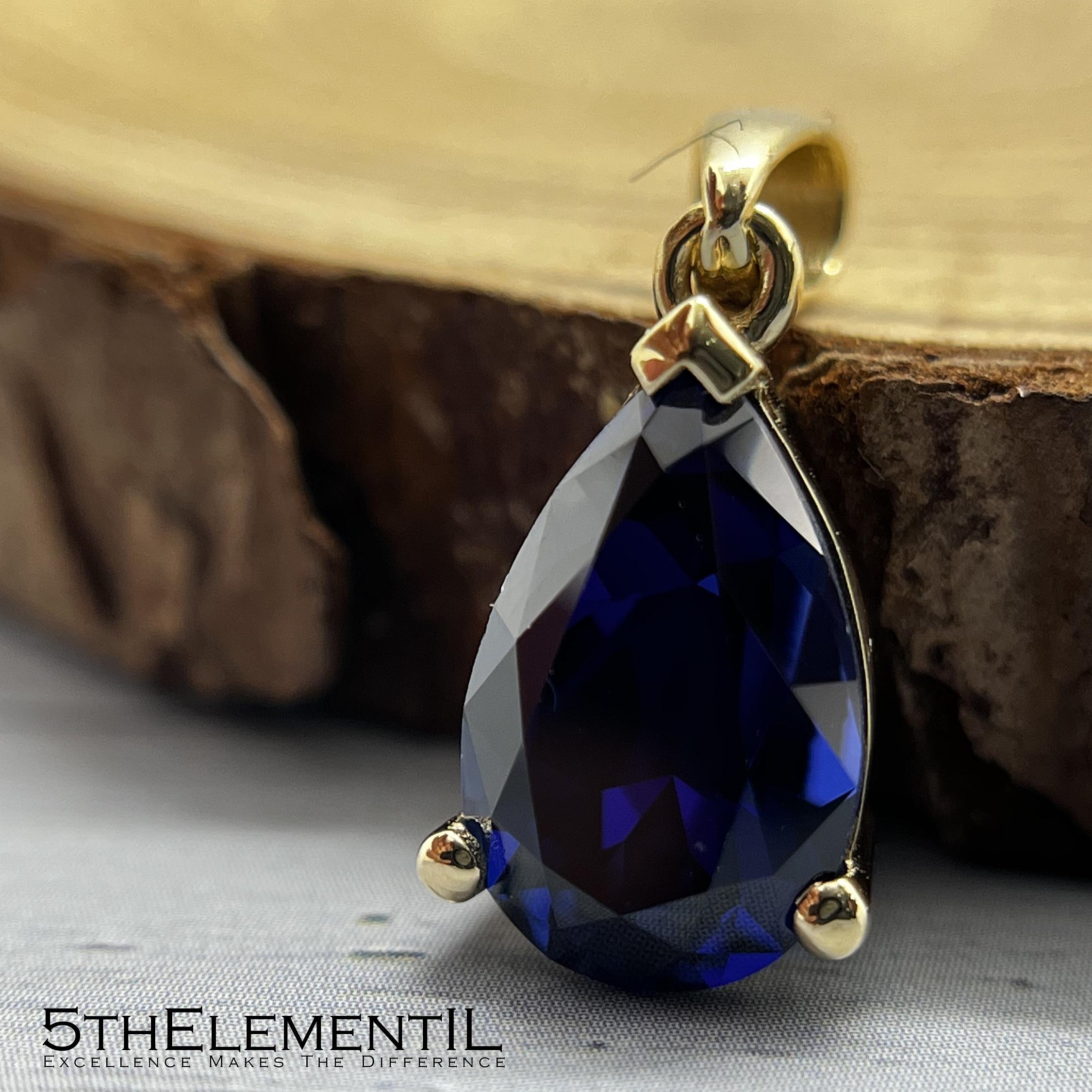 Teardrop Sapphire 14K Gold Minimalist Pendant For Necklace. Highest Quality Lab Grown Teardrop Sapphire Solid Gold Minimalist Jewelry.
