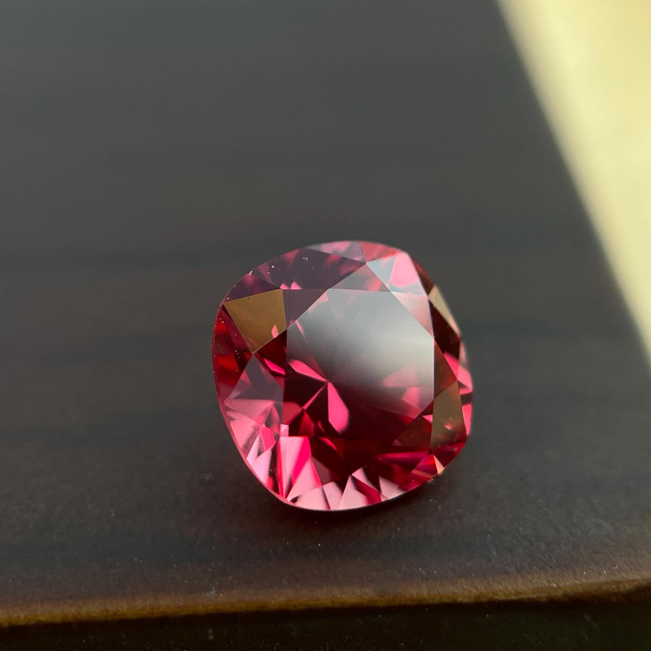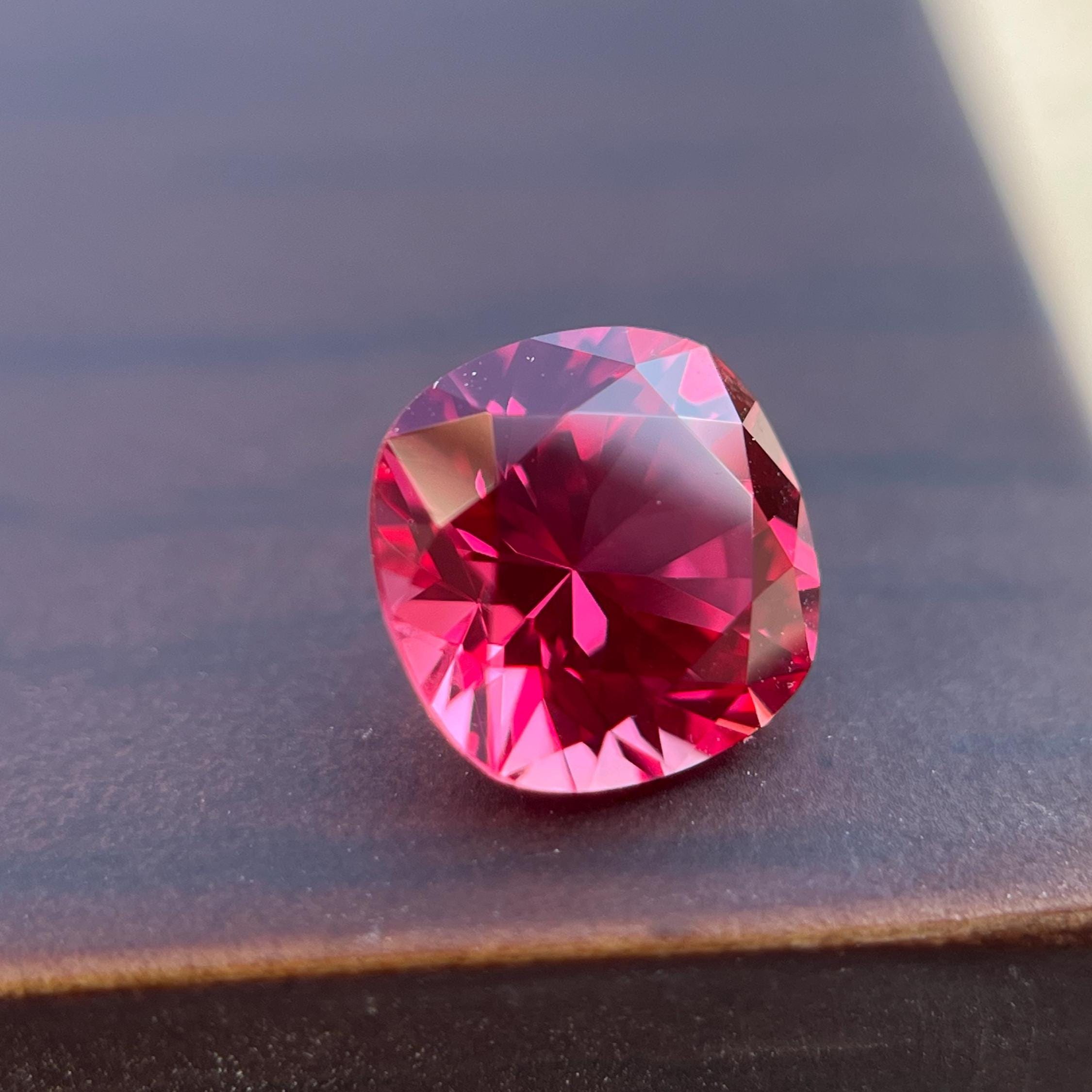 Unique color lab grown 2.70 ct Padparadscha cushion cut sapphire — a rare orangish‑pink gemstone ideal for exquisite jewelry pieces or craft supplies.