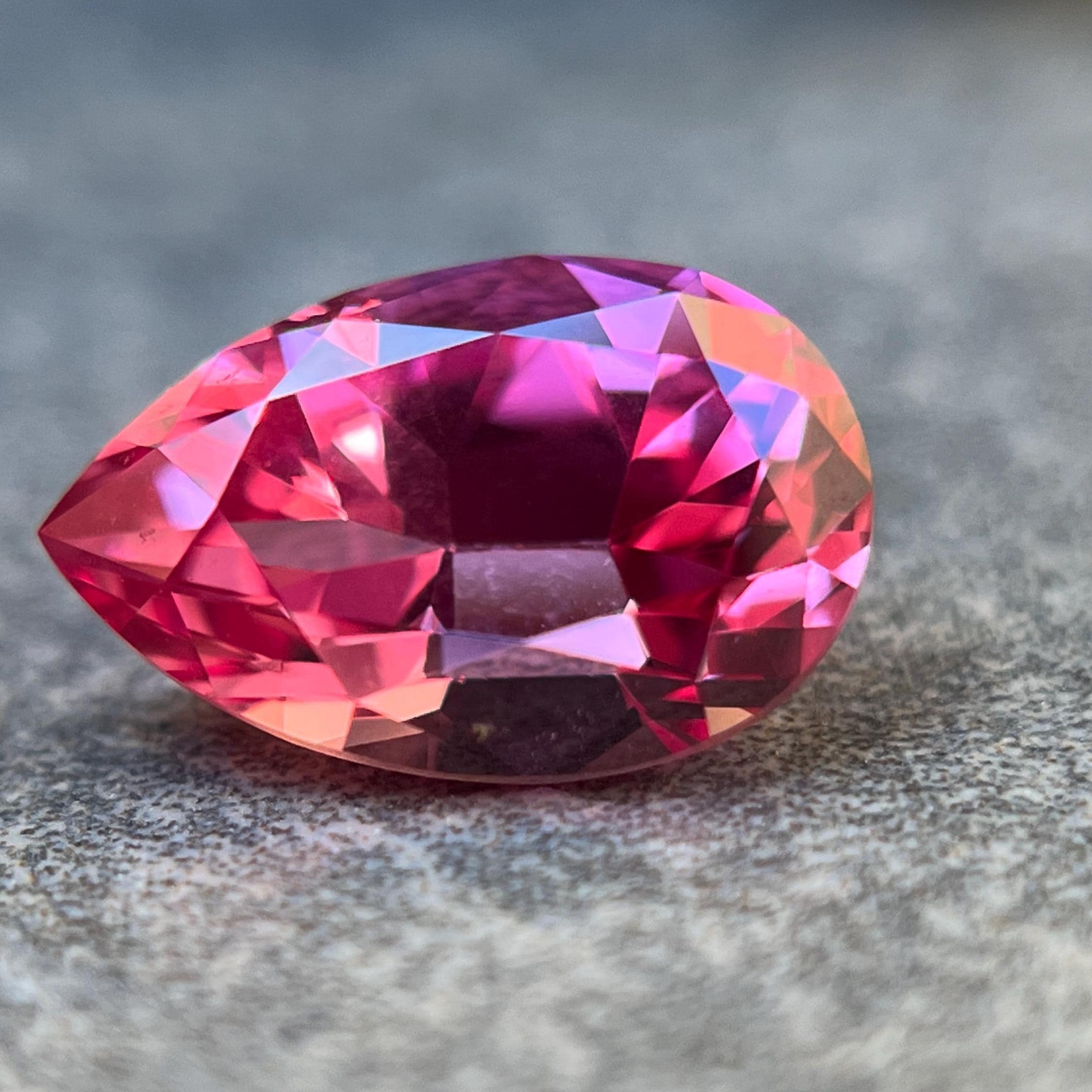 This gemstone mimics the mesmerizing beauty of rare natural Padparadscha sapphires — known for their delicate pink-orange hues — but at a fraction of the cost. Expertly cut to maximize sparkle and color, this pear-shaped stone is perfect for collectors, designers, and DIY jewelers.