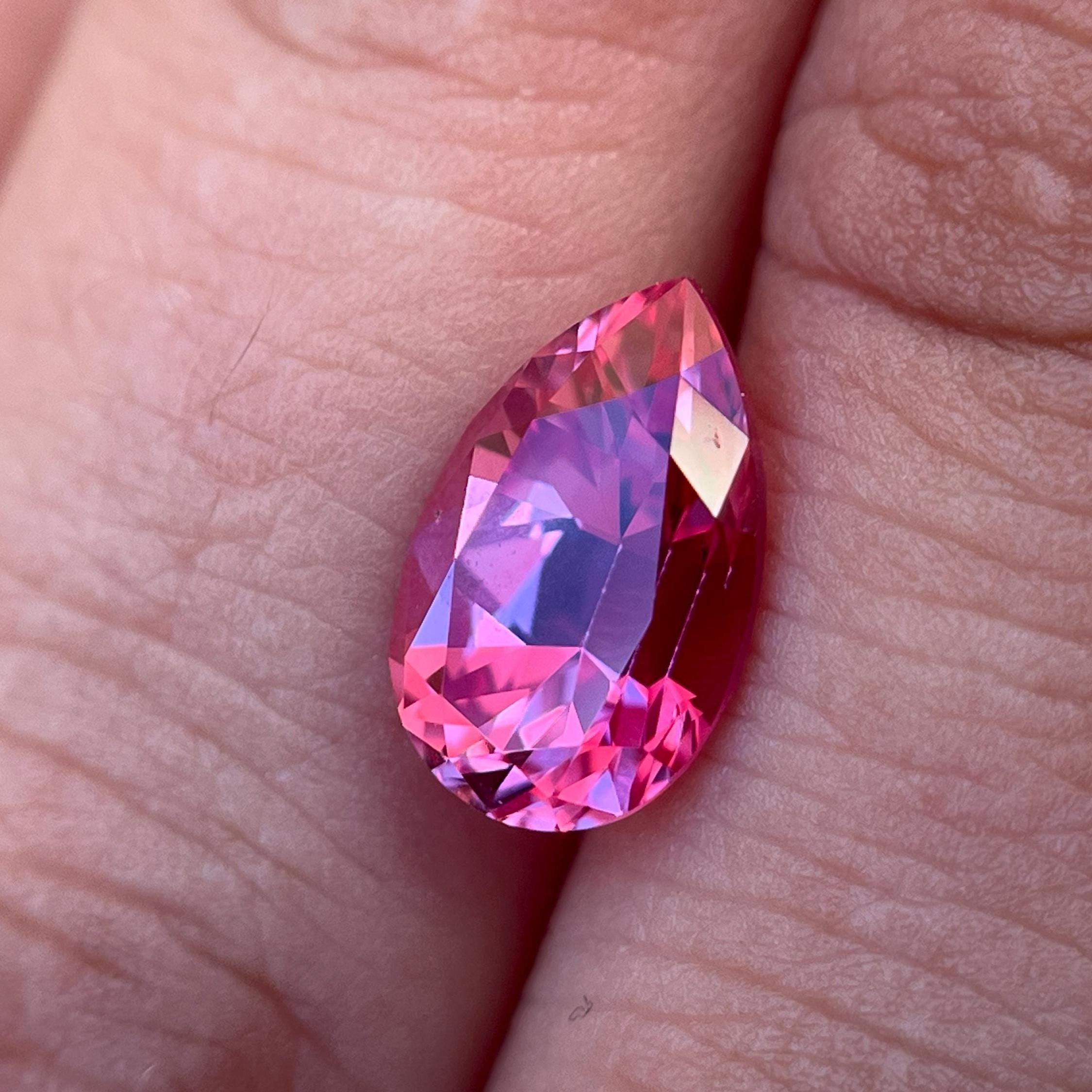3ct Lab Grown Padparadscha Sapphire: Pear Cut Pink Gemstone