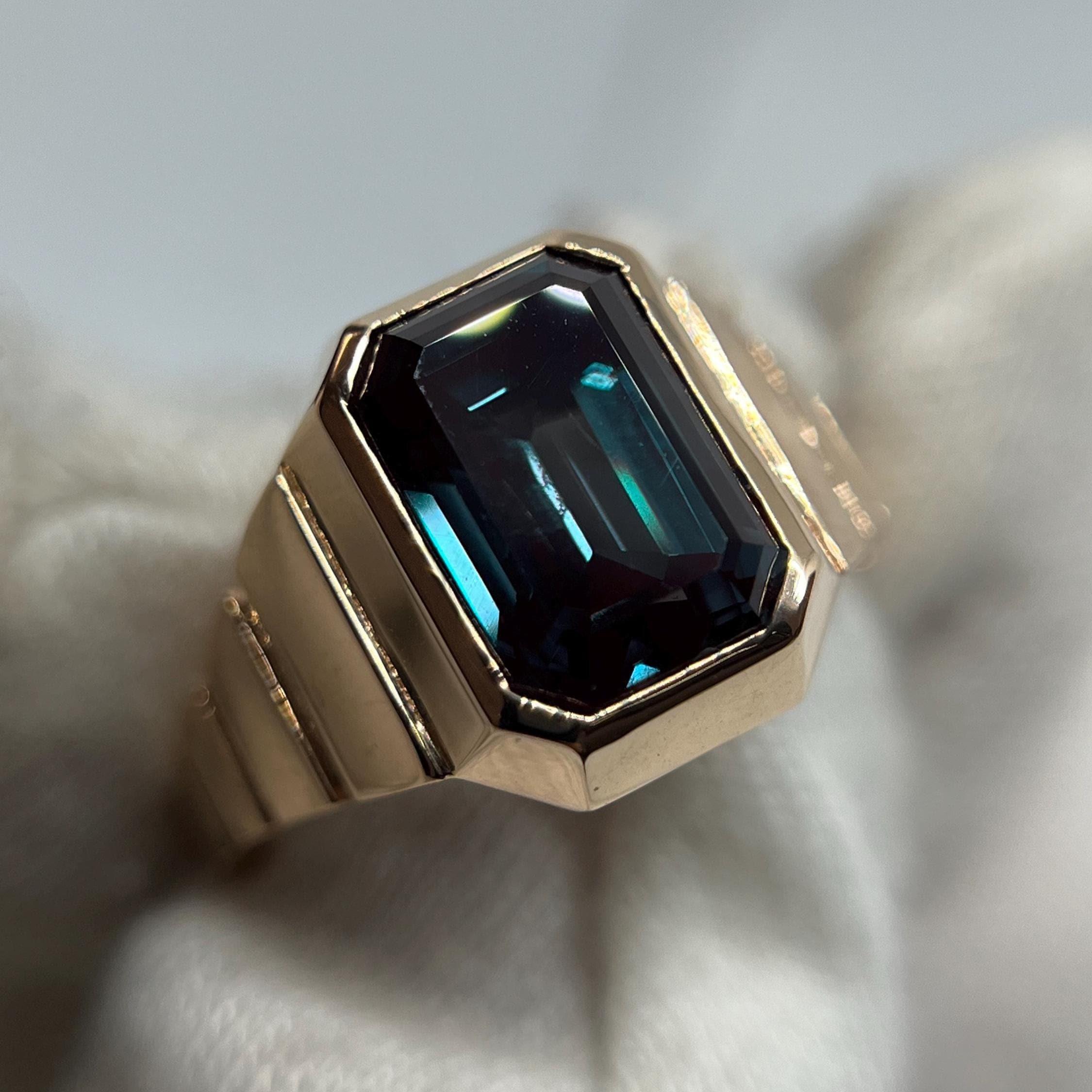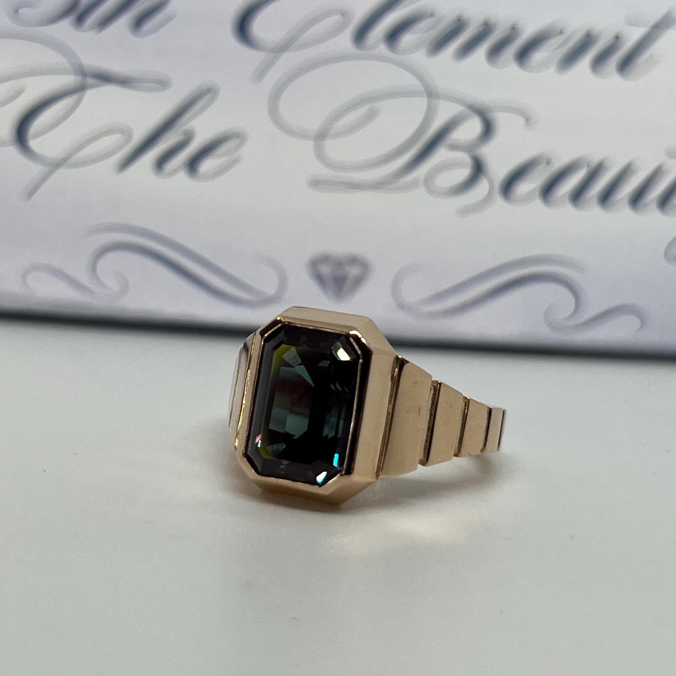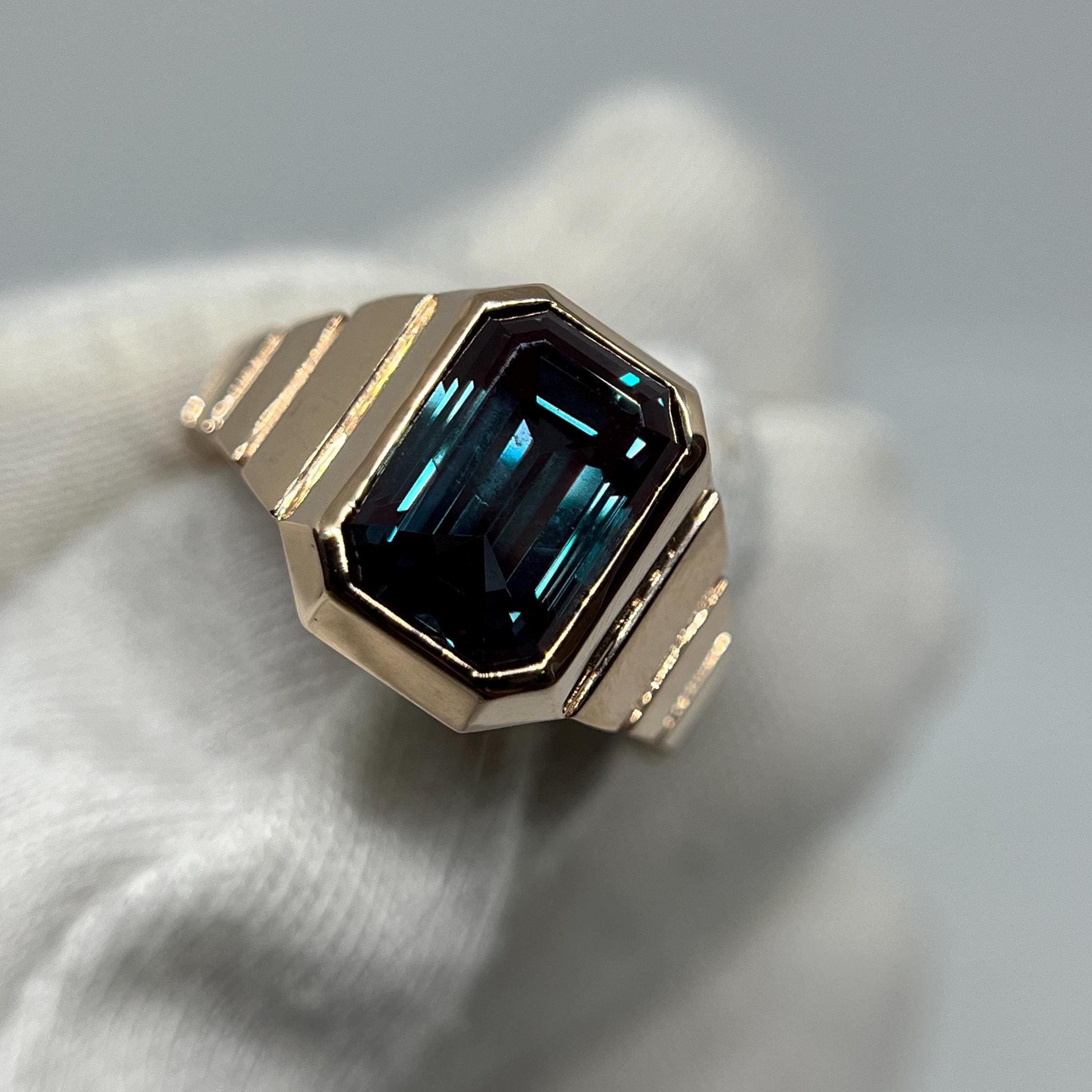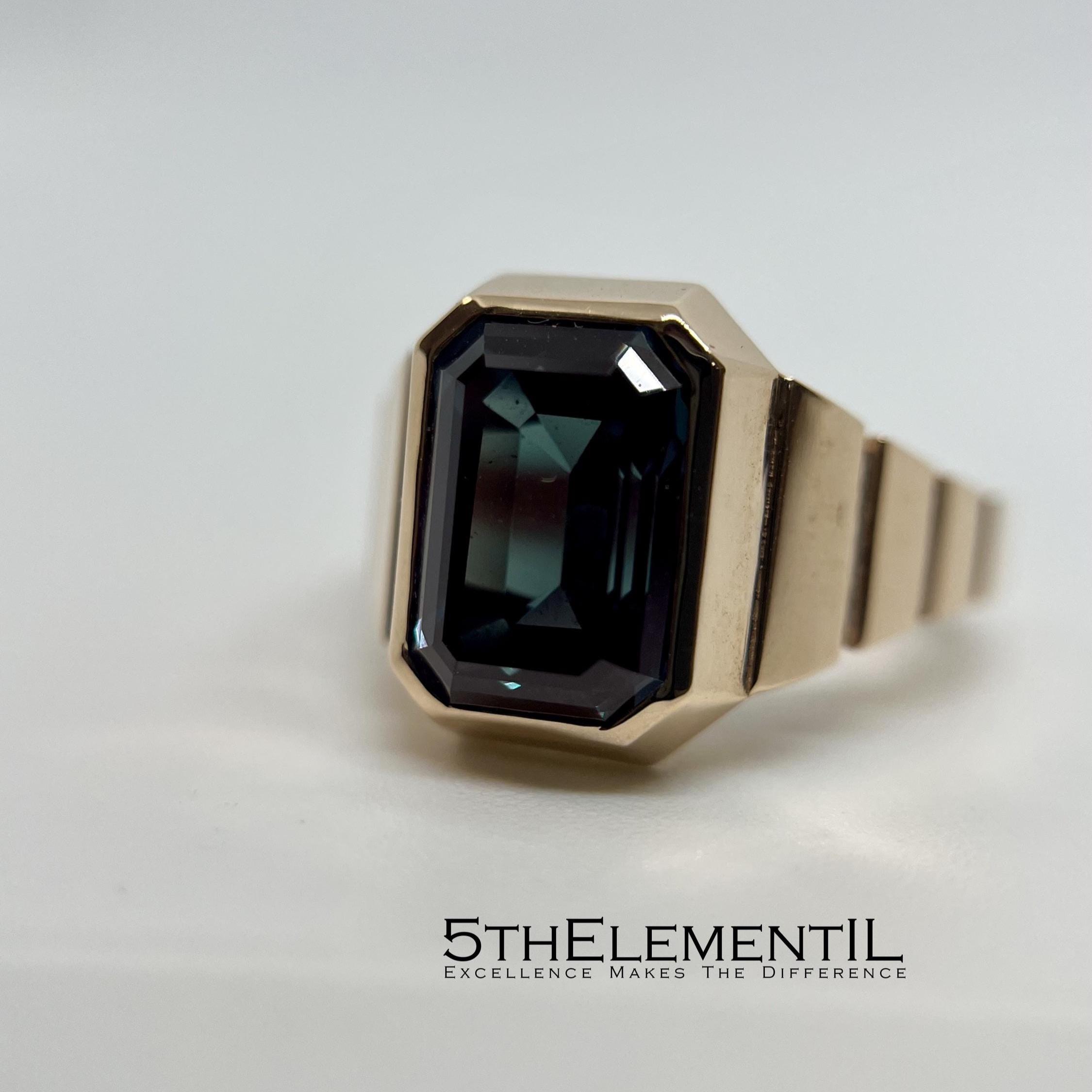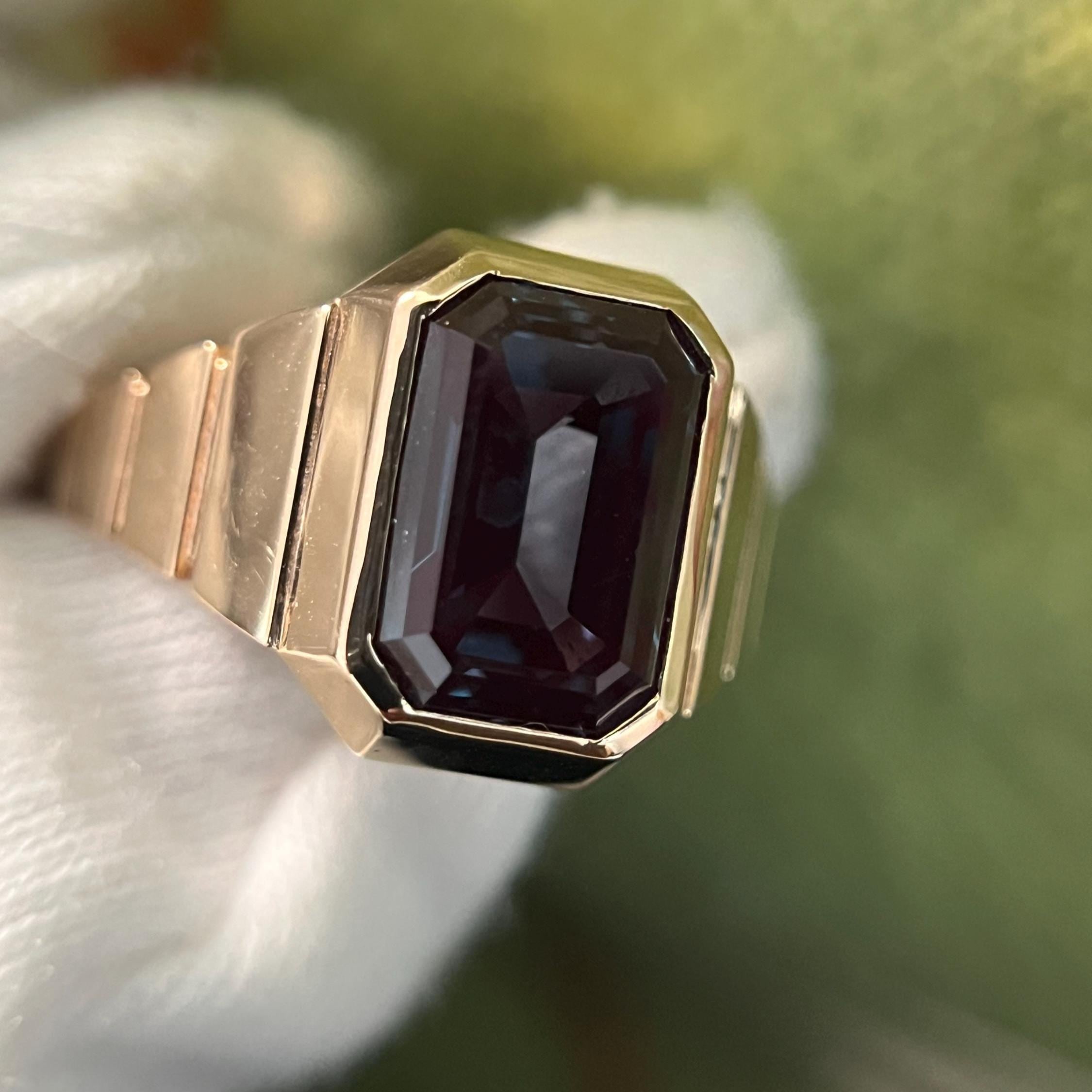 This stunning handmade ring features a 4-carat lab-grown alexandrite with a mesmerizing emerald (octagon) cut, set in luxurious 14K solid rose gold. Known for its remarkable color-changing ability, this alexandrite shifts from a deep bluish-green in daylight to a vivid reddish-purple under warm light — a true statement of elegance and mystery.