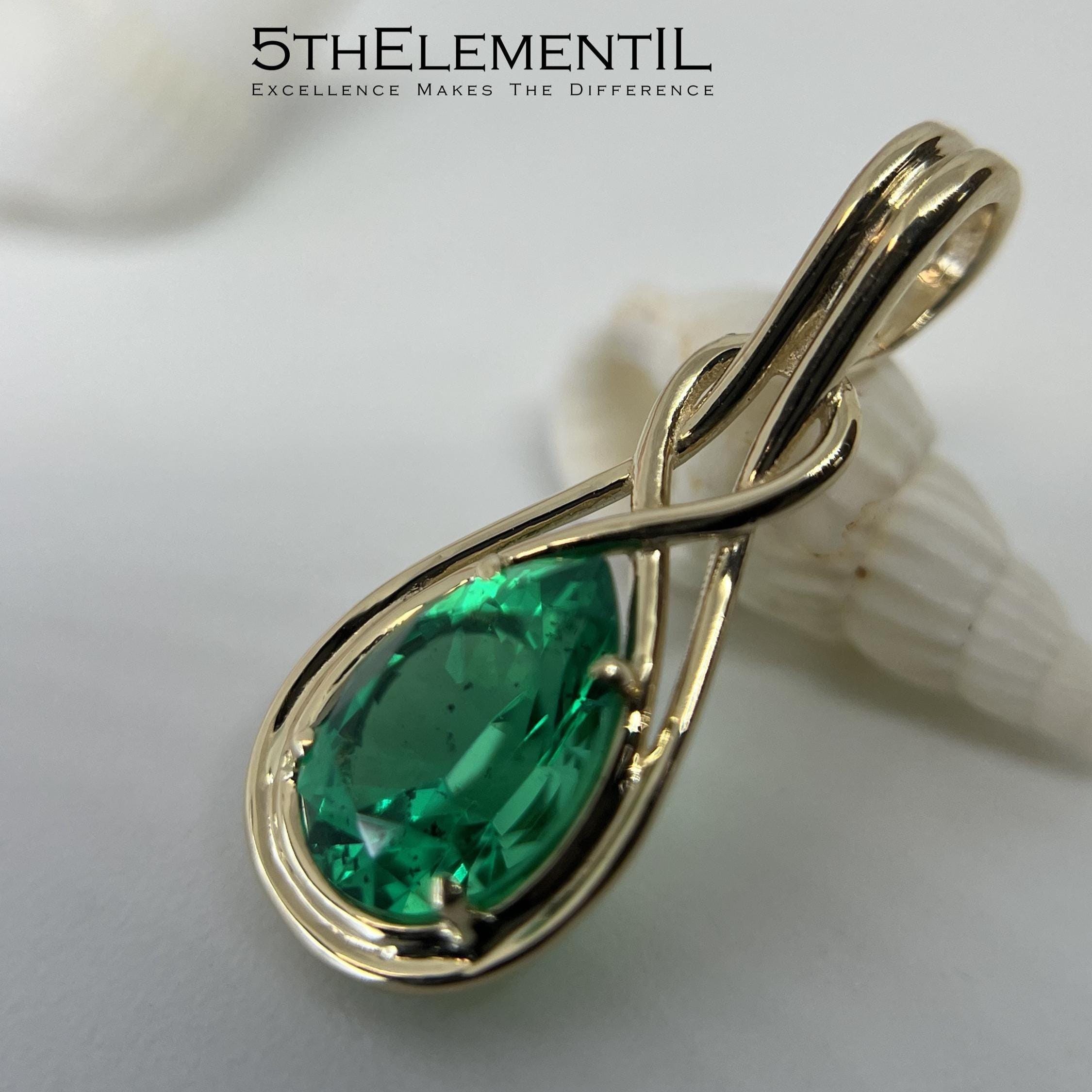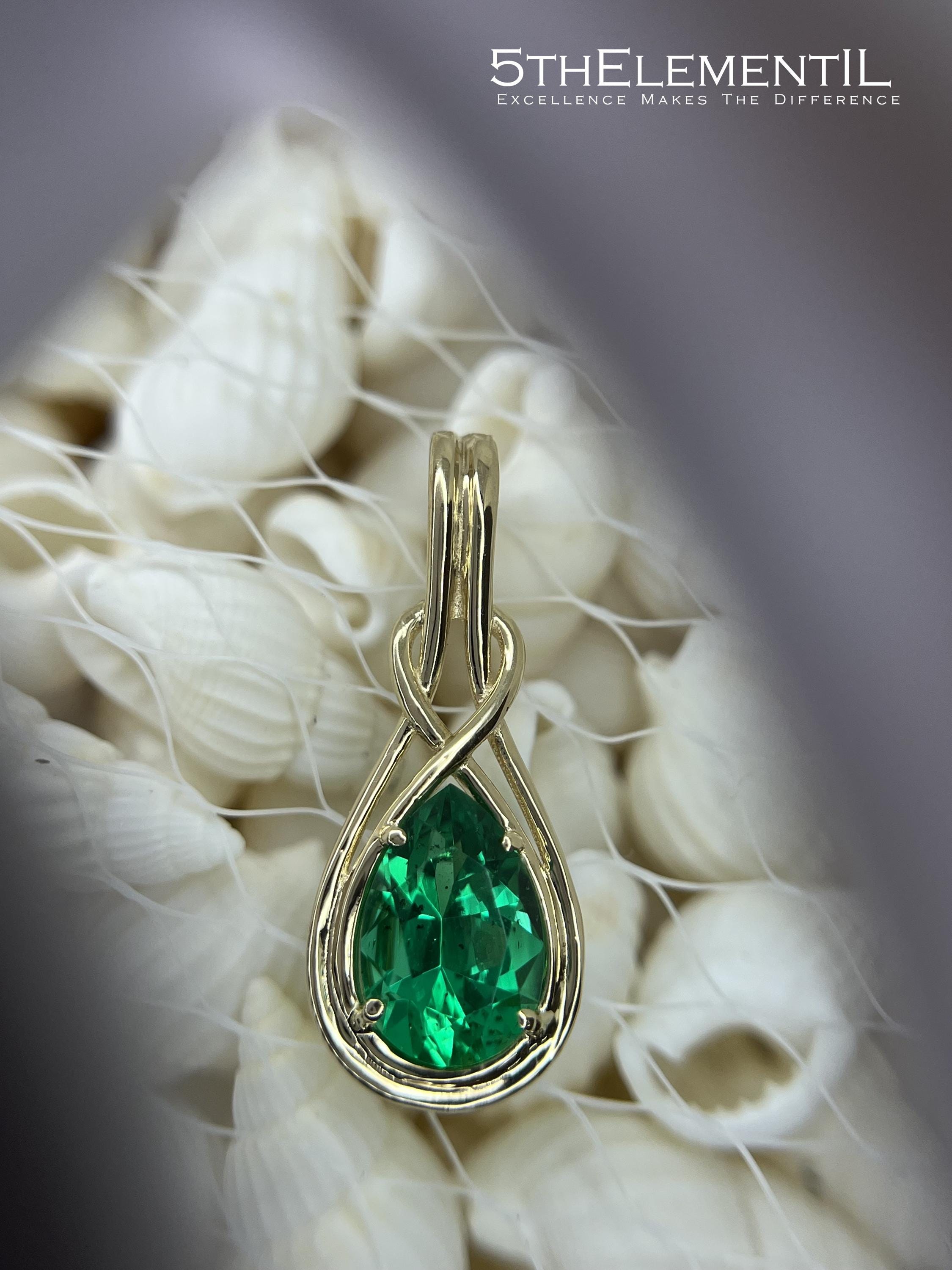 Top Quality Lab Grown Hydrothermal Colombian Bluish-Green Emerald Pear Shaped in Unique Weaving Pendant.
