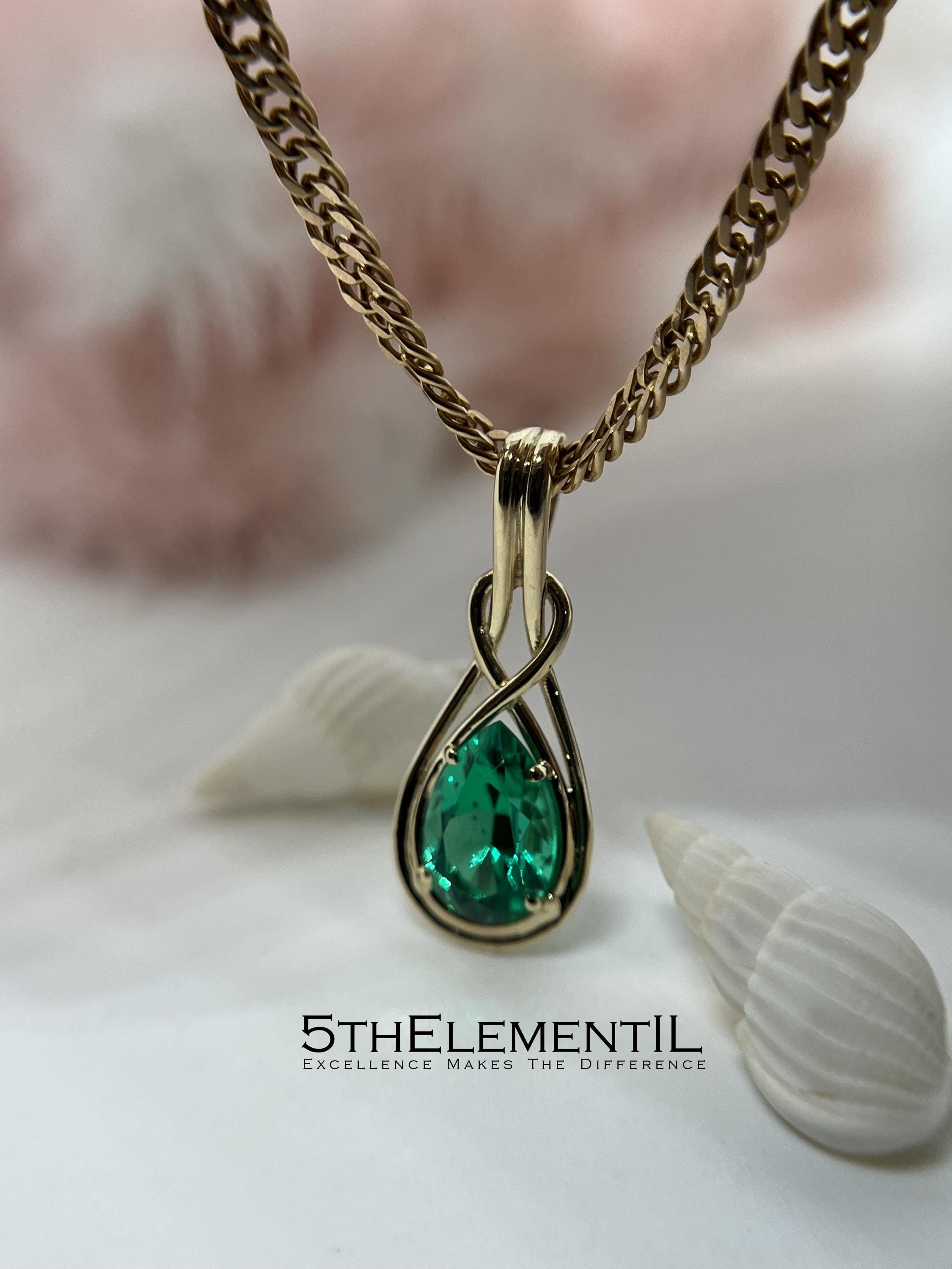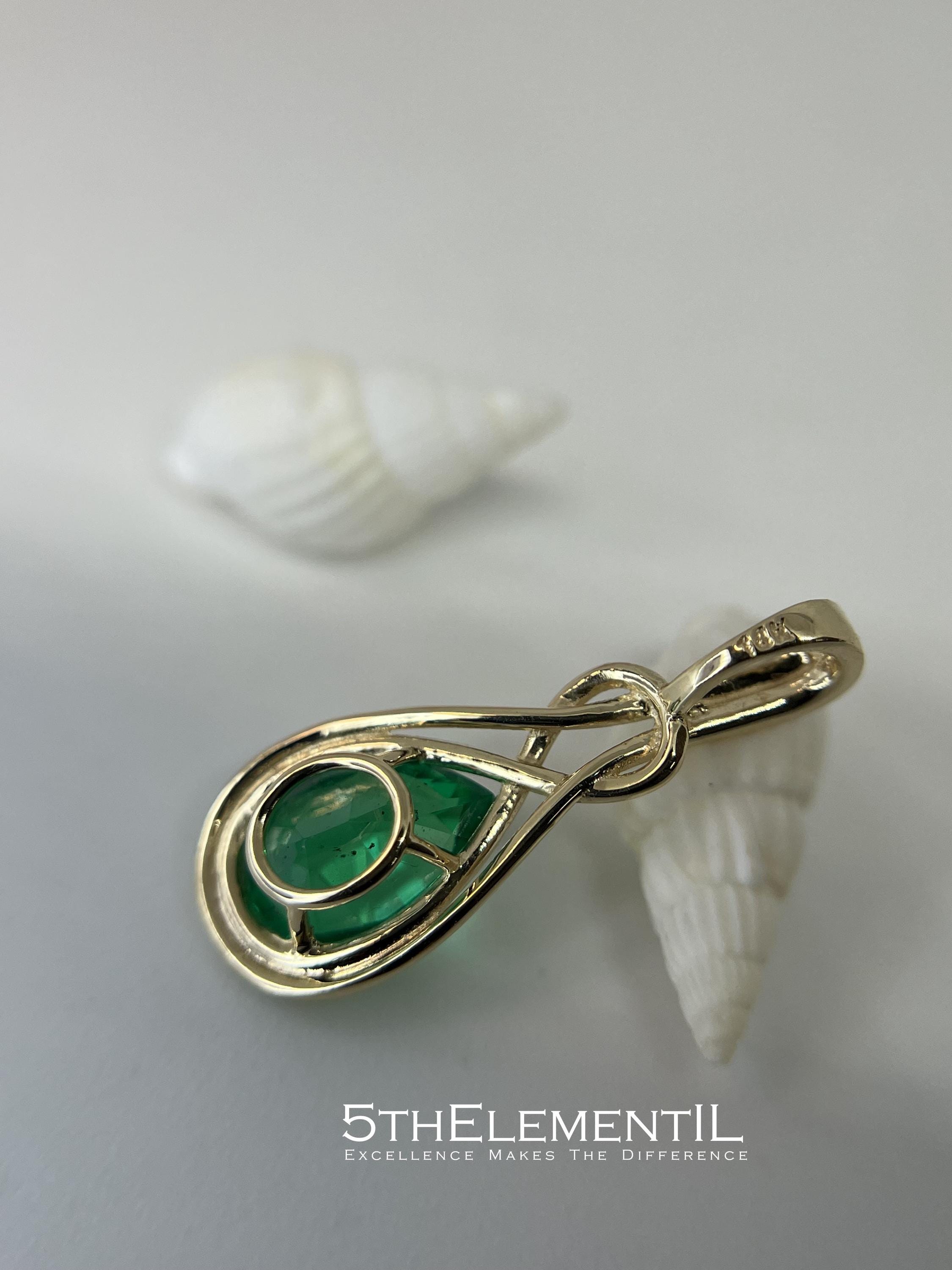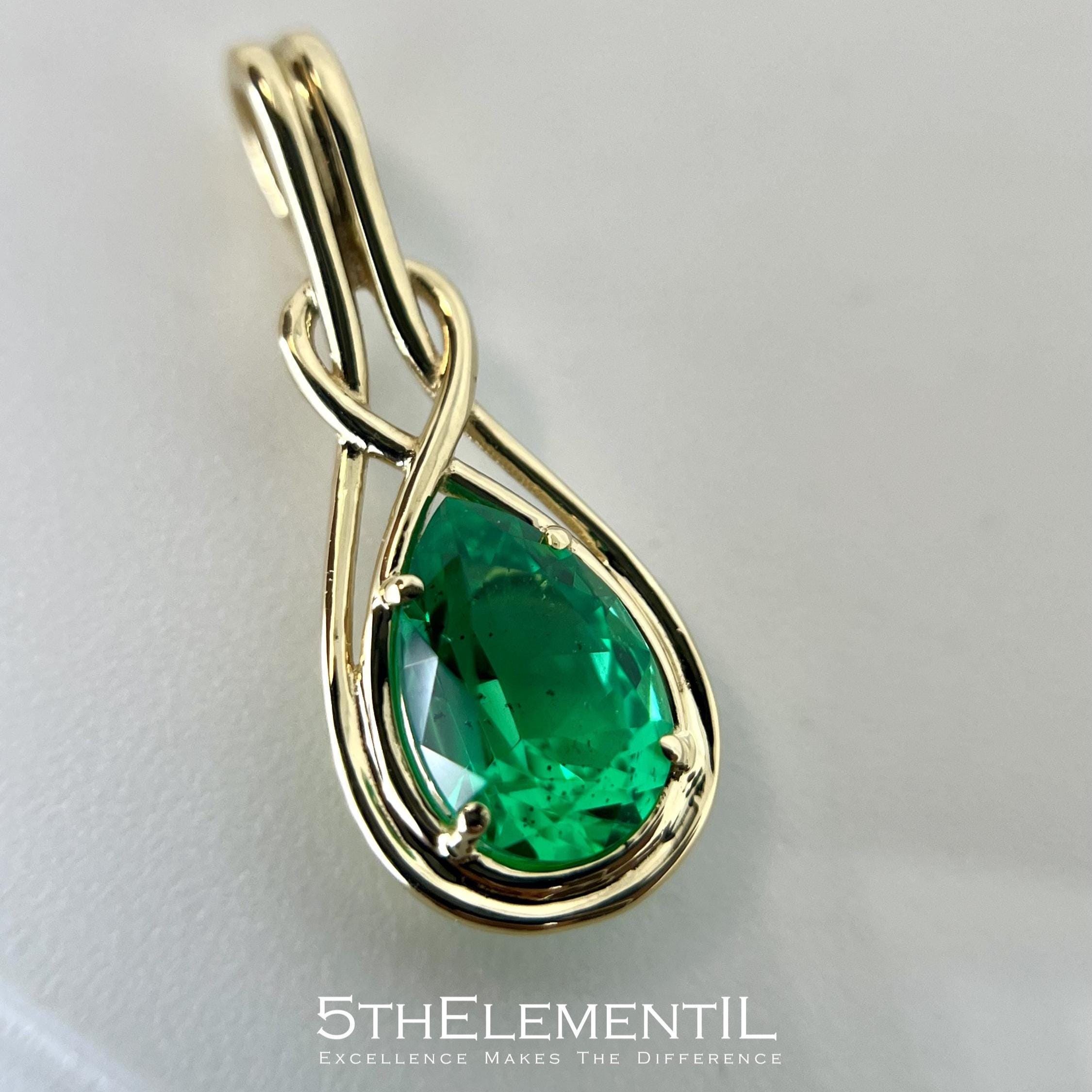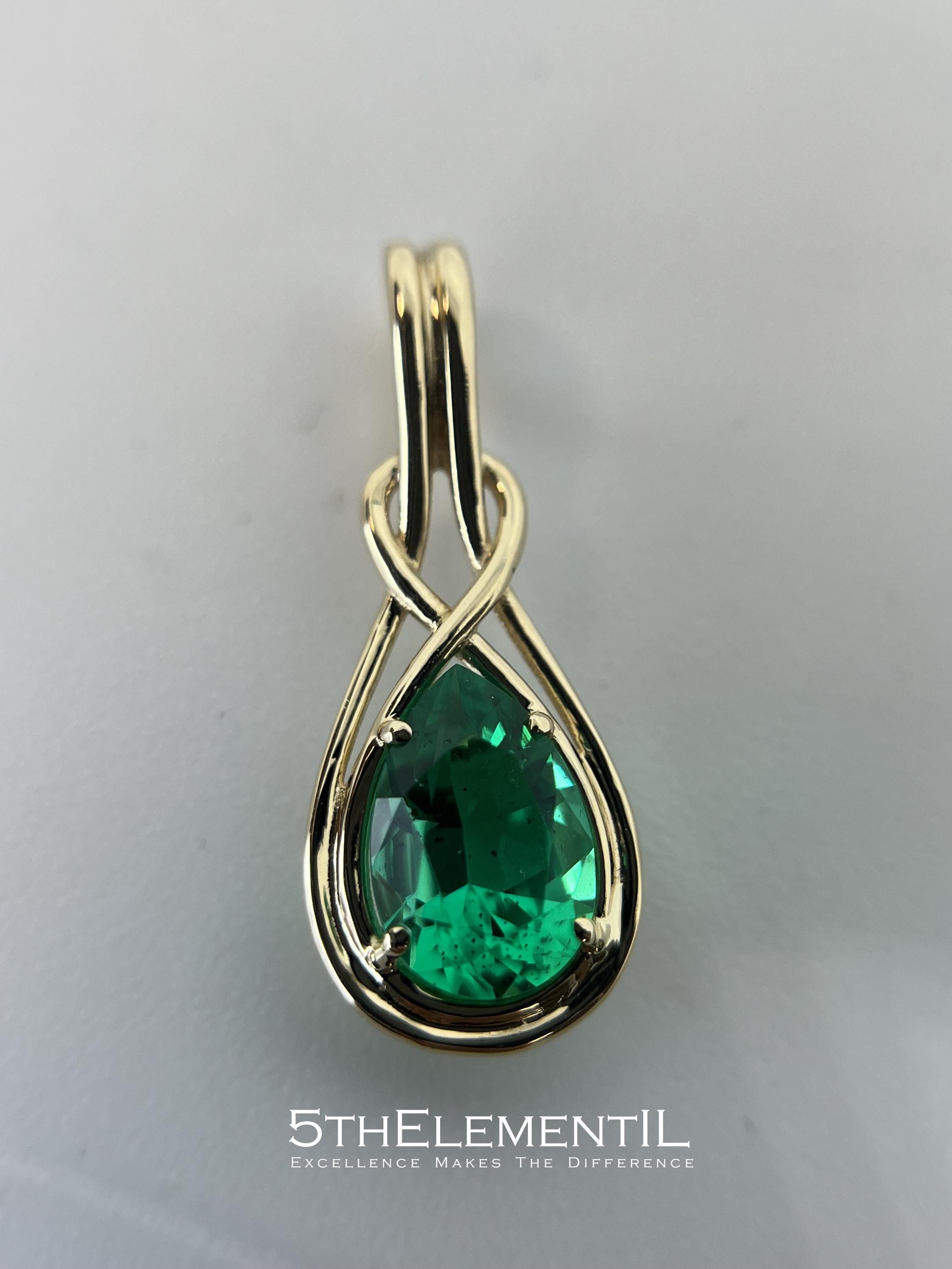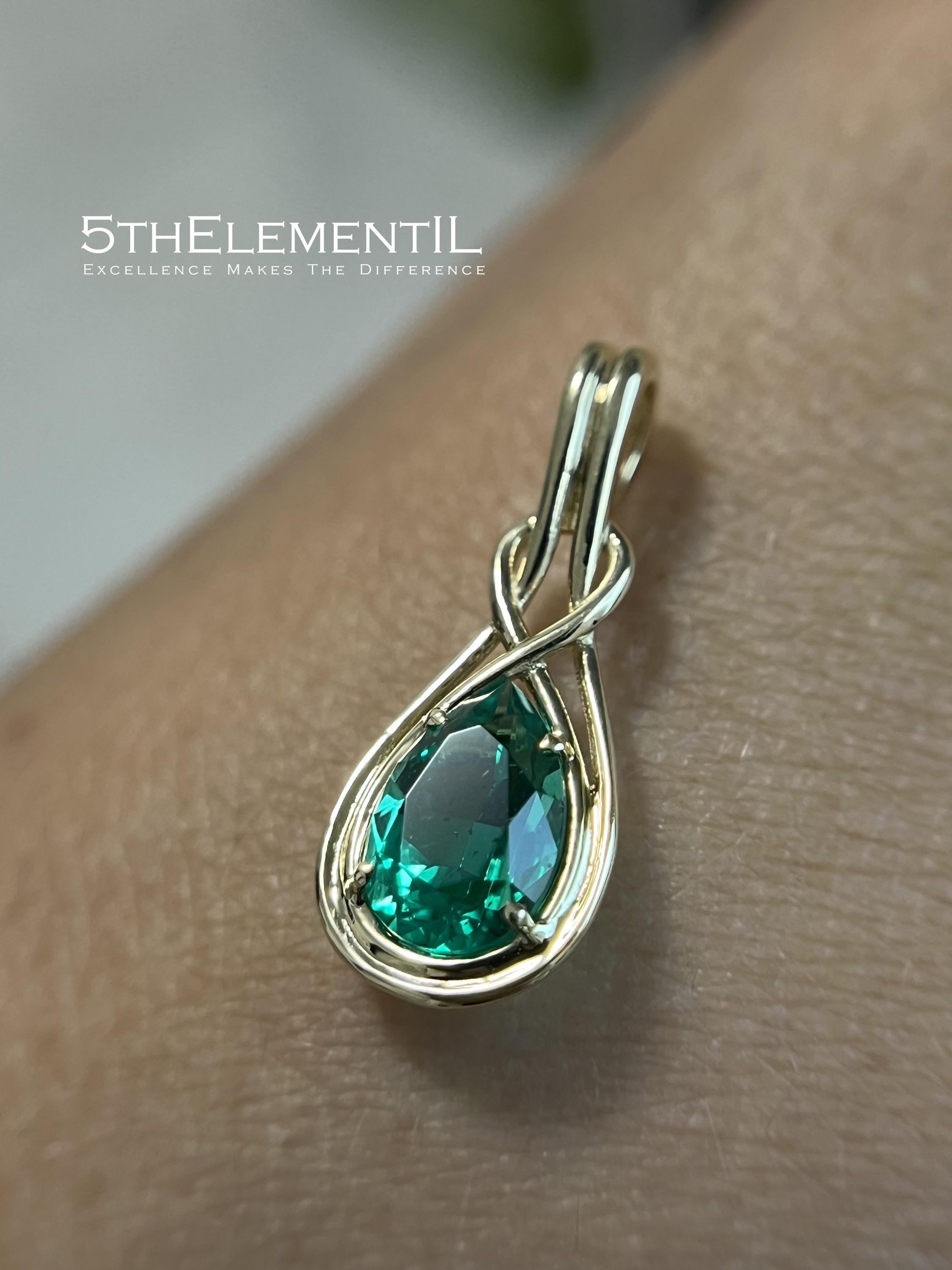Lab Colombian Emerald 14K Gold Weaving Pendant For Necklace