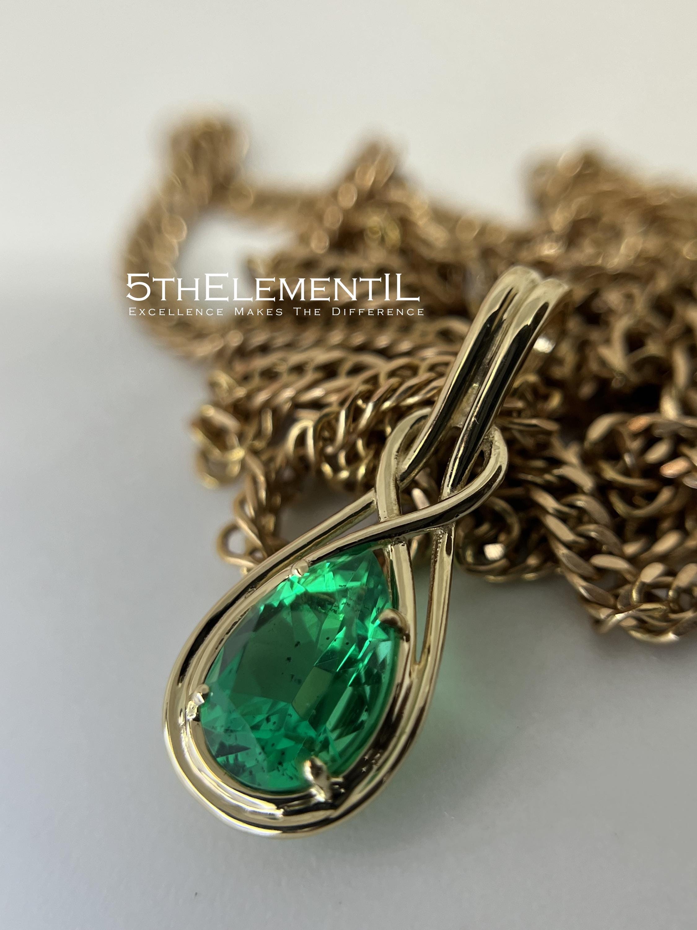In the simple words - this is top quality lab grown emeralds, considered by many as the best quality hydrothermal emeralds in the world, fully equal to natural but cost only 1% of the natural emerald gemstone. In fact those are natural gems which received second chance to reborn in the lab in presence of all nessesary elements they need to become this level of color, hue, structure of inclusions and overall quality. Our professional jewelry masters team created for you this pendants in unique design with passion and professionalism.