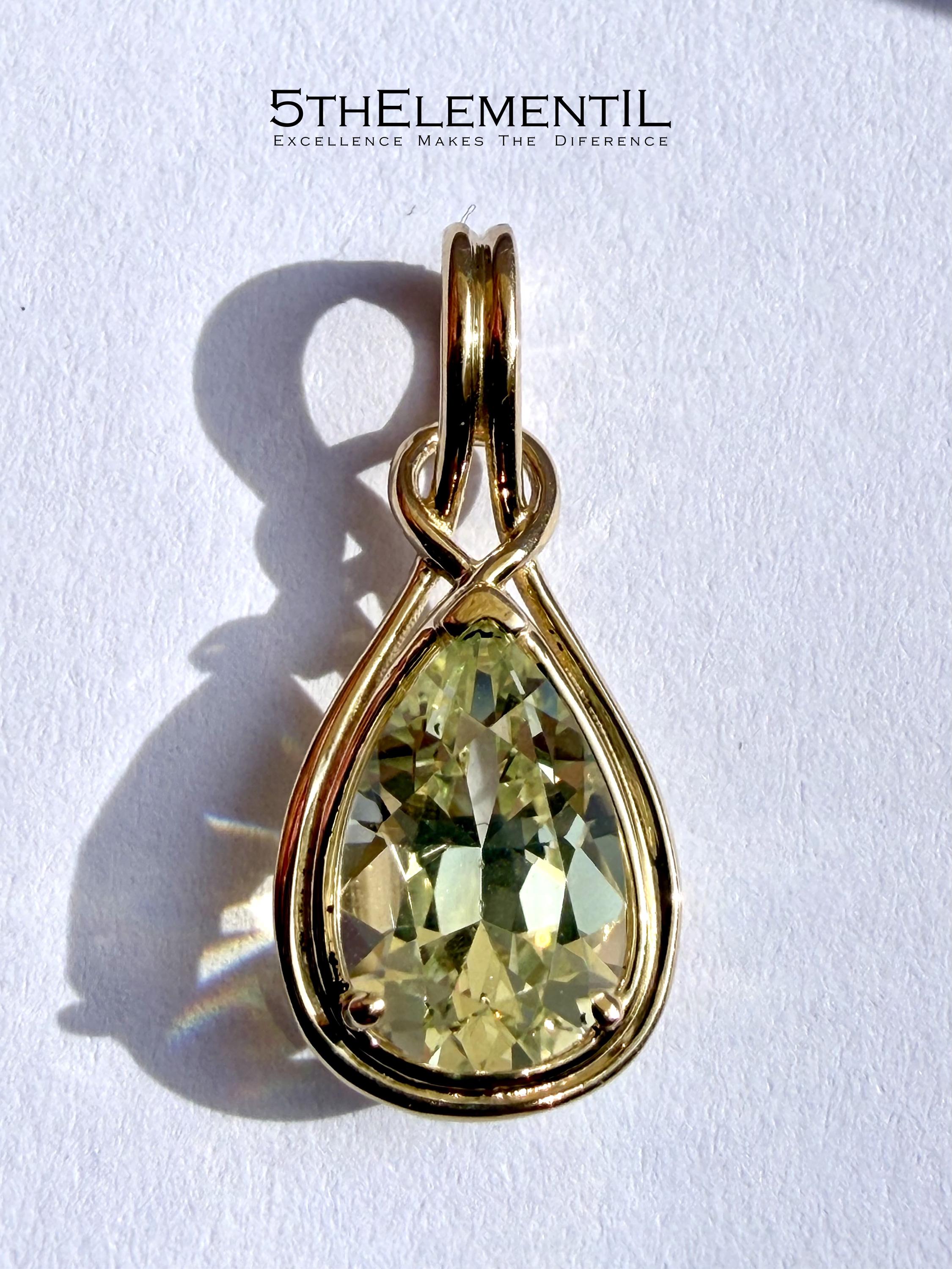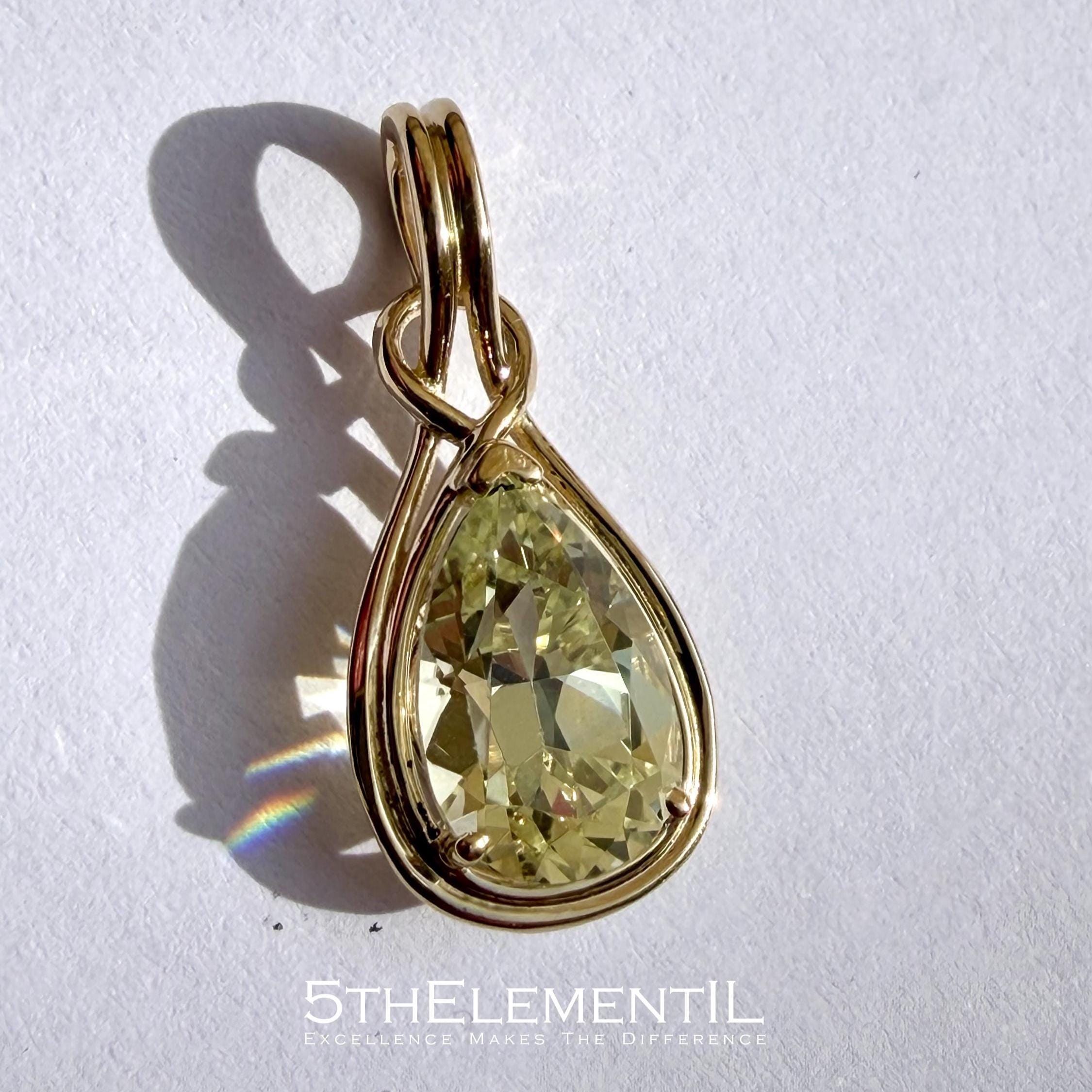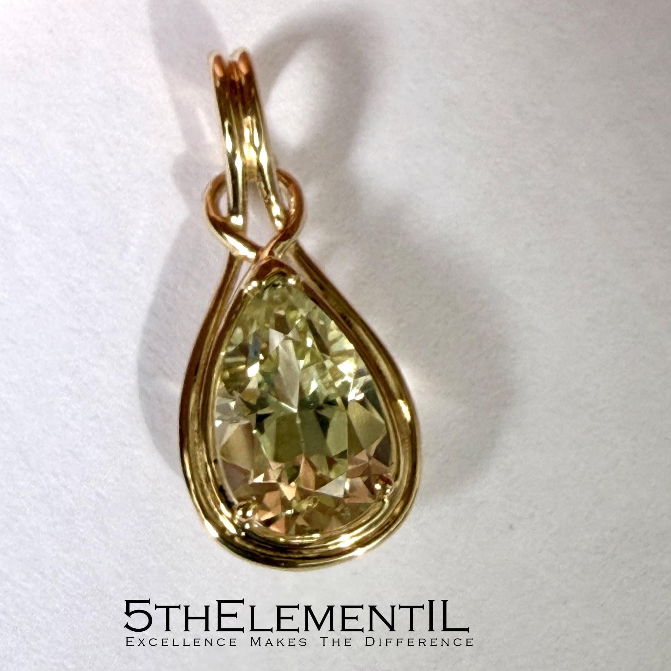 Top quality lab grown yellow sapphire in 14k solid gold minimalist pendant for necklace.