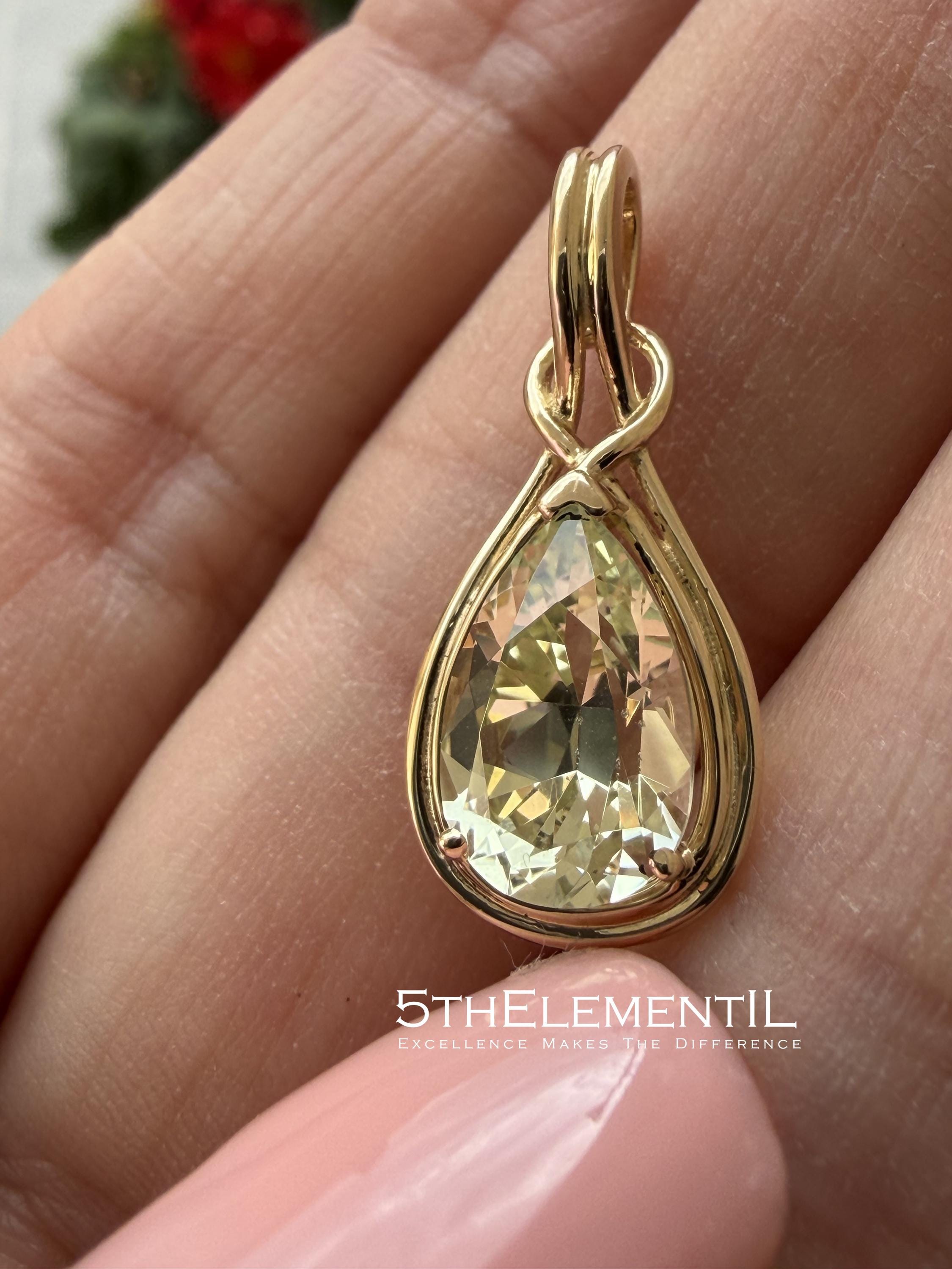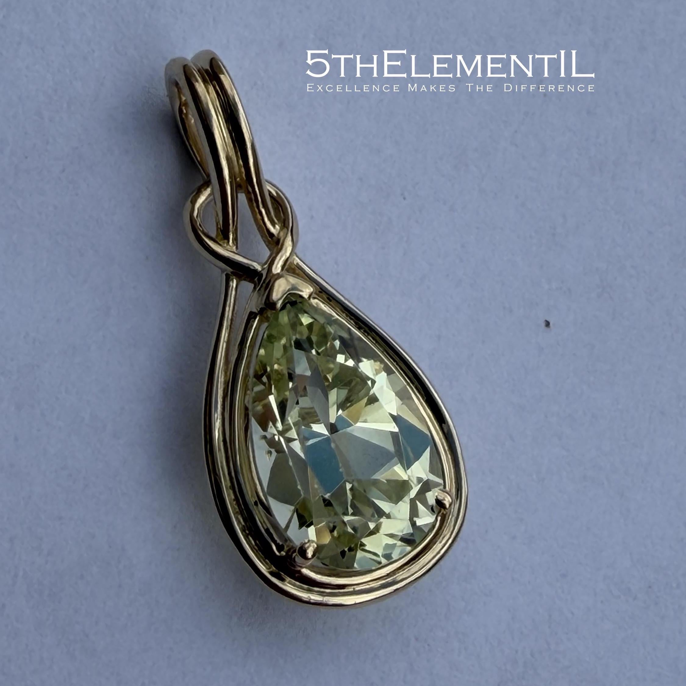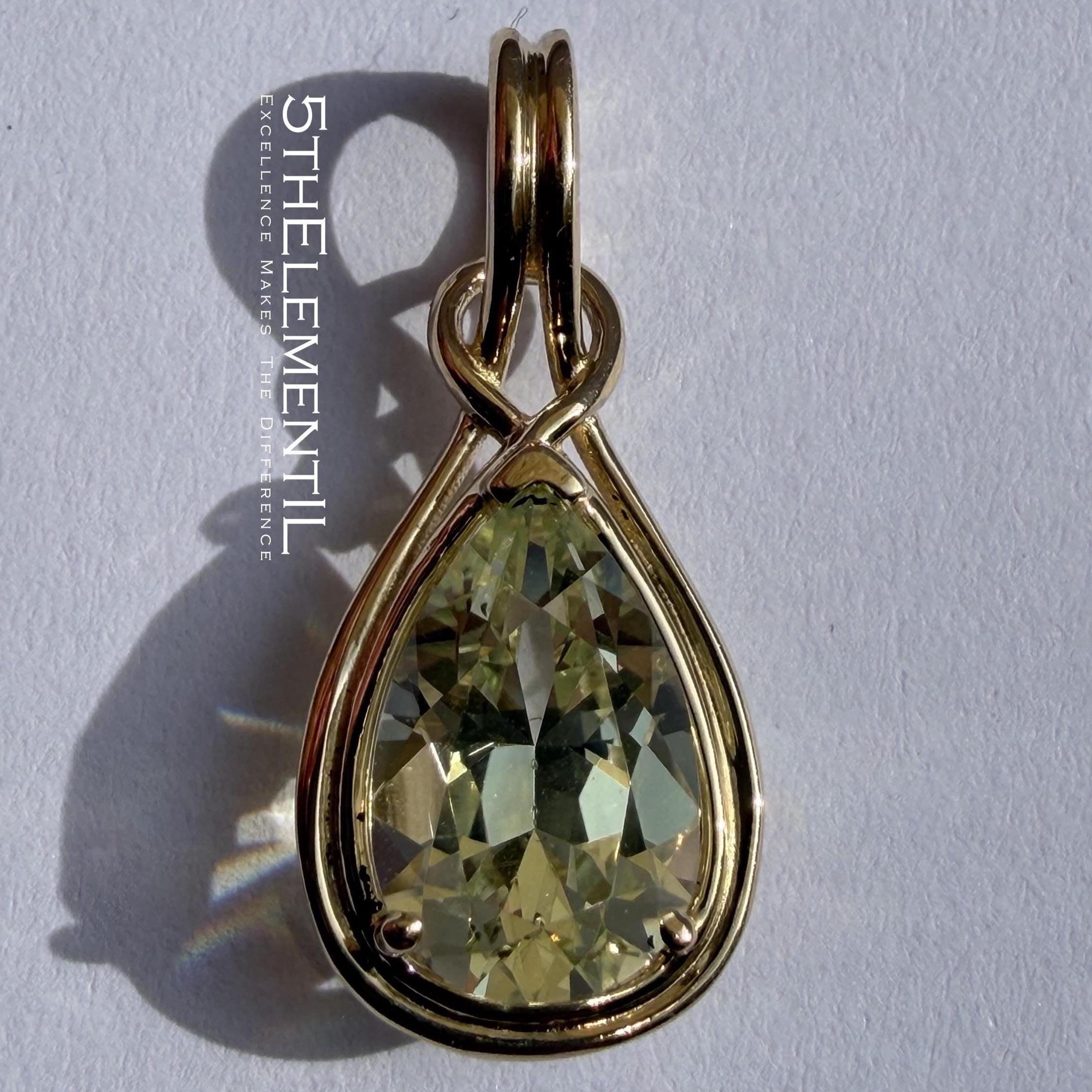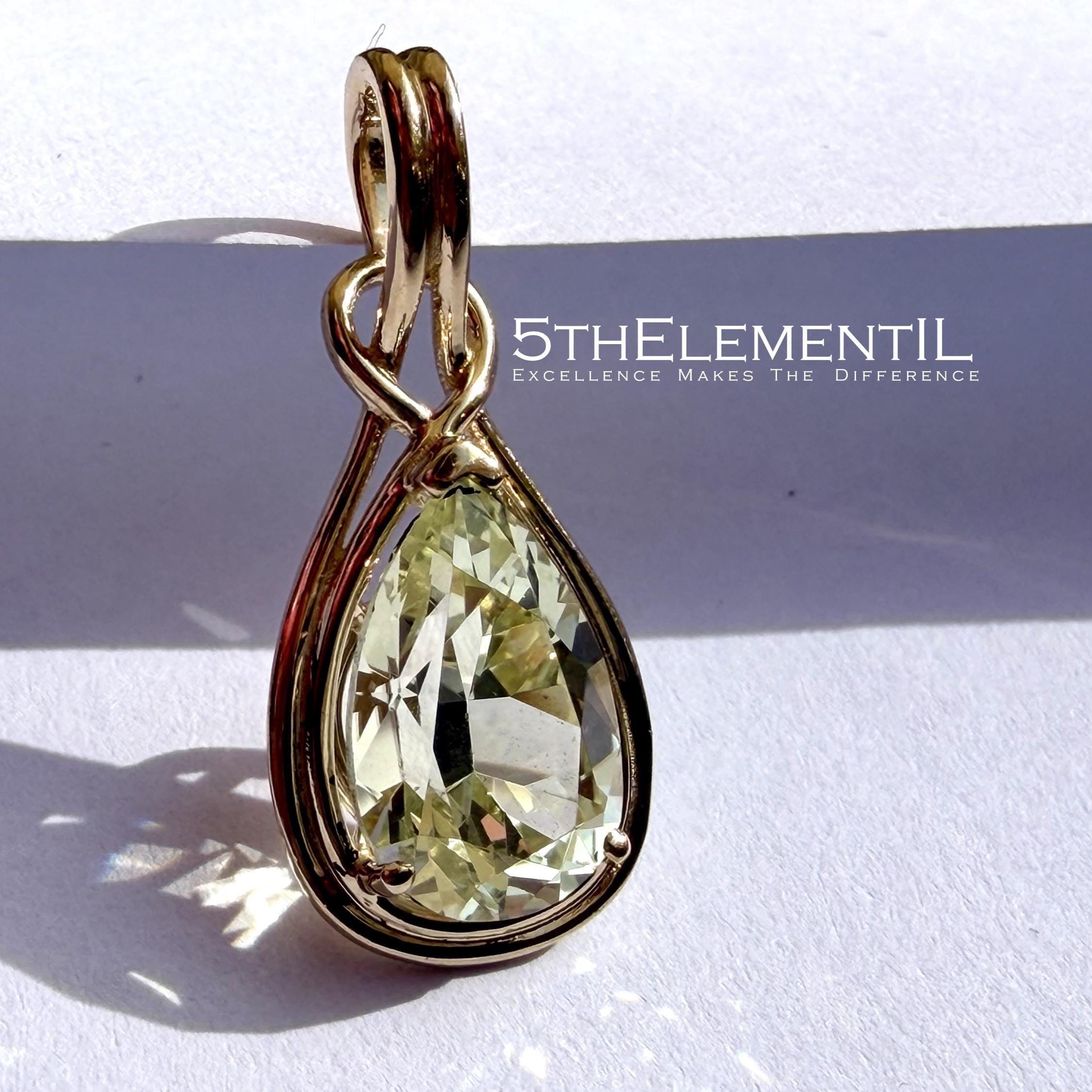 Top quality lab grown yellow sapphire in 14k solid gold minimalist pendant for necklace.