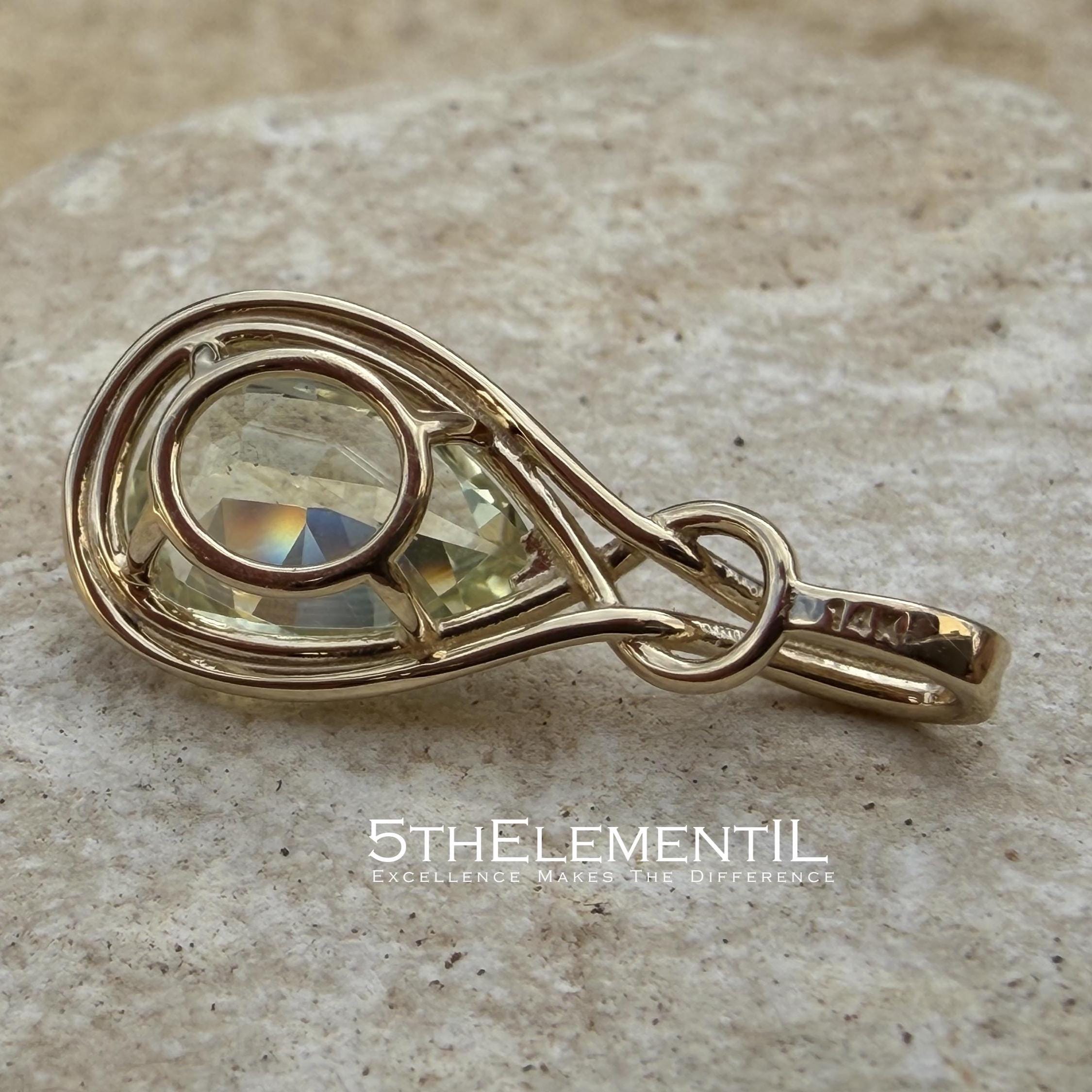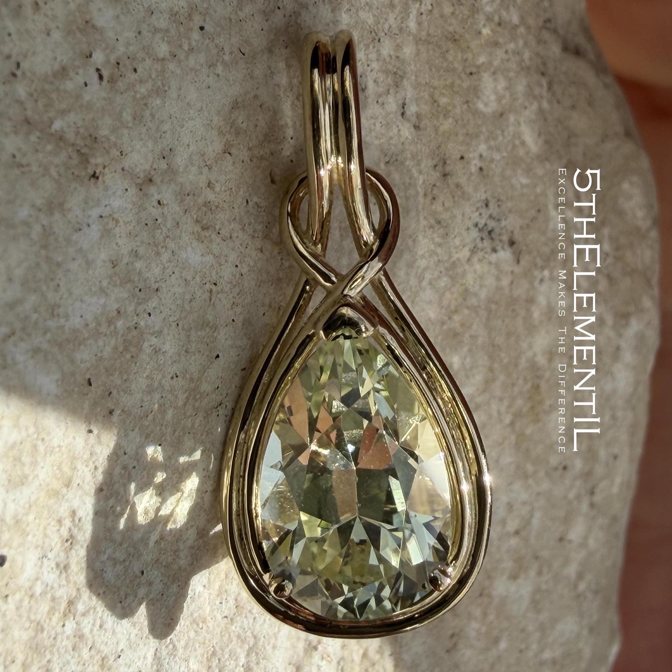 Yellow Sapphire Gold Pendant. Minimalist Jewelry, Unique Design.
