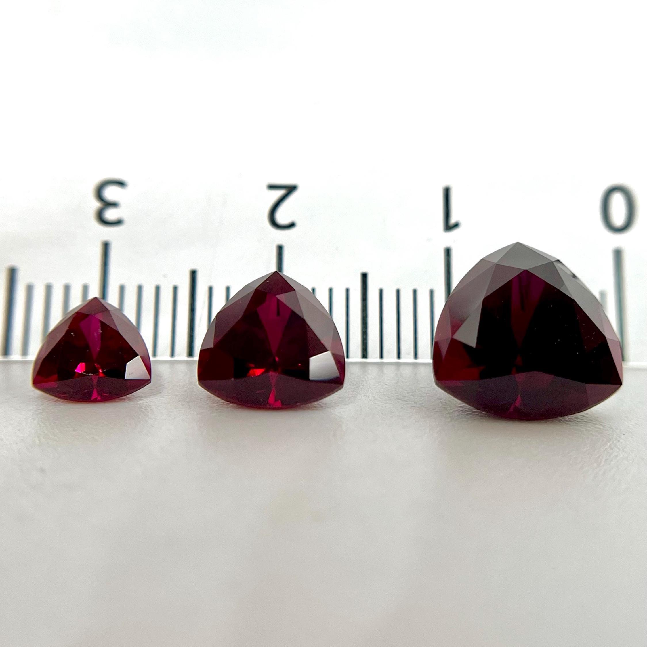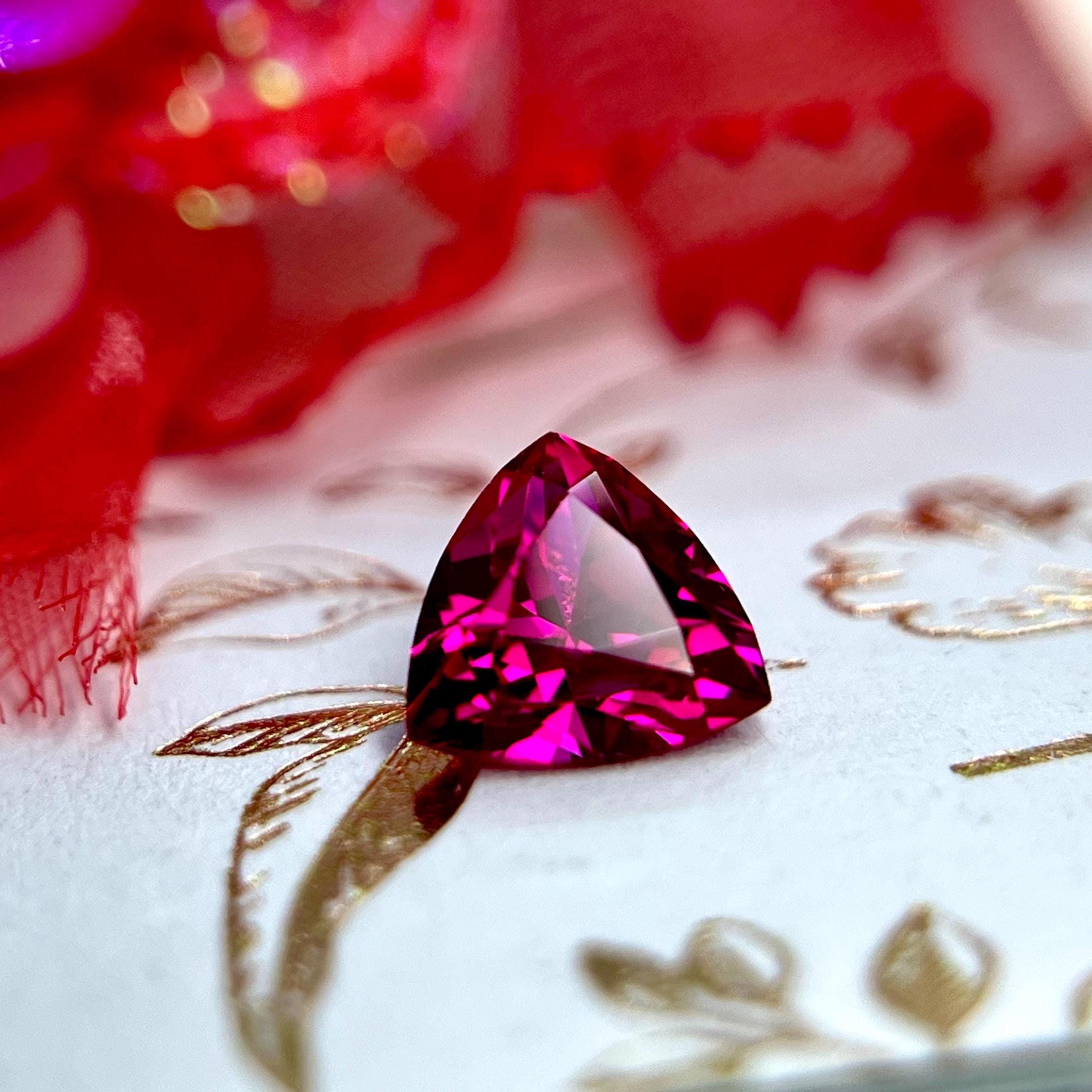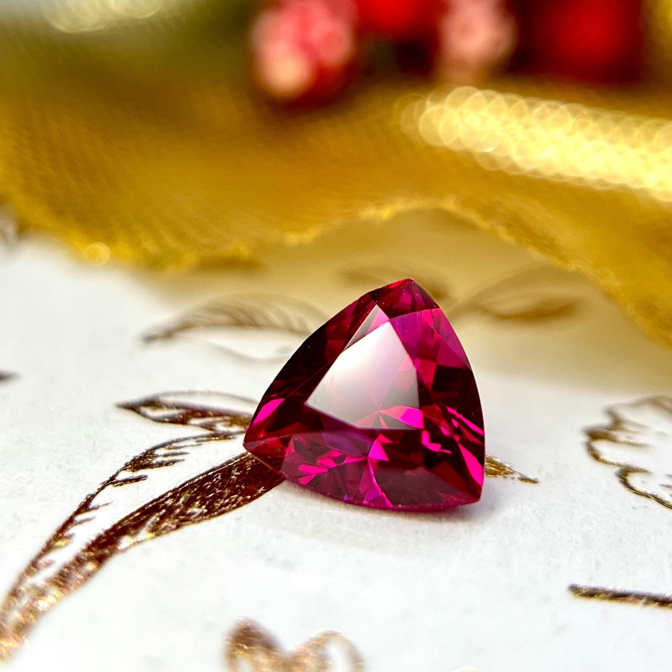 It's a beautiful color, isn't it? :) Thank you very much for your attention, our dear customer. We are truly proud to offer you the best quality lab ruby on the market. The cut shape in this listing is called trillion. You can make anything out of it, on one side it is a rounded triangle and it looks perfect in a ring, earrings or pendant. On the other hand, place this stone on any tip and you get a heart shape. All you have to do is add a little imagination and jewelry craftsmanship and you will get a jewelry piece of exclusivity which you will be truly proud of.