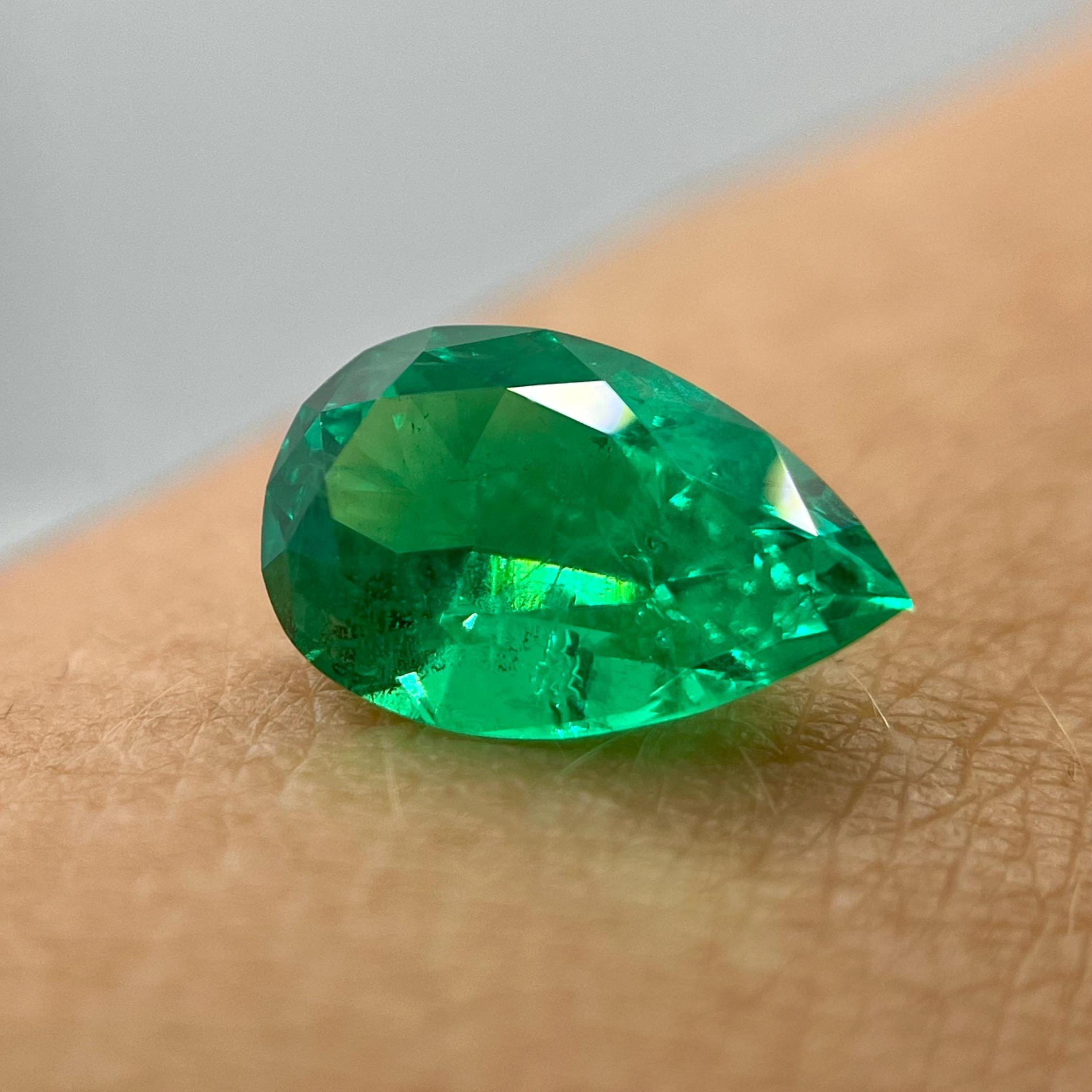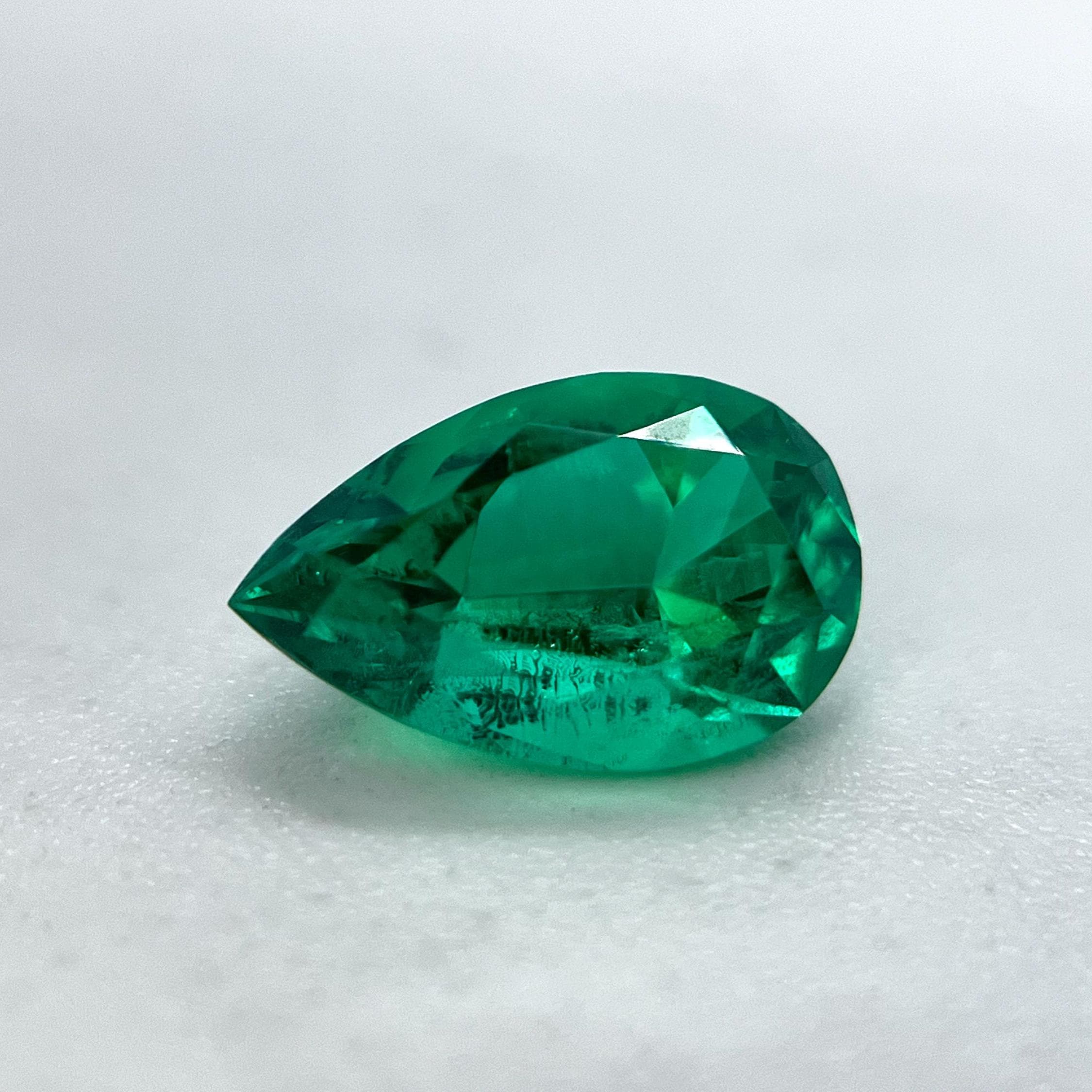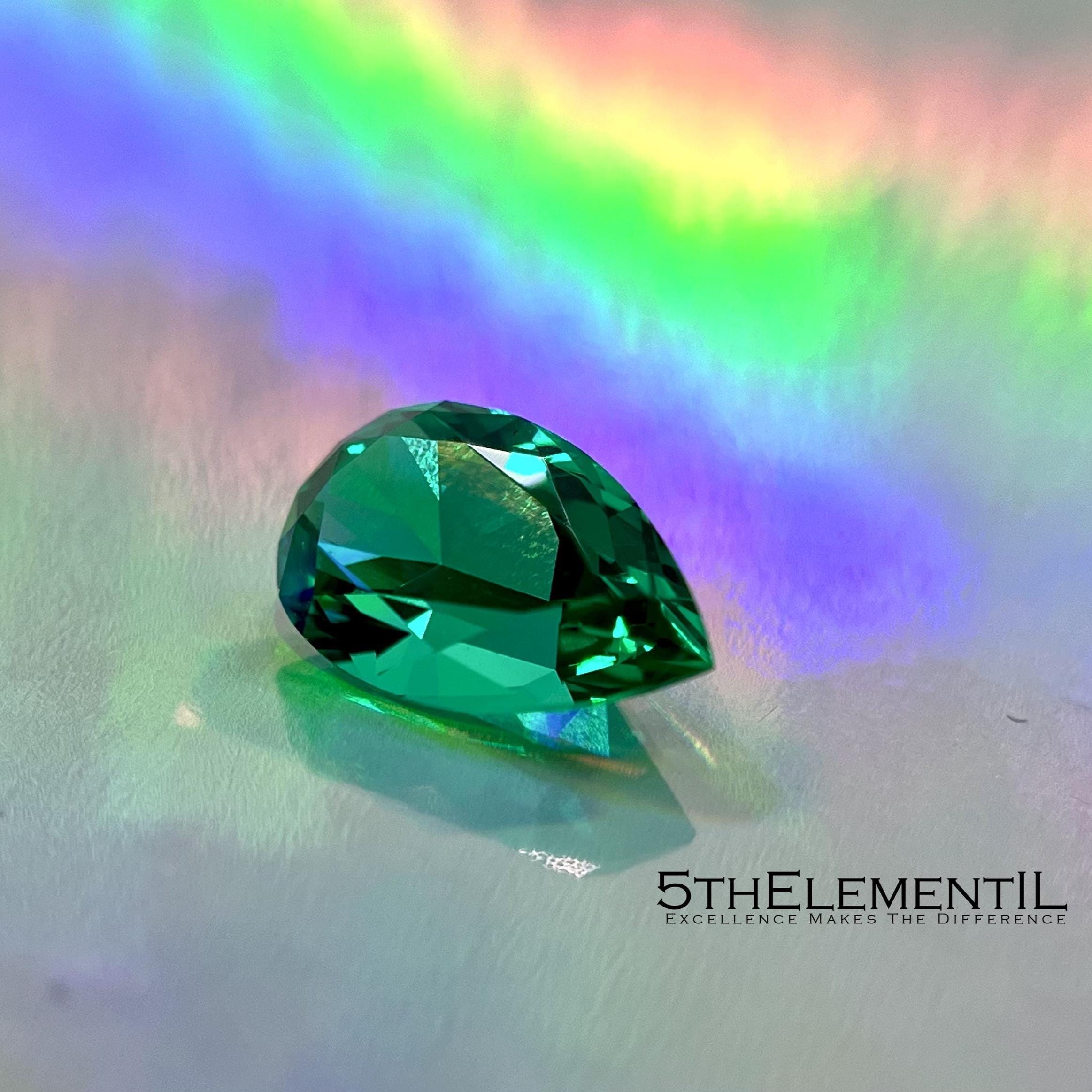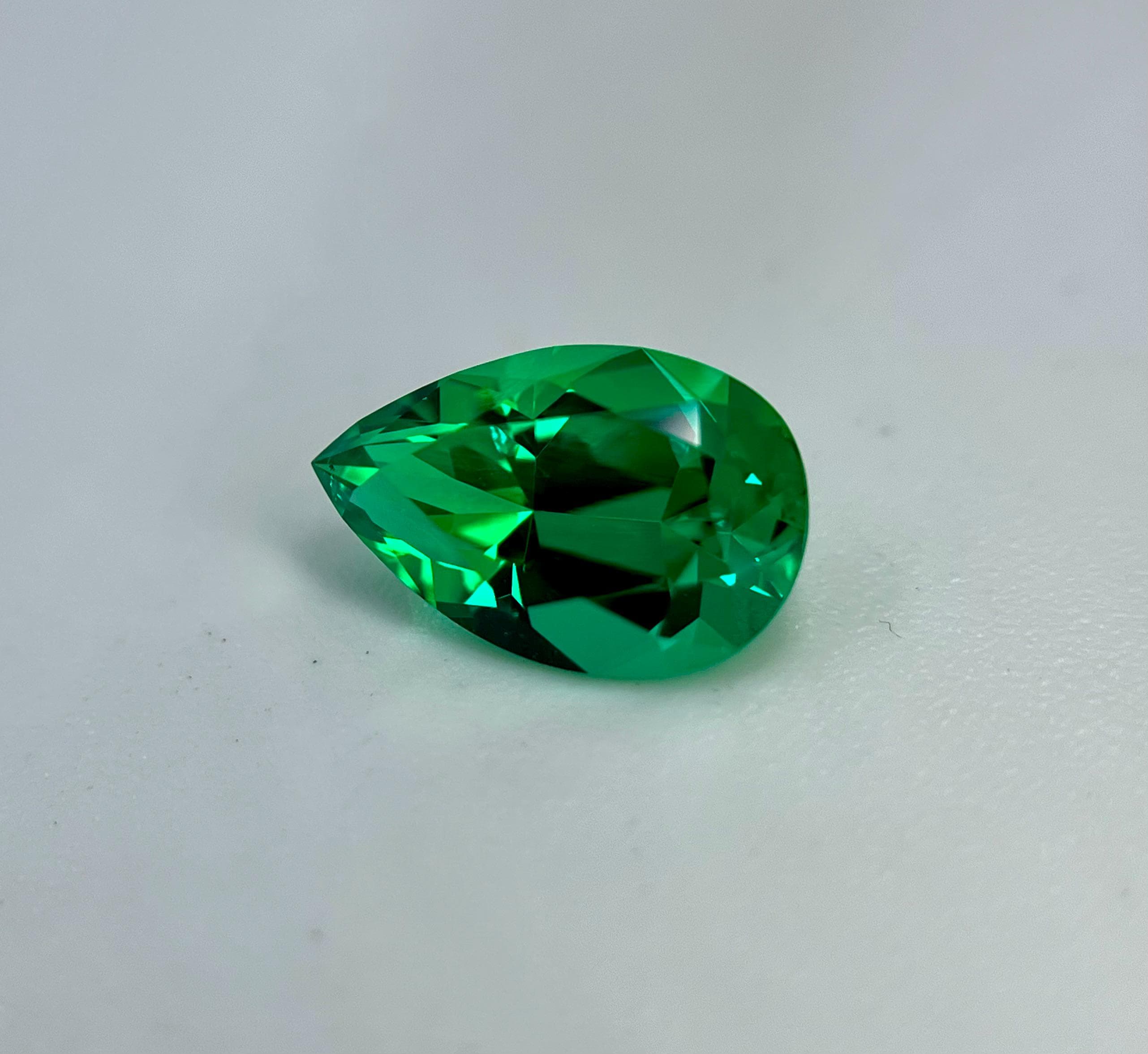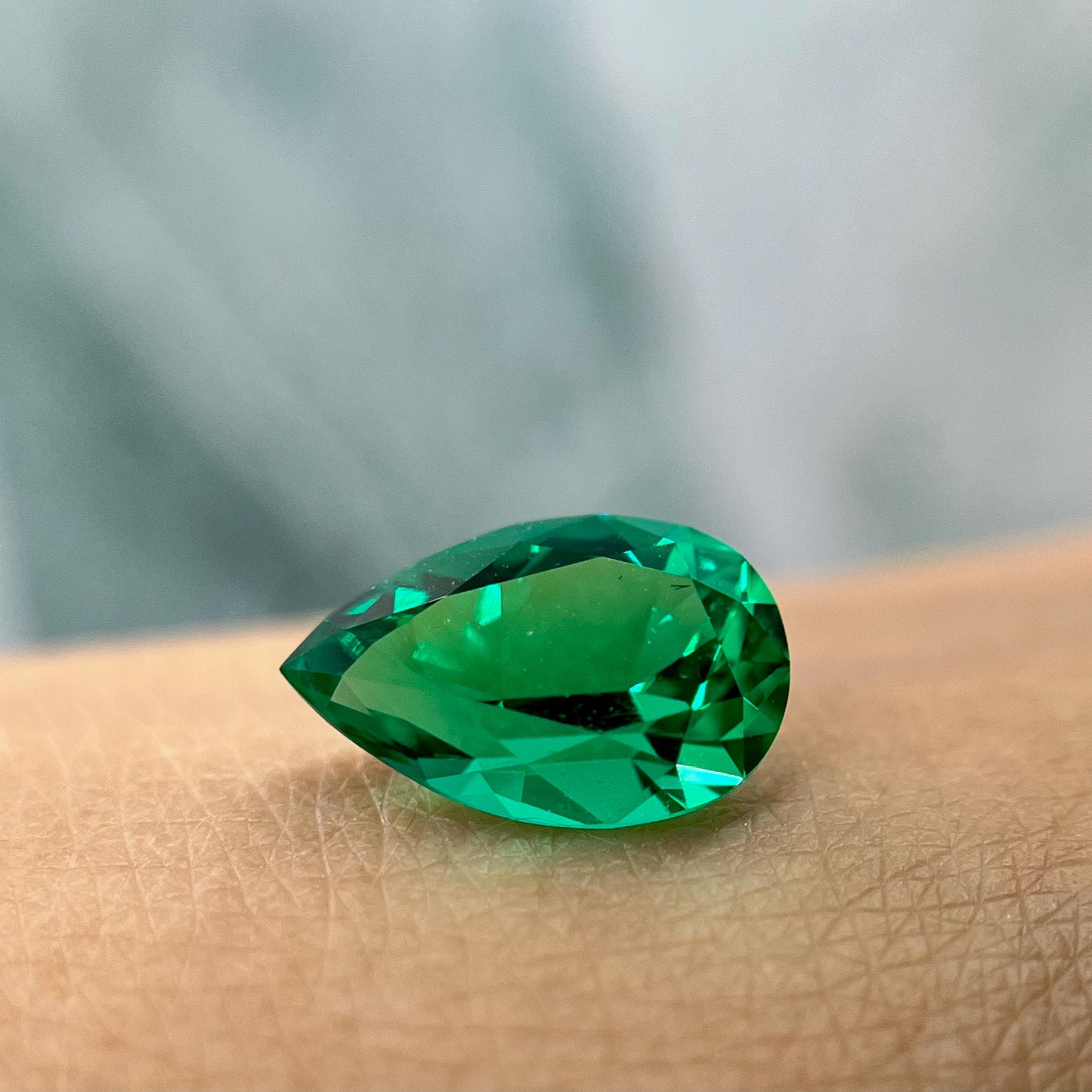 Colombian Emerald Pear Cut. Lab Grown Hydrothermal Emerald For Unique Jewelry.