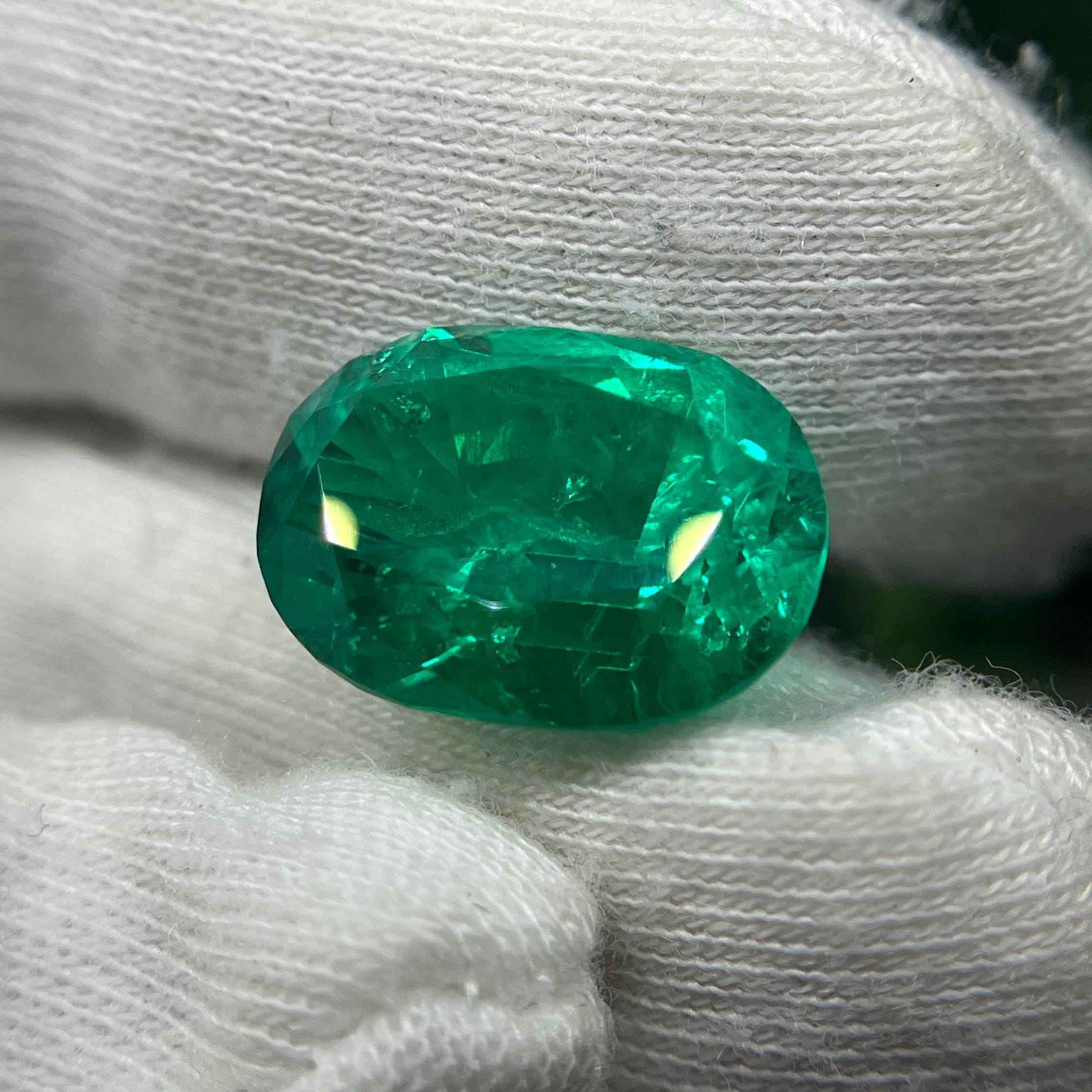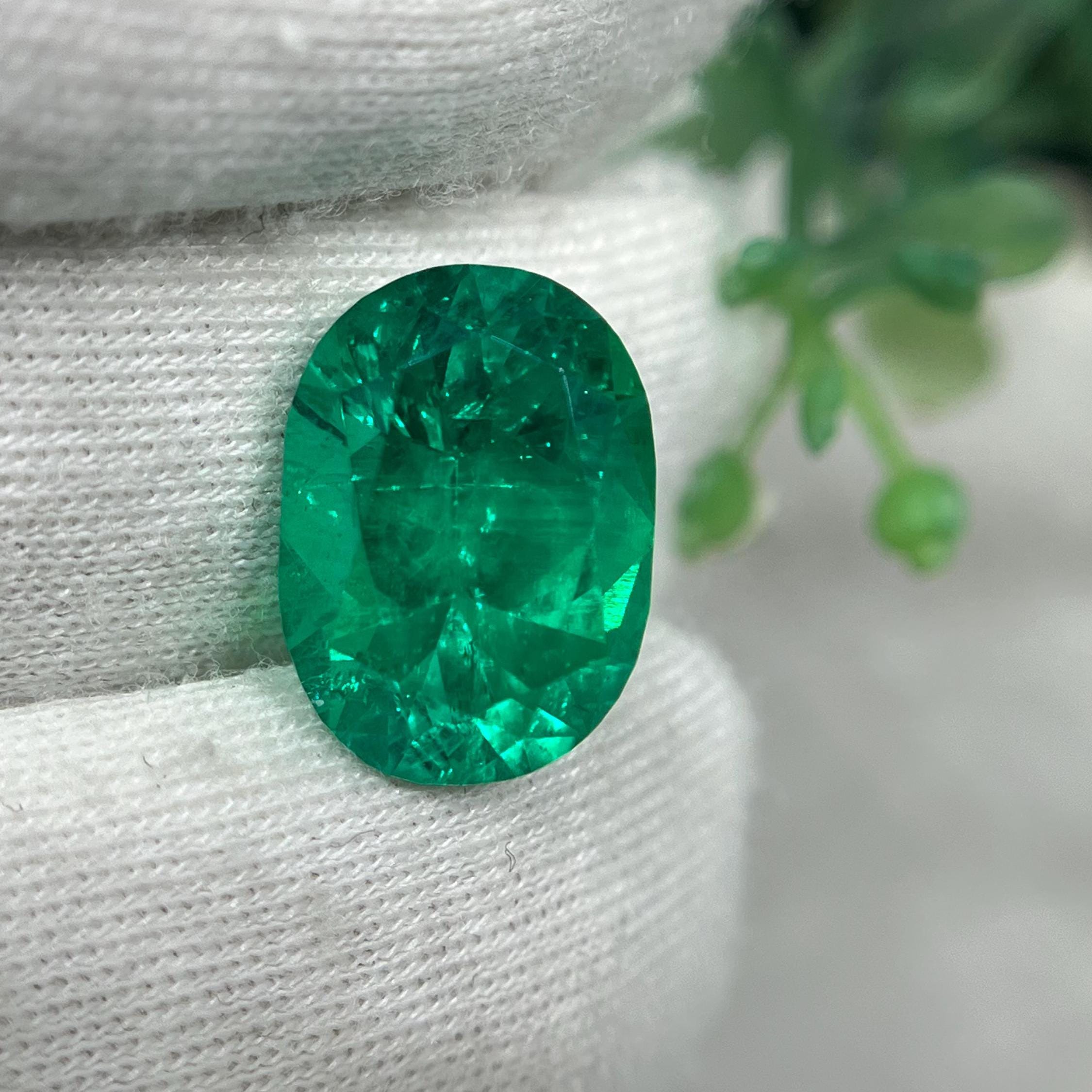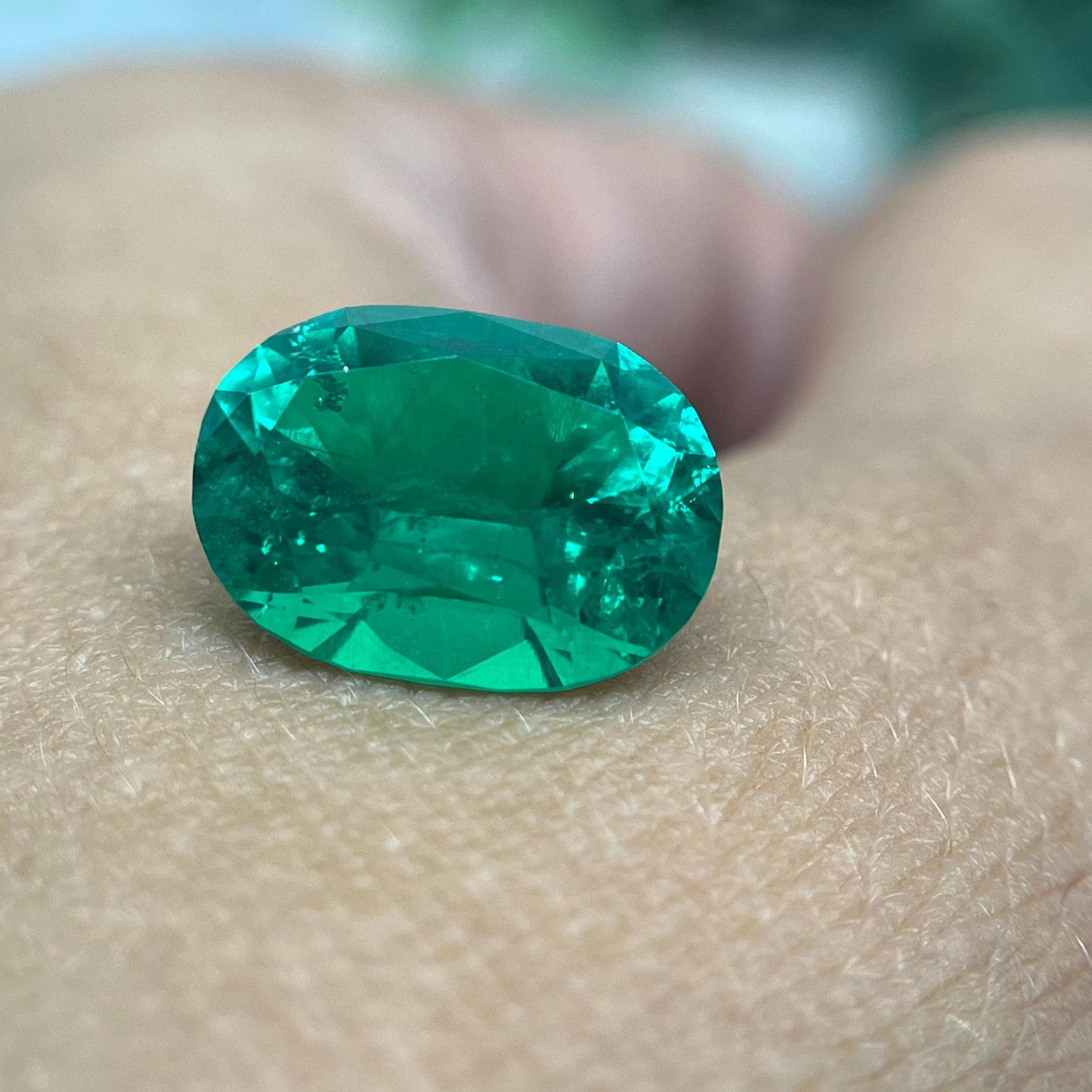 This is outstanding quality lab grown hydrothermal emerald, oval cut, colombian bluish-green color which seems to be glowing from inside.